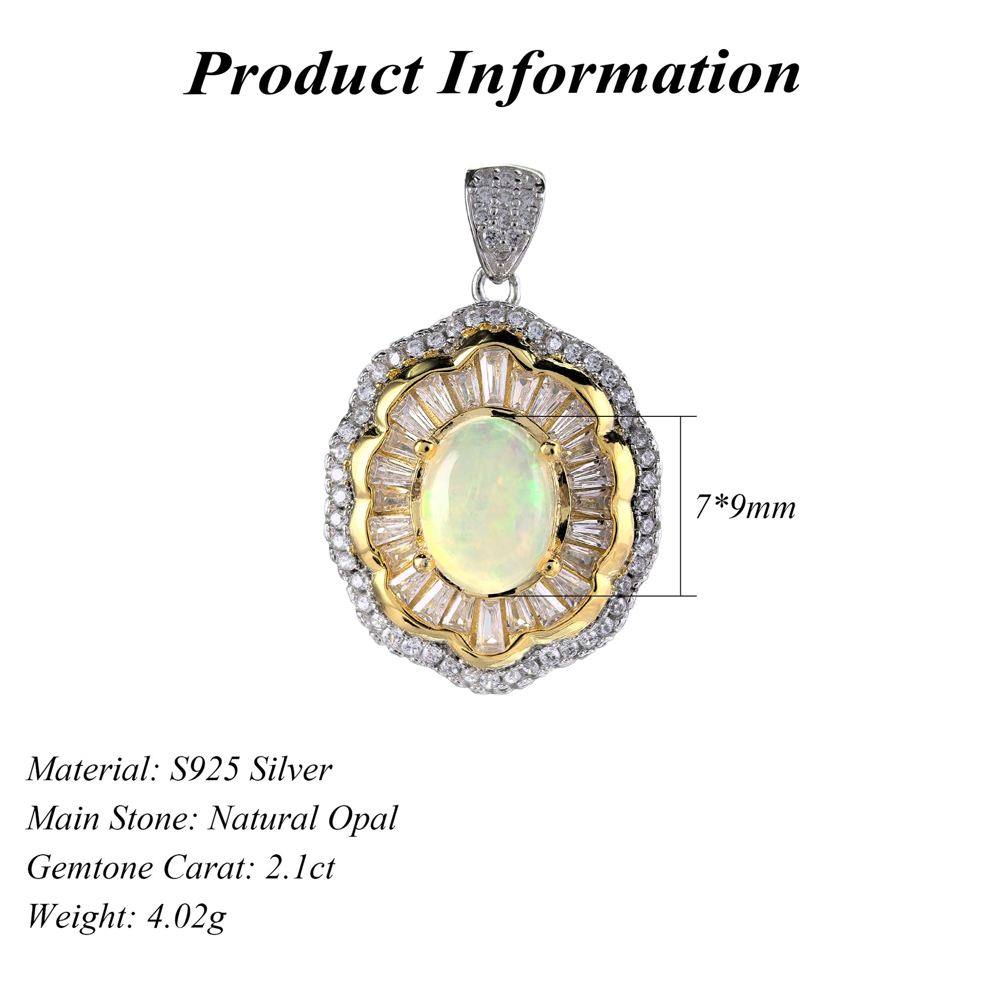 2025 Trendy Regal Dual Color Plated Silver 925 Bijoux Natural Opal Pendant