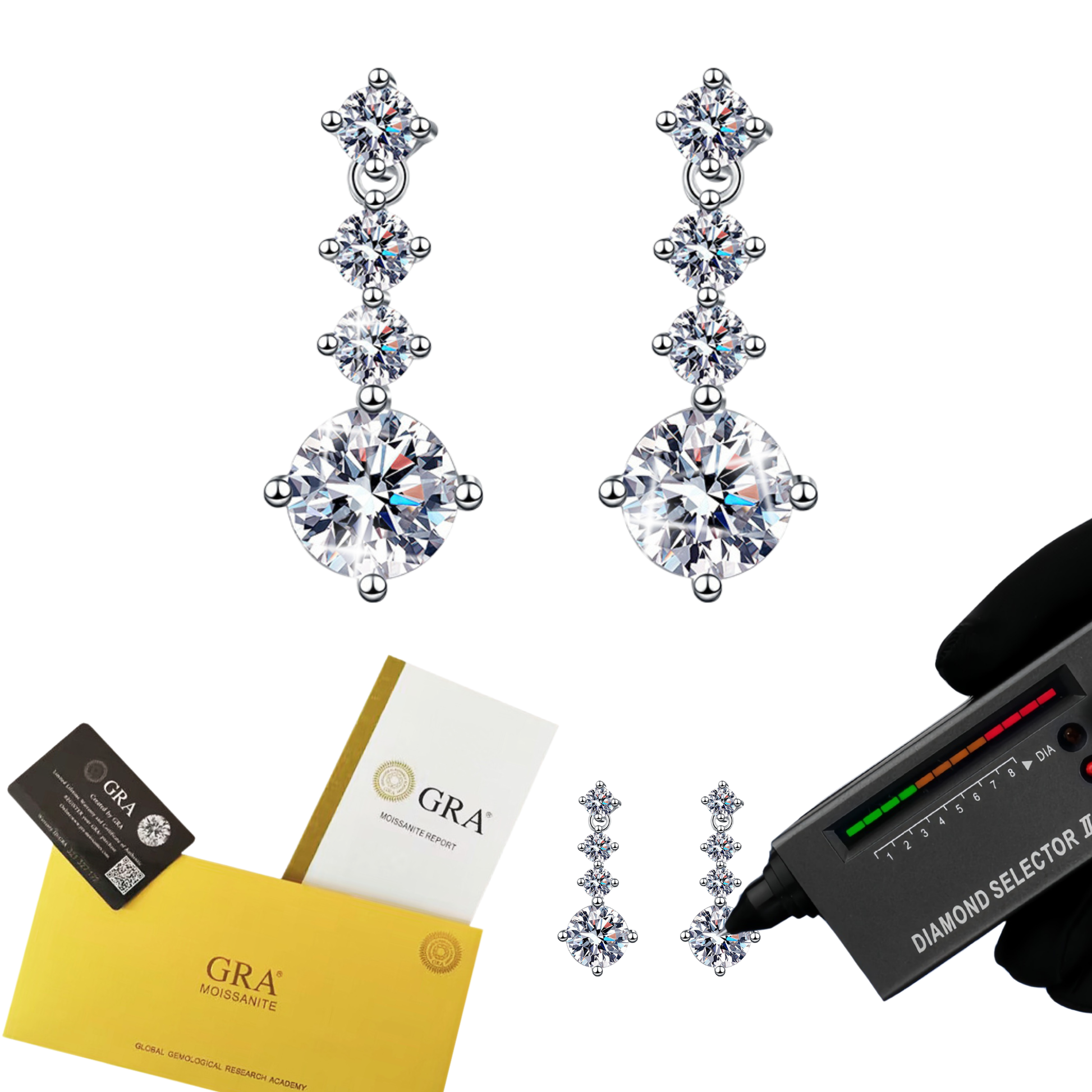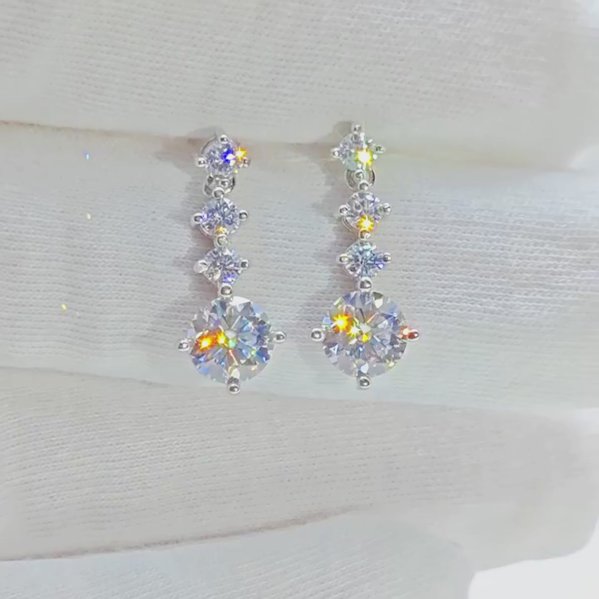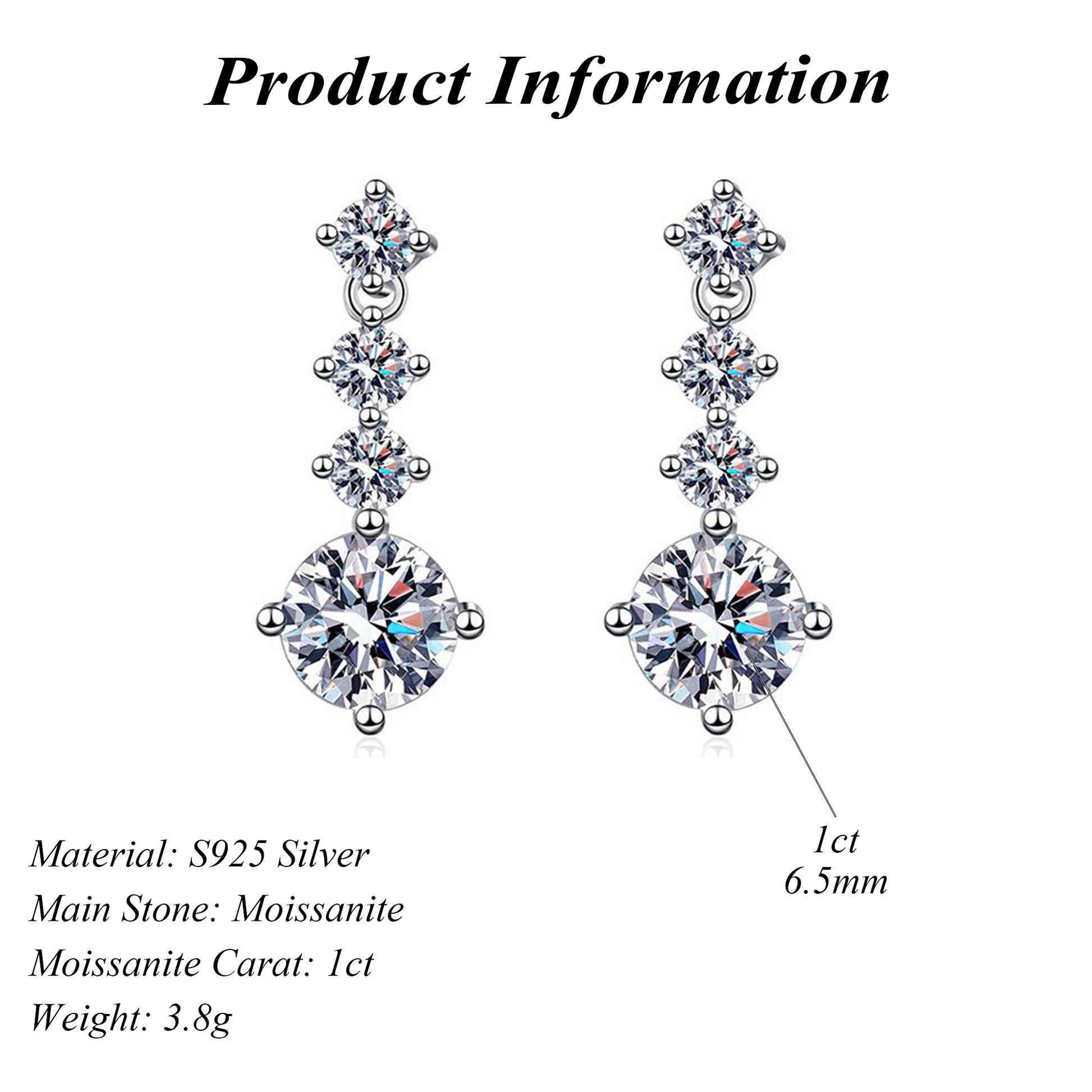925 Silver Round Cut Moissanite Drop Dangle Earrings 1ct