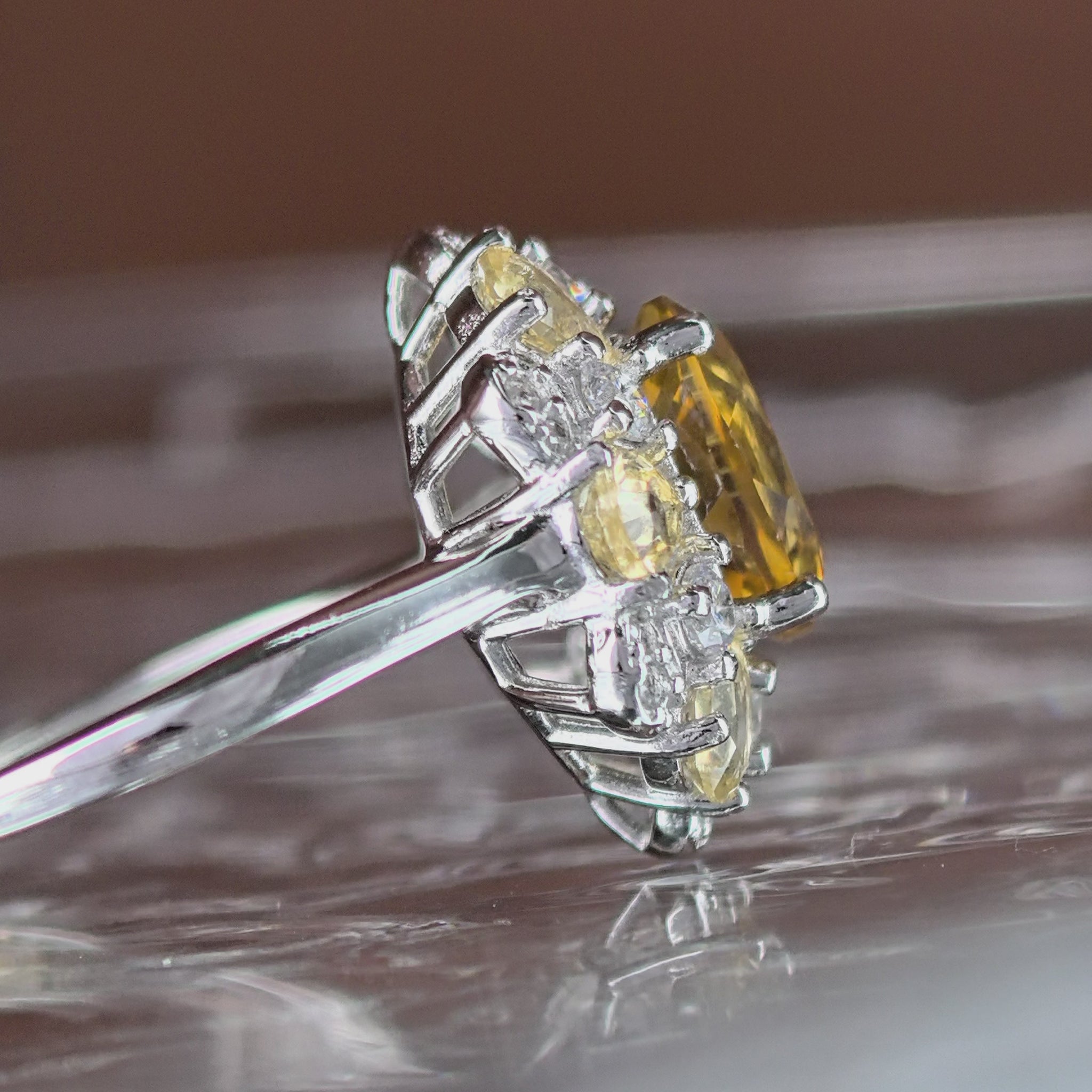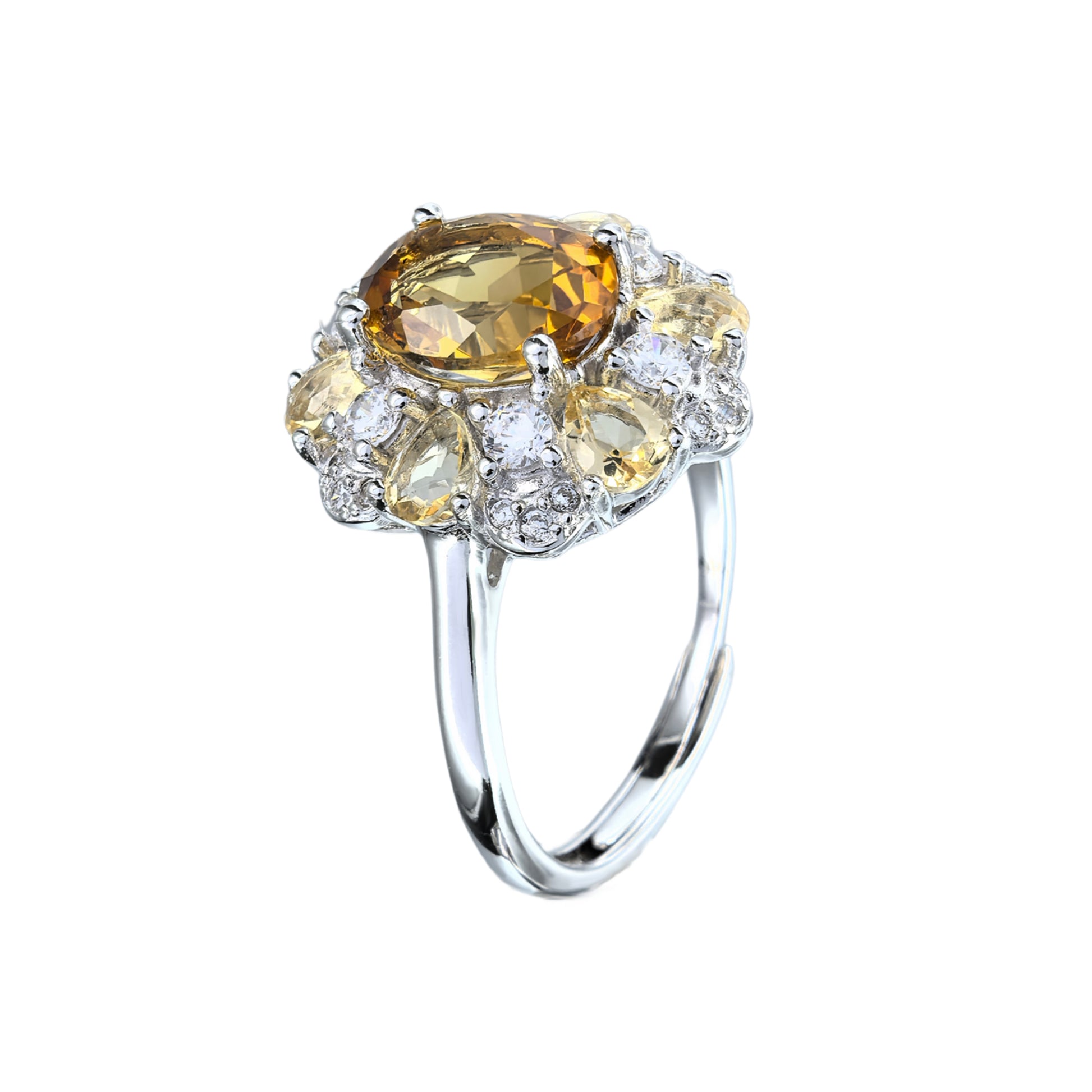 Brilliant Rhodium Plated 925 Silver Natural Citrine Oval Cut Gemstone Ring