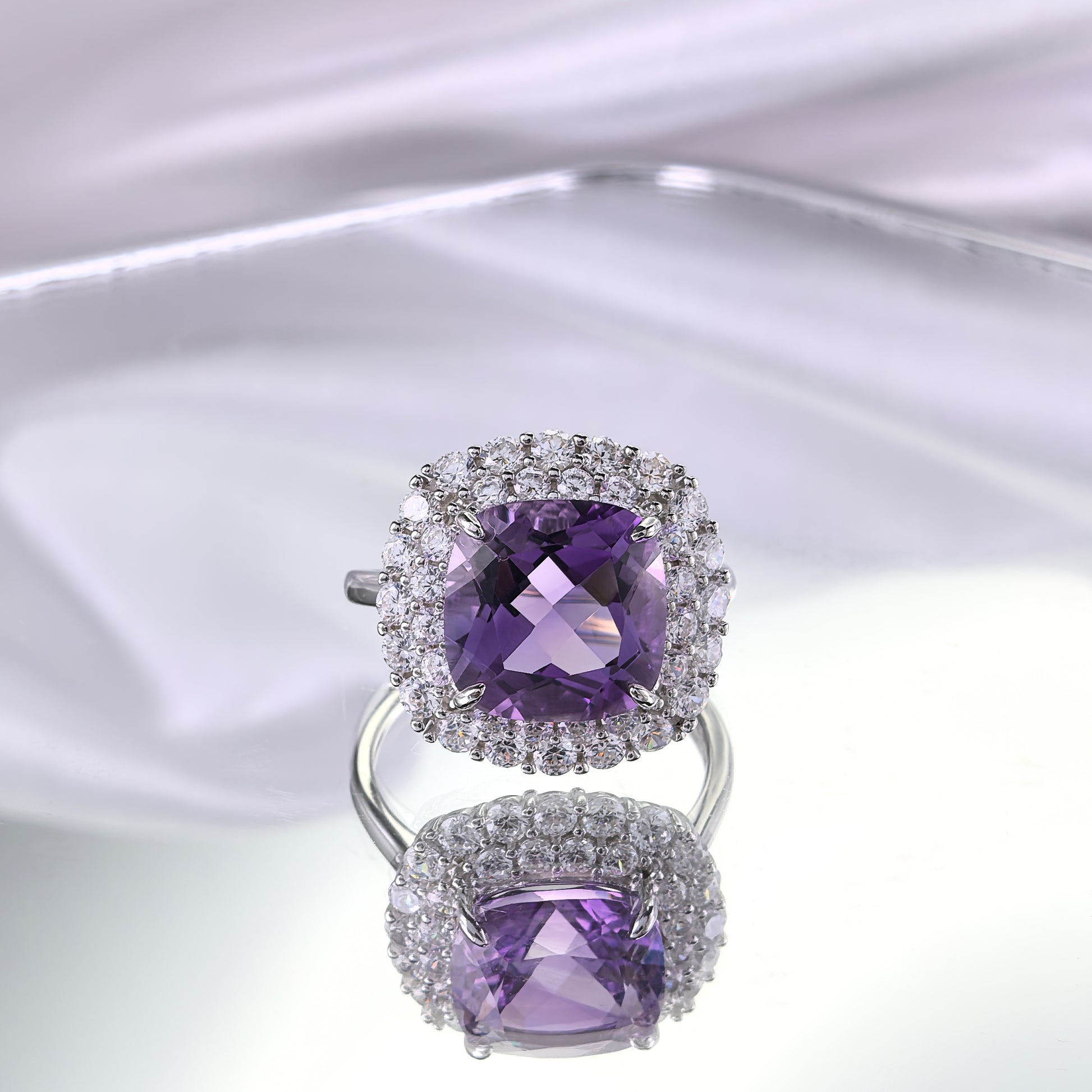 Brilliant Rhodium Plated Silver 925 Natural Amethyst Ring