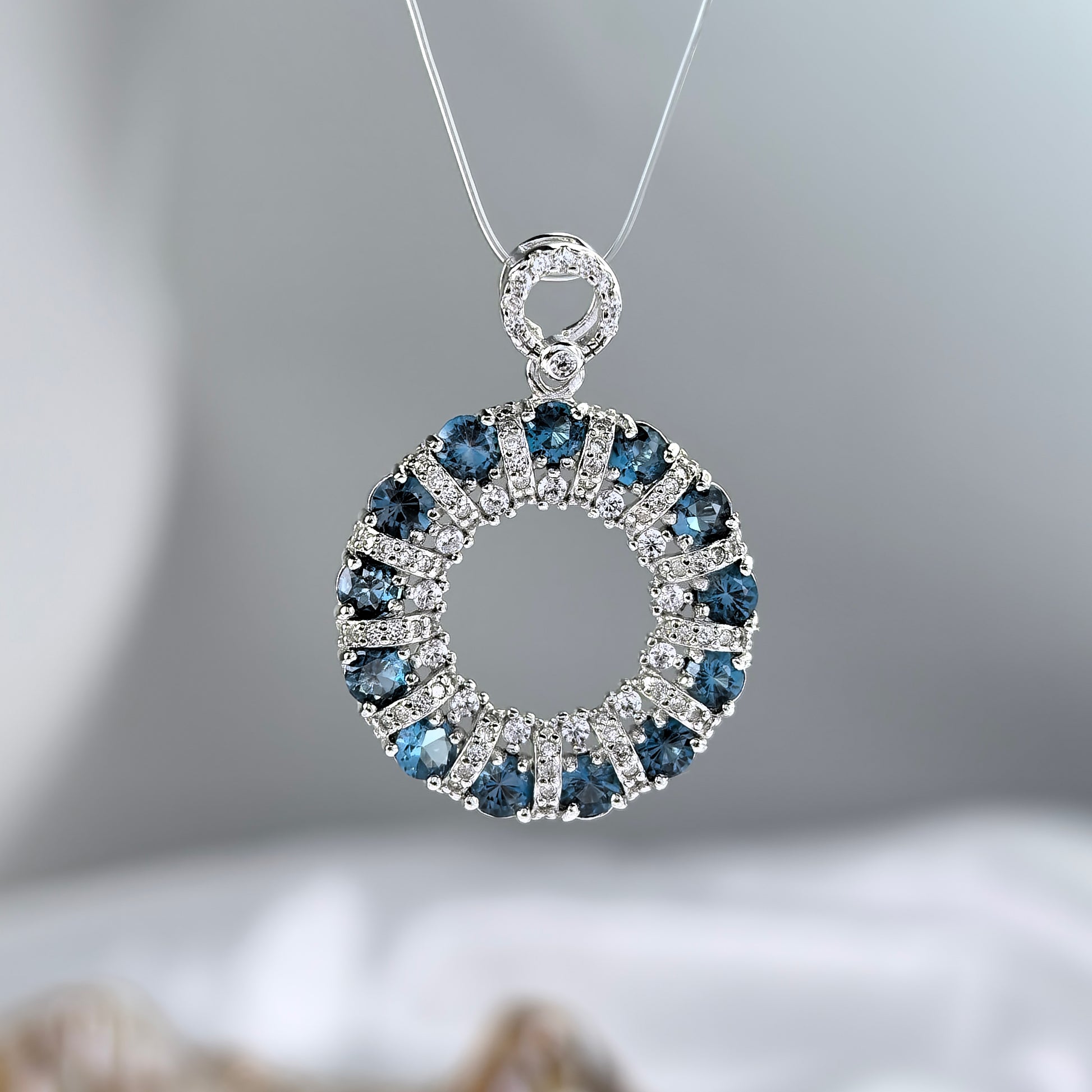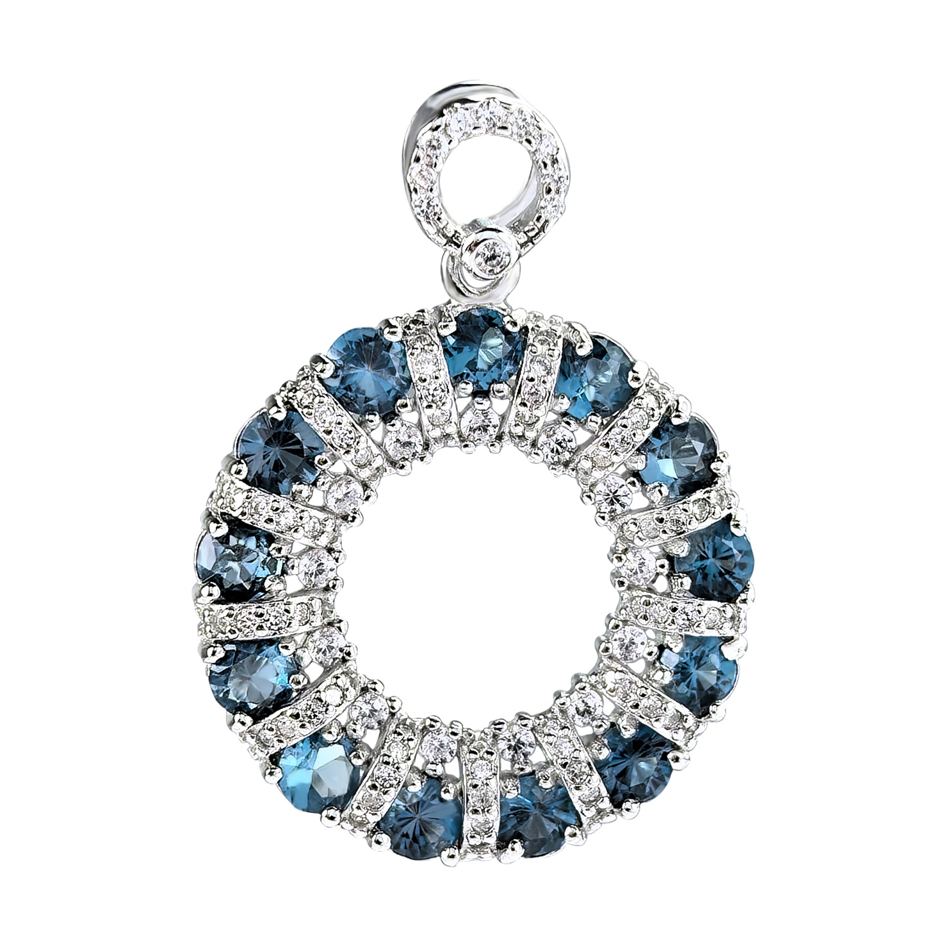 Dazzling Rhodium Plated 925 Sterling Silver London Blue Topaz Pendant