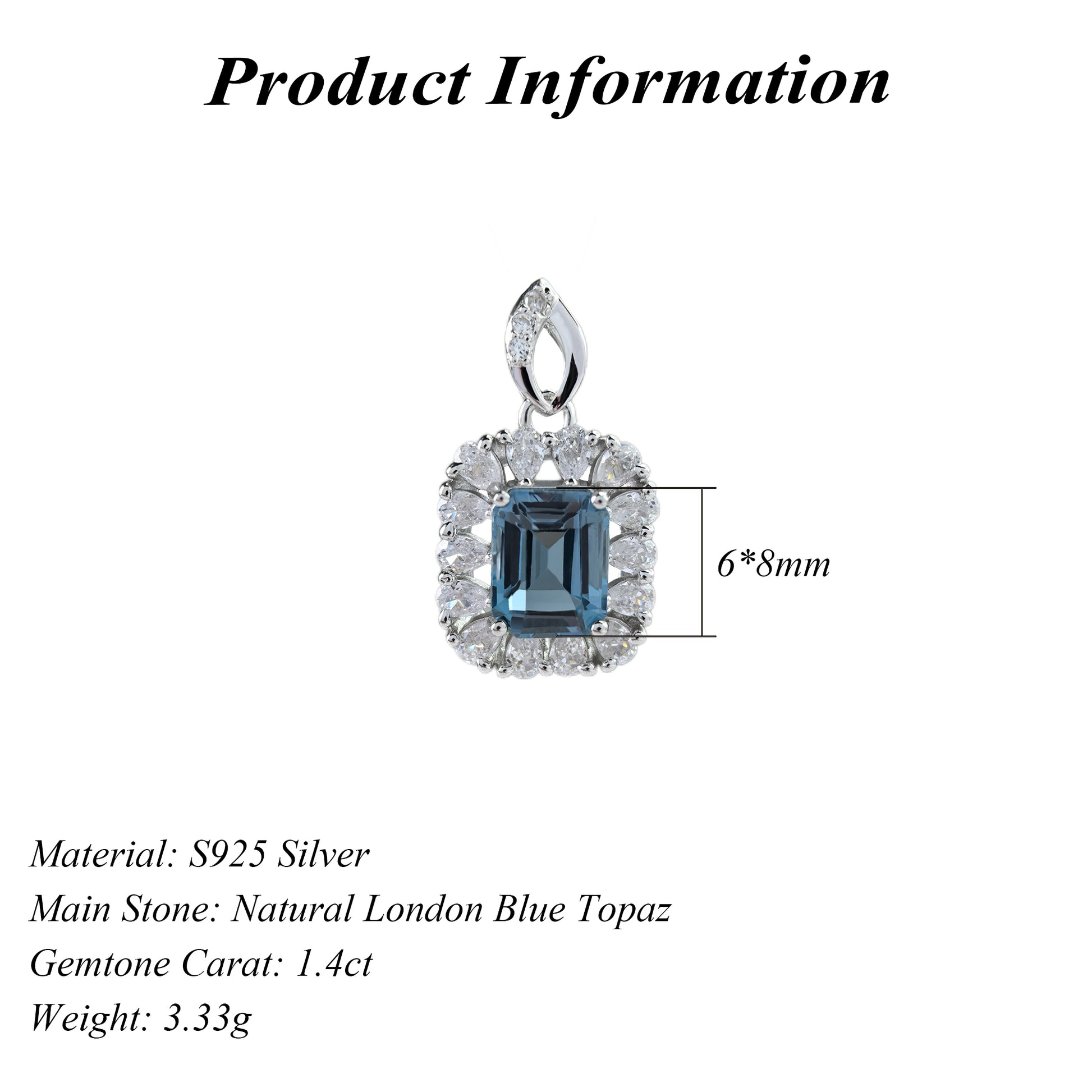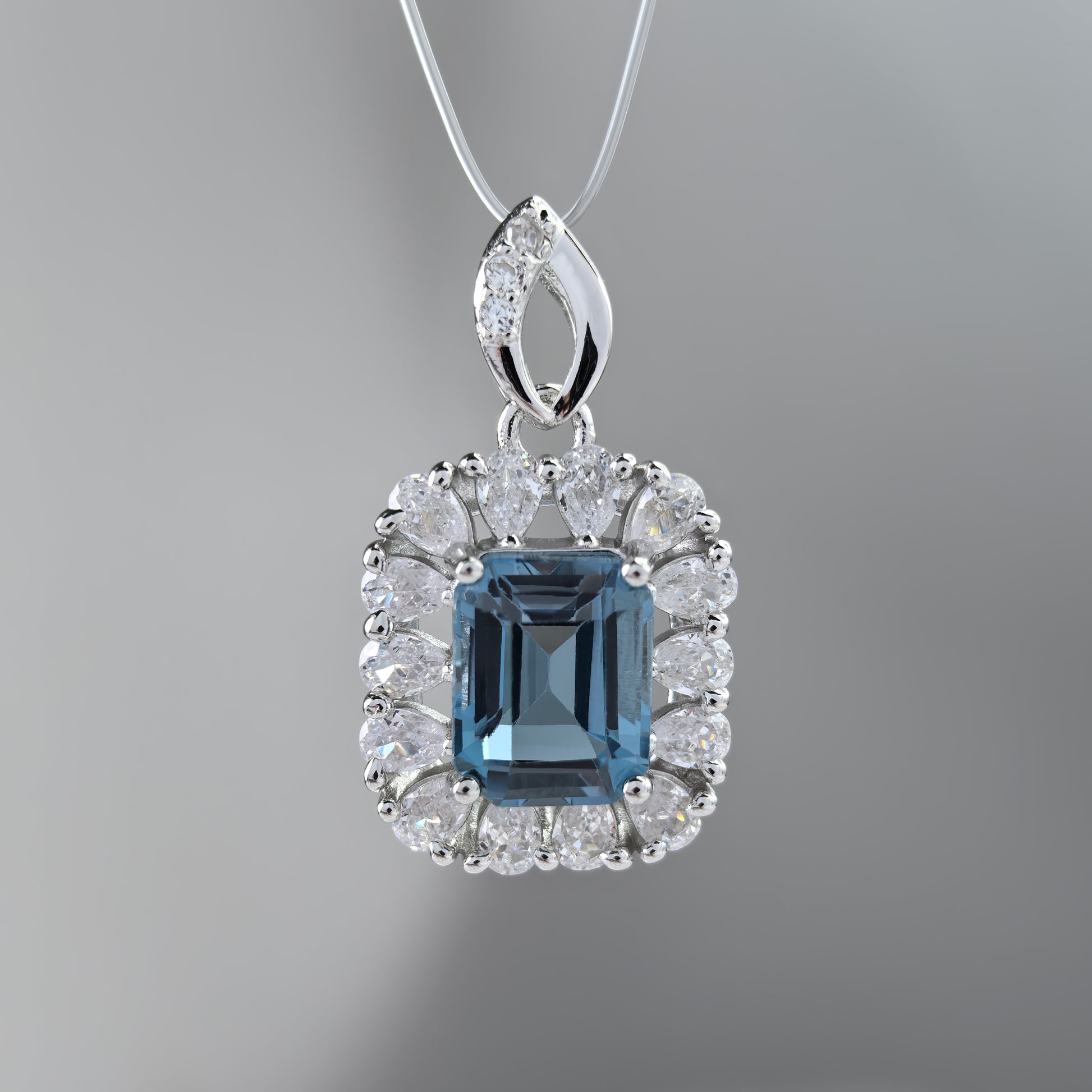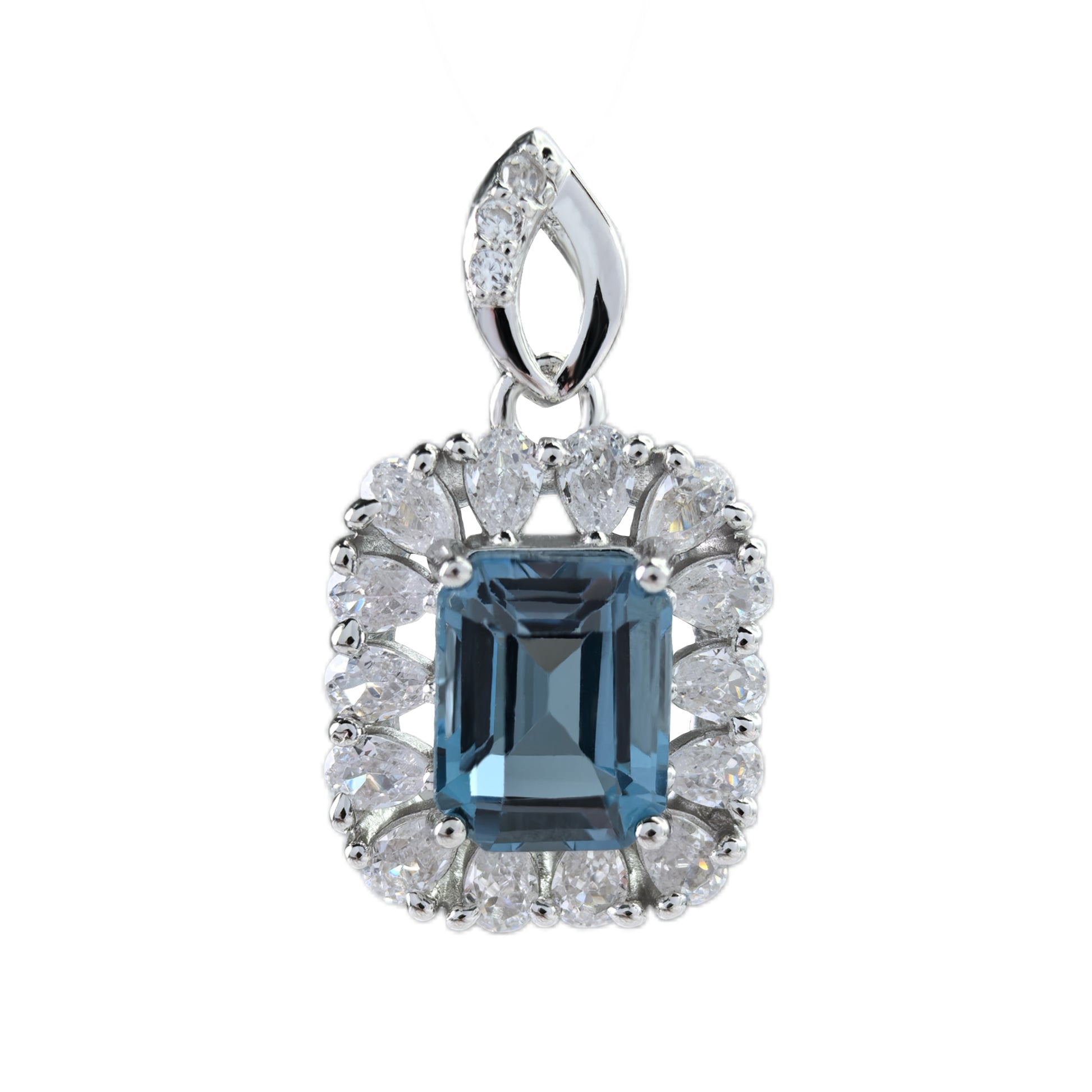 Dazzling Rhodium Plated 925 Sterling Silver Natural London Blue Topaz Pendant