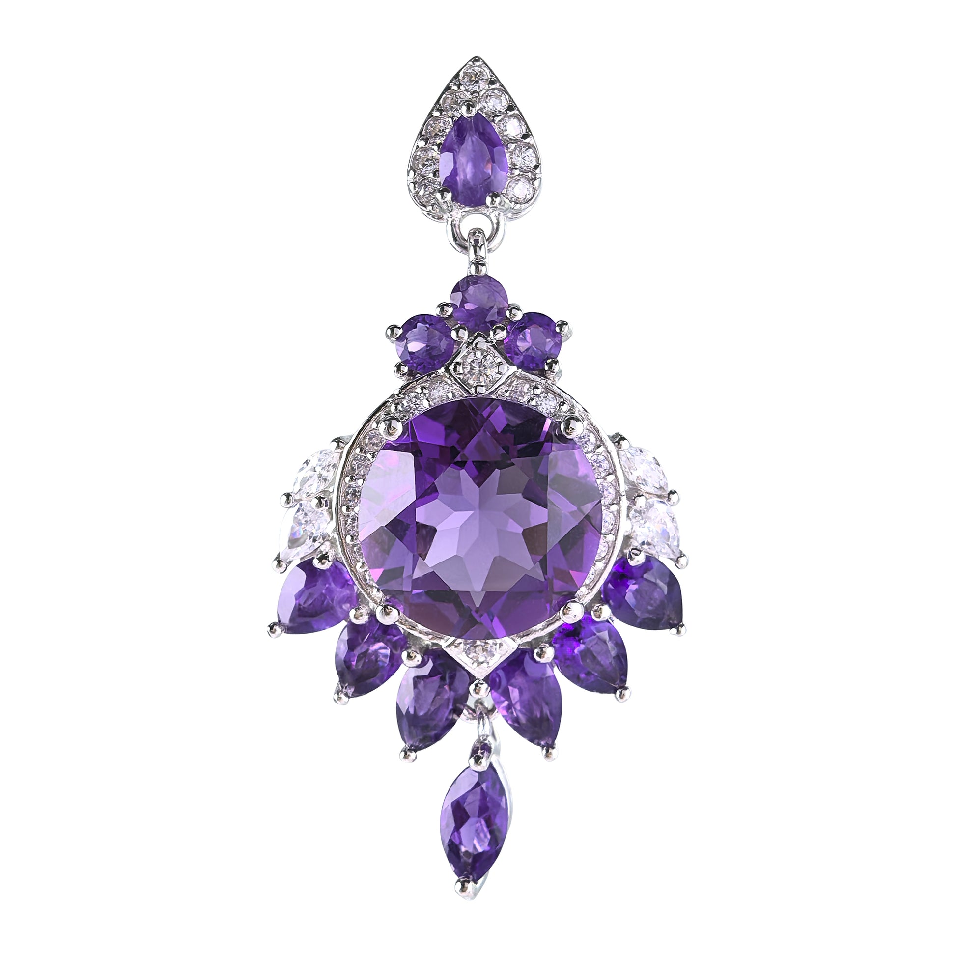 Dazzling Rhodium Plated Natural Amethyst 925 Sterling Silver Pendant