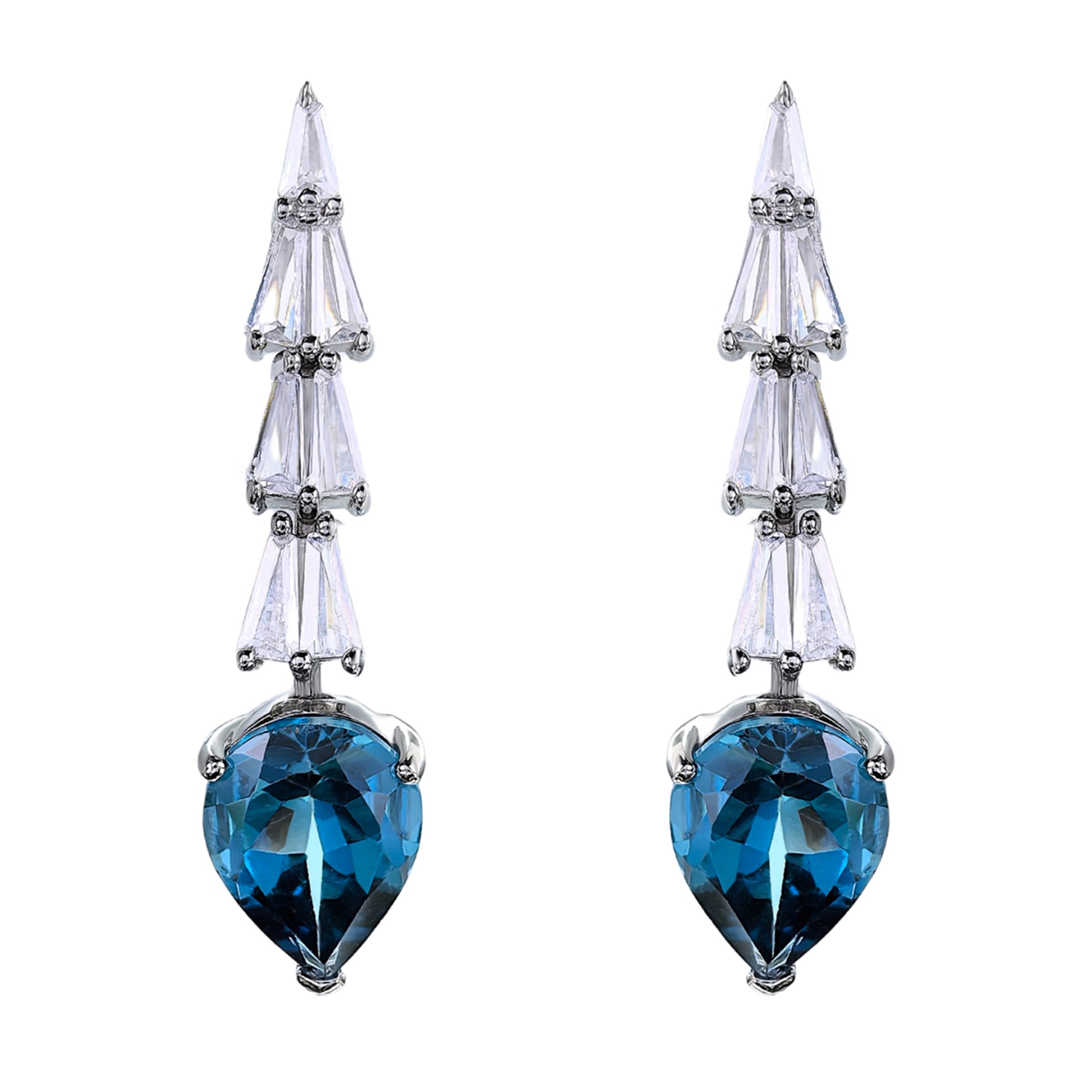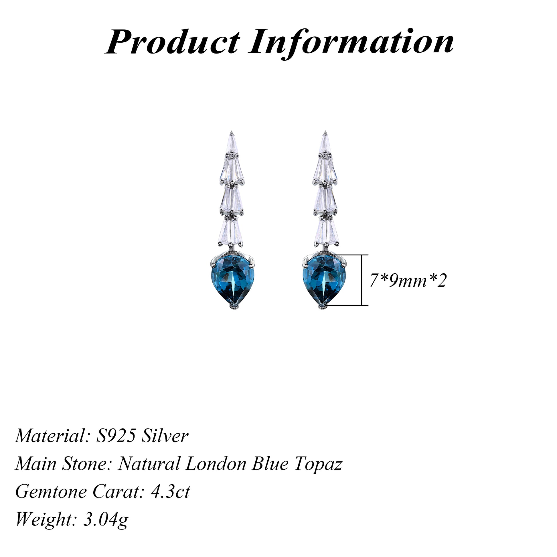 Dazzling Rhodium Plated S925 Silver Jewelry Natural London Blue Topaz Drop Earrings