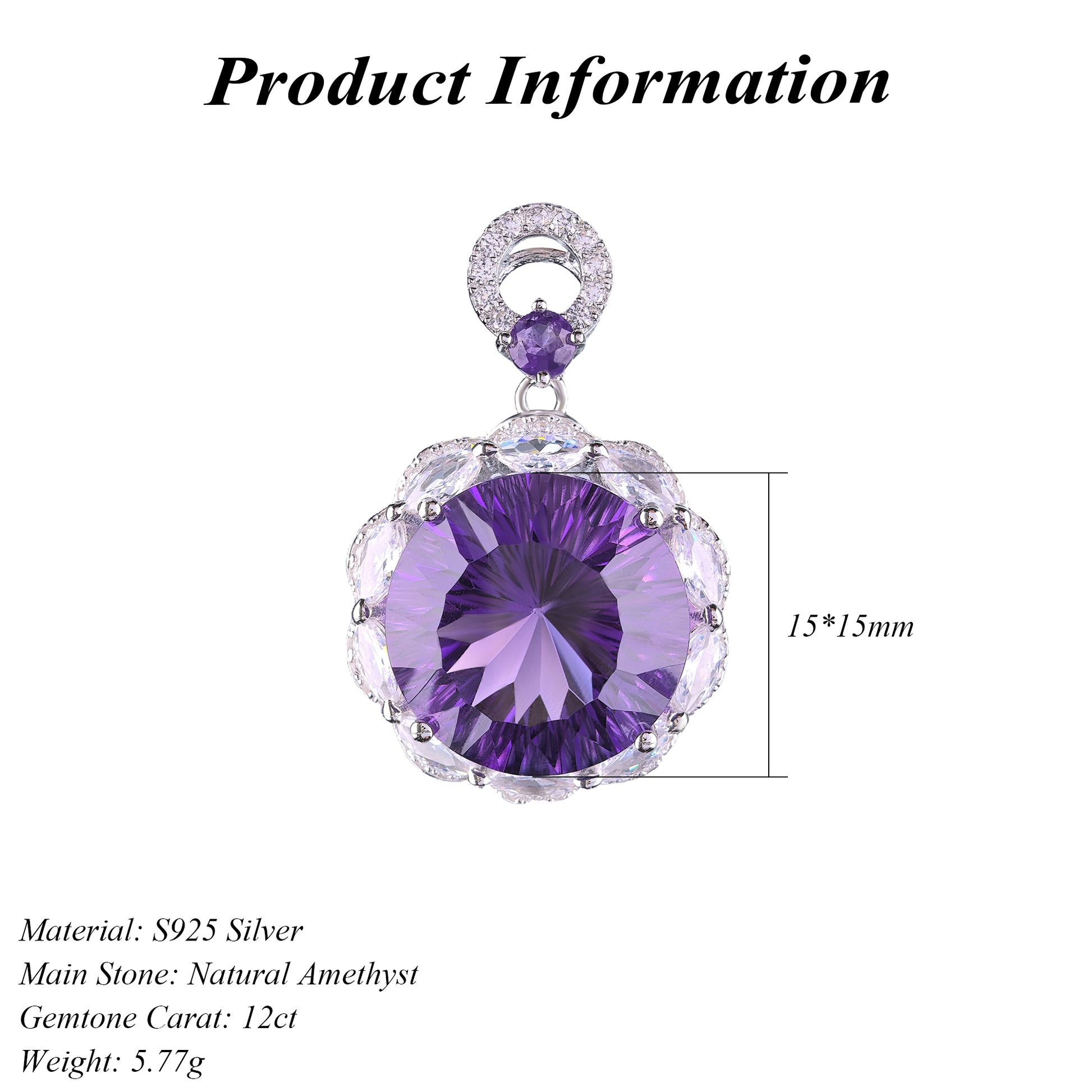 Deep Purple Natural Elegant Amethyst Pendant Ball 925 Silver Rhodium Plated