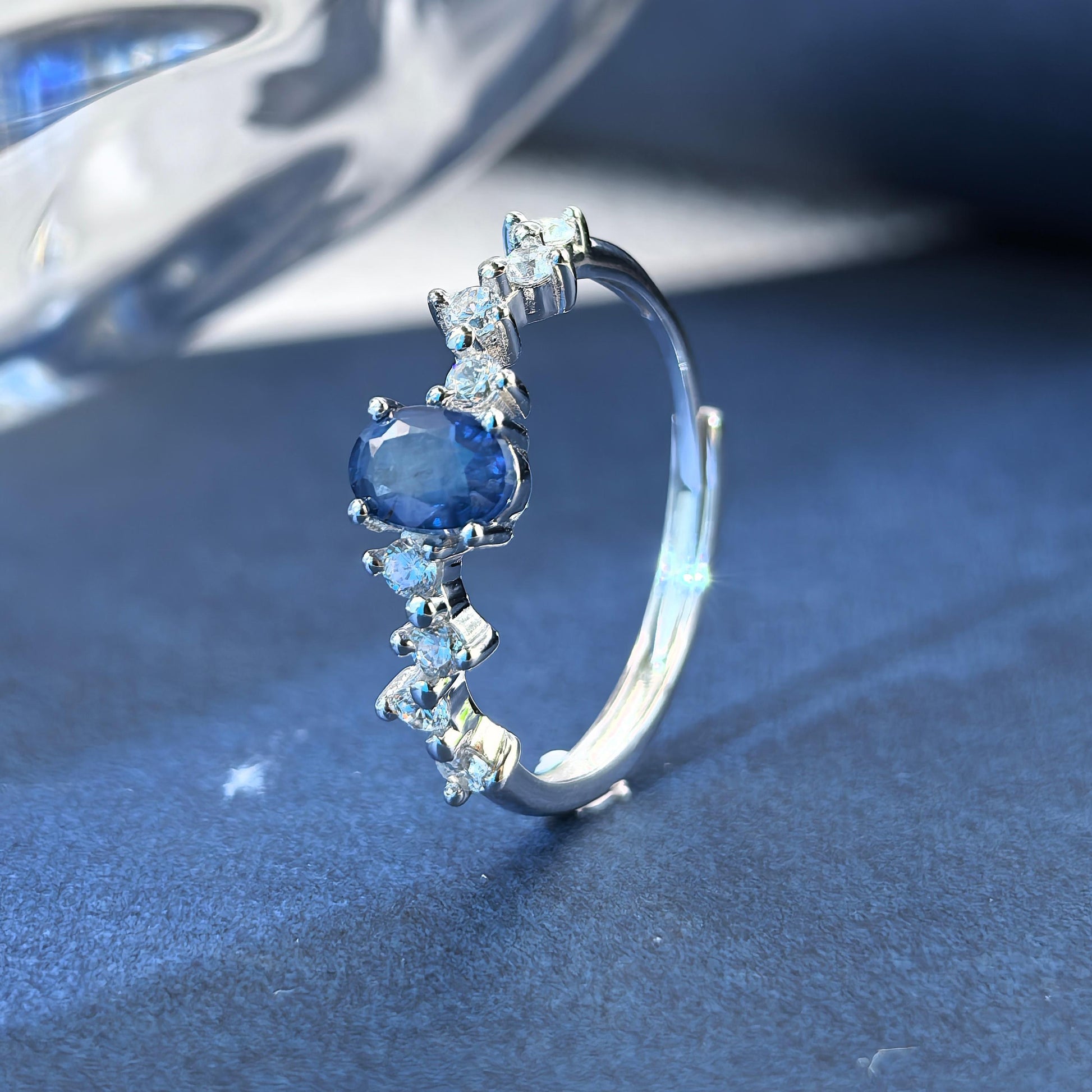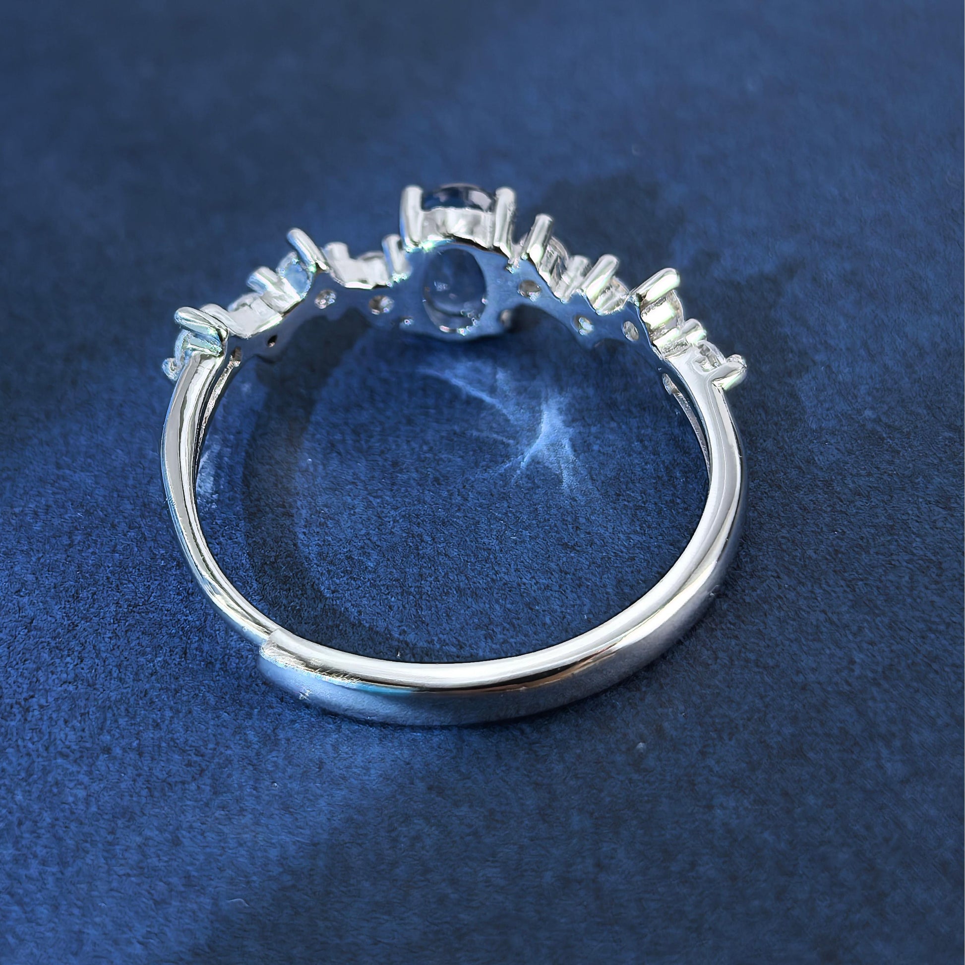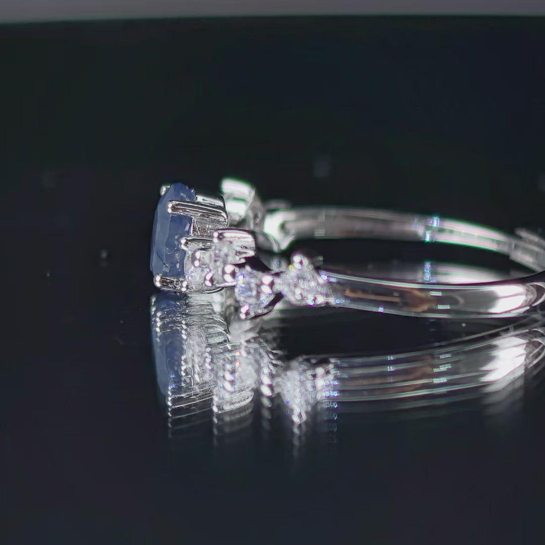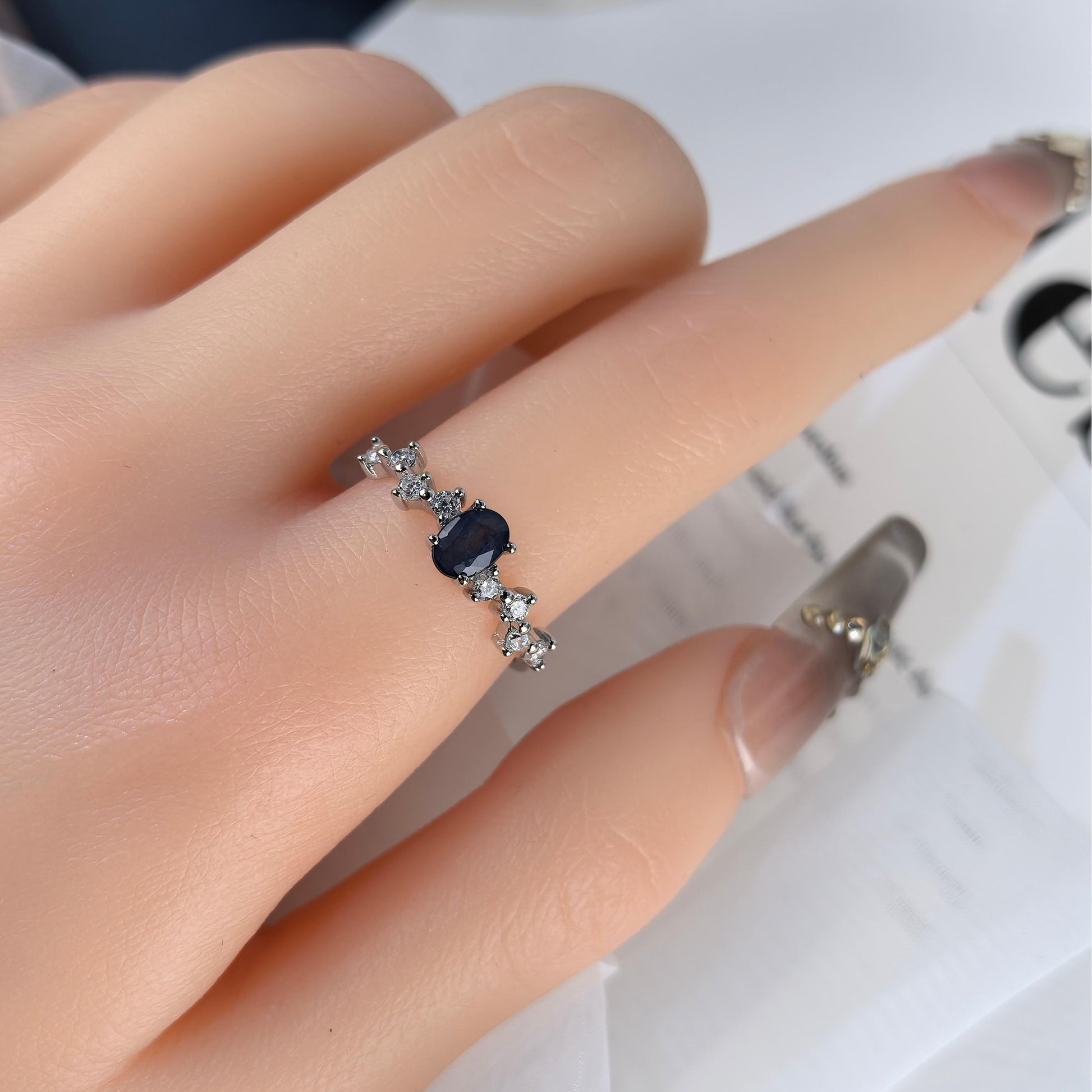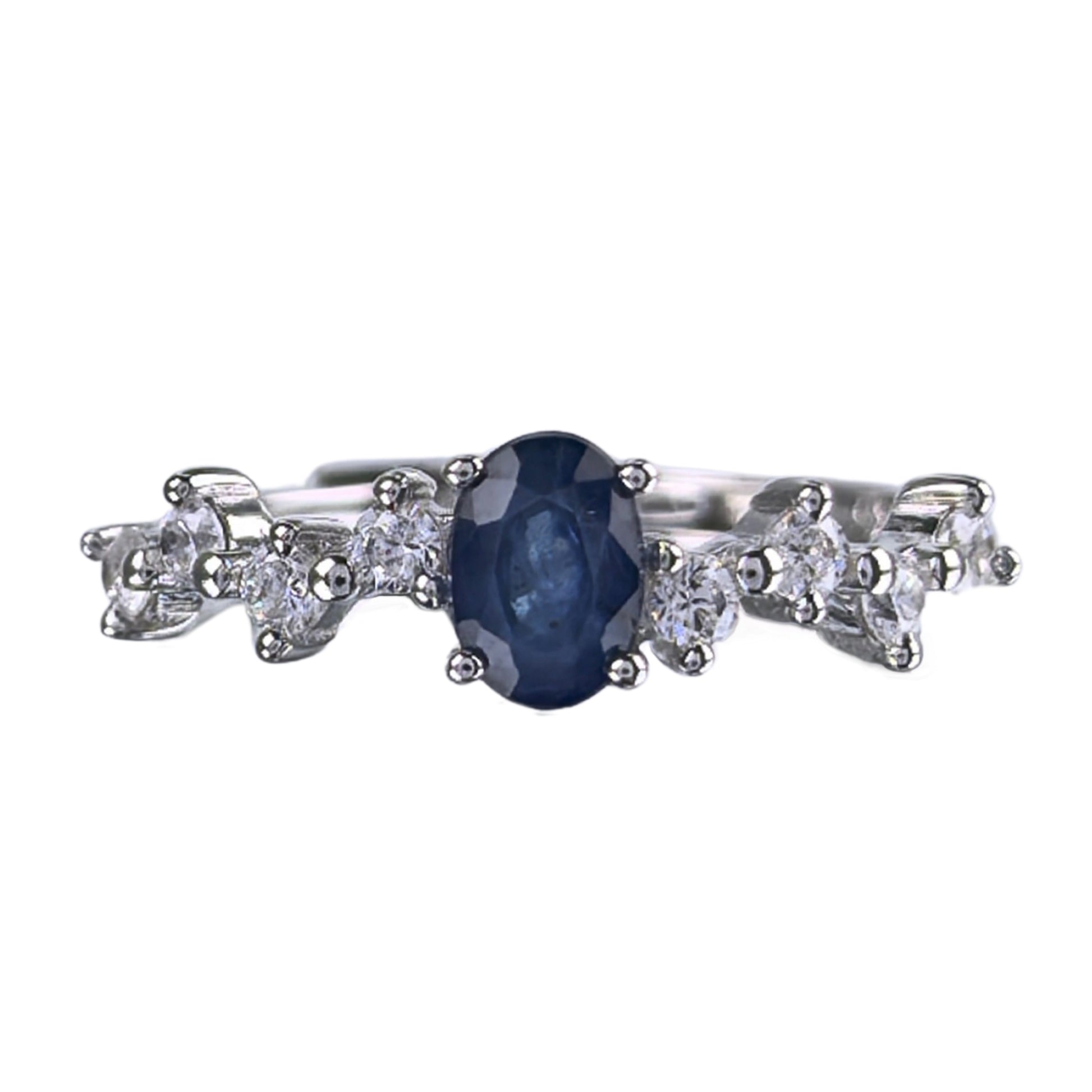 Delicate Rhodium Plated 925 Silver Jewelry Natural Sapphire Ring