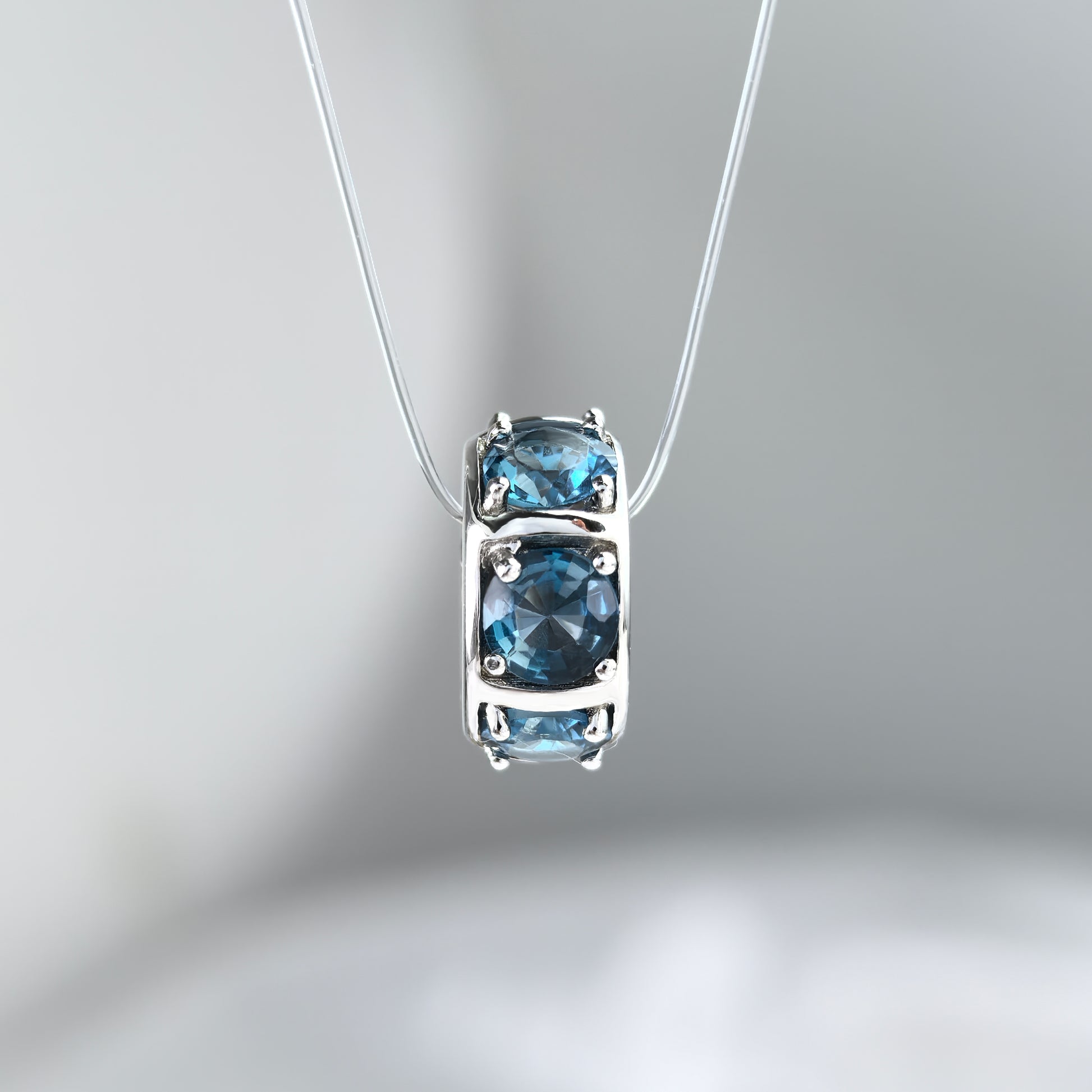 Delicate Rhodium Plated 925 Sterling Silver London Blue Topaz Pendant