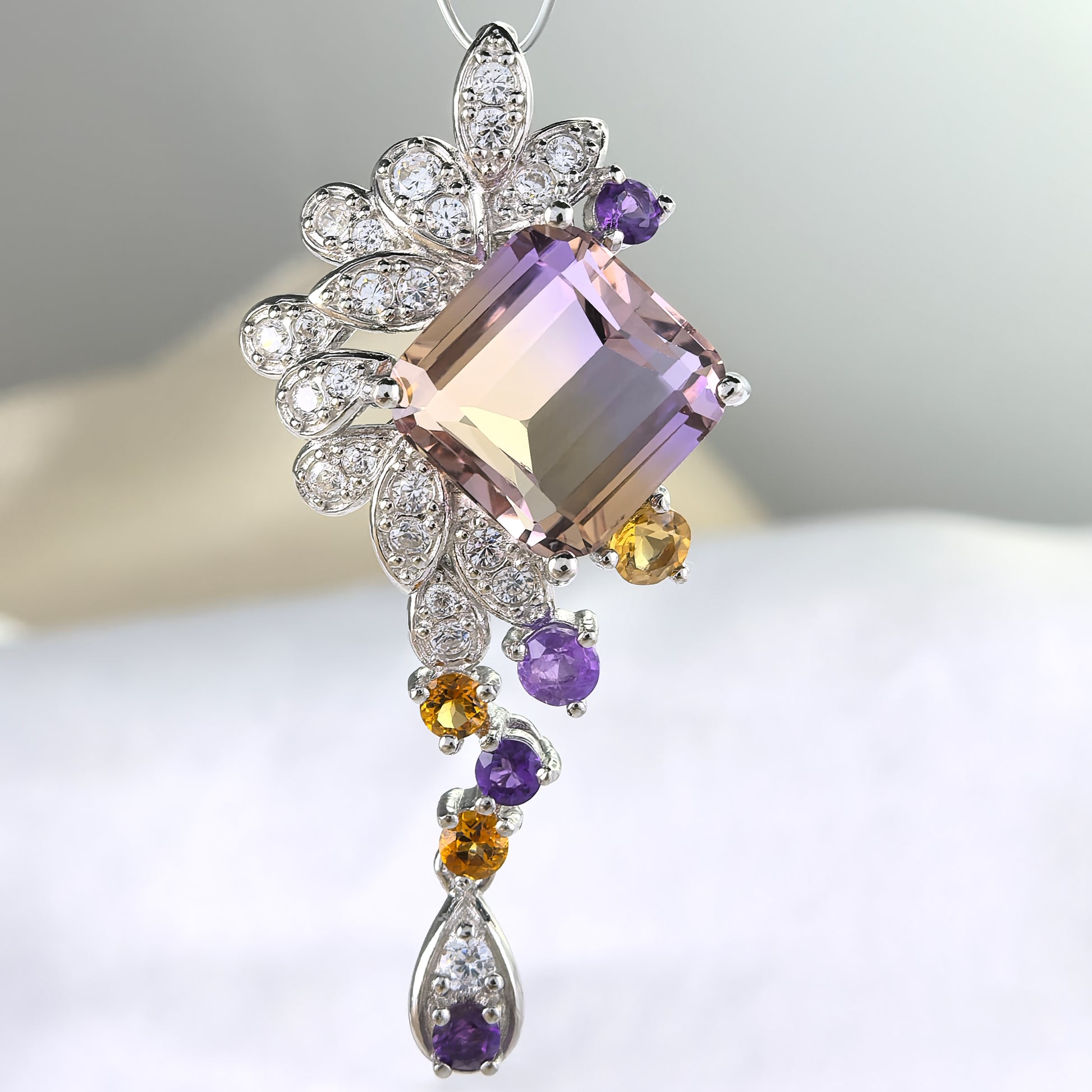 Delicate Rhodium Plated 925 Sterling Silver Natural Ametrine Pendant