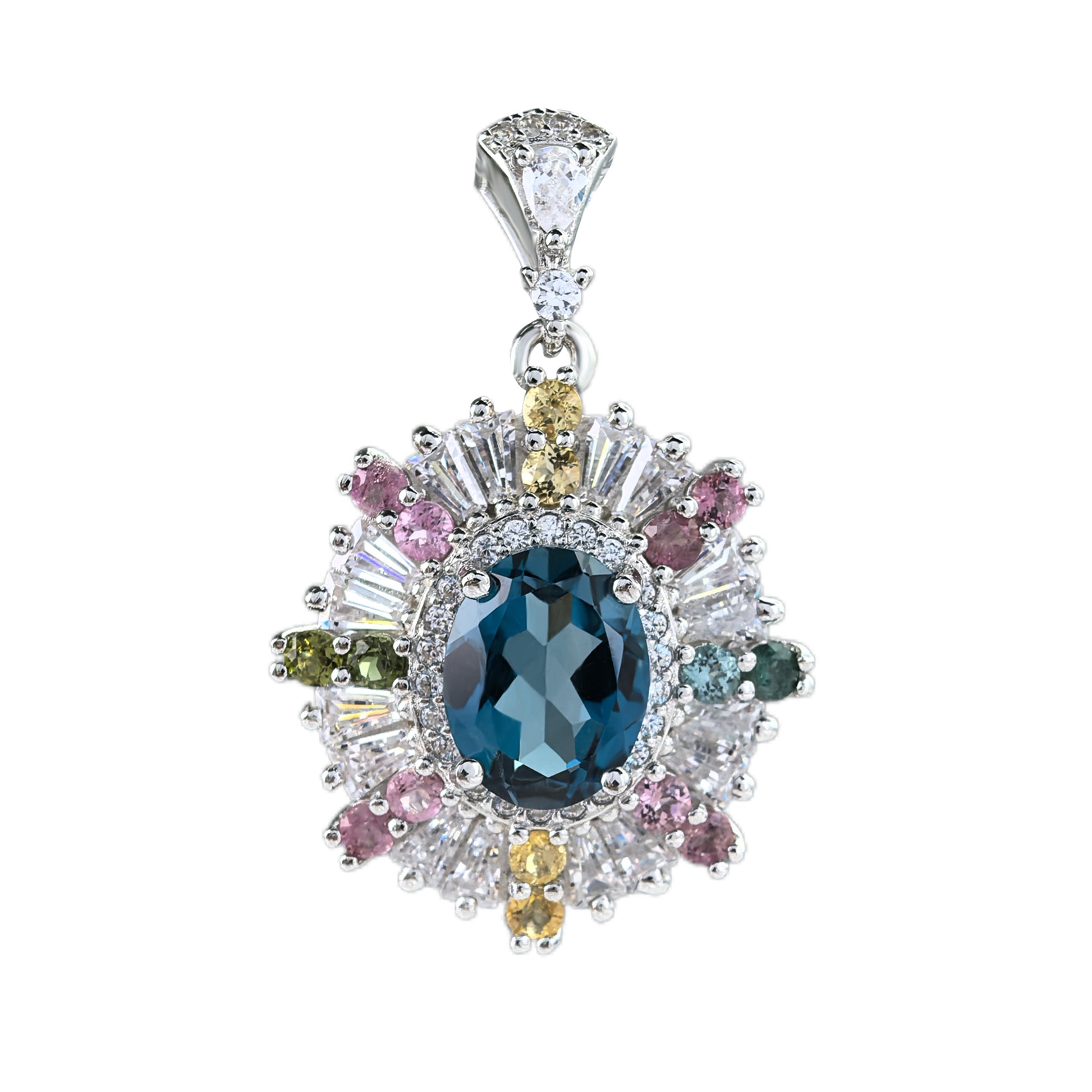 Delicate Rhodium Plated 925 Sterling Silver Natural London Blue Topaz Pendant