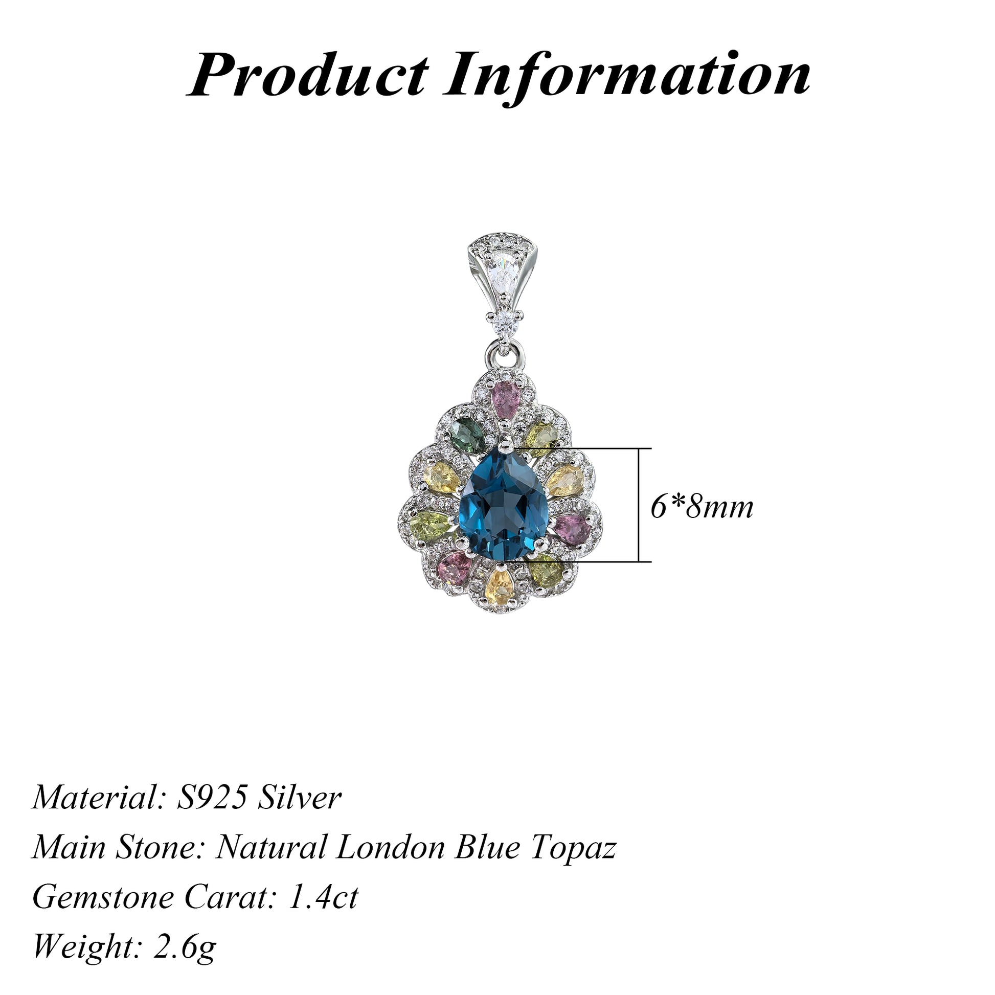 Delicate Rhodium Plated 925 Sterling Silver Natural London Blue Topaz Pendant