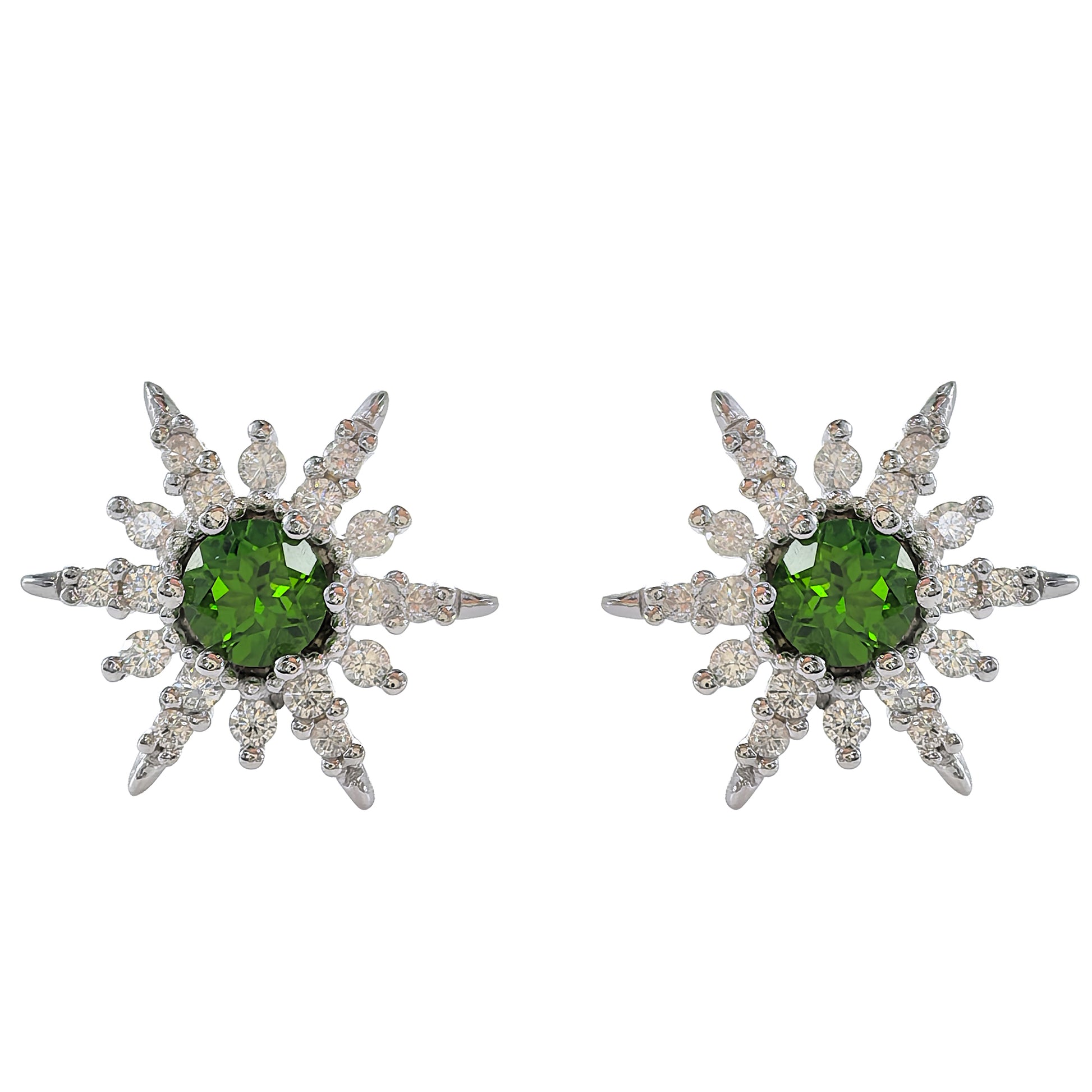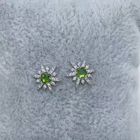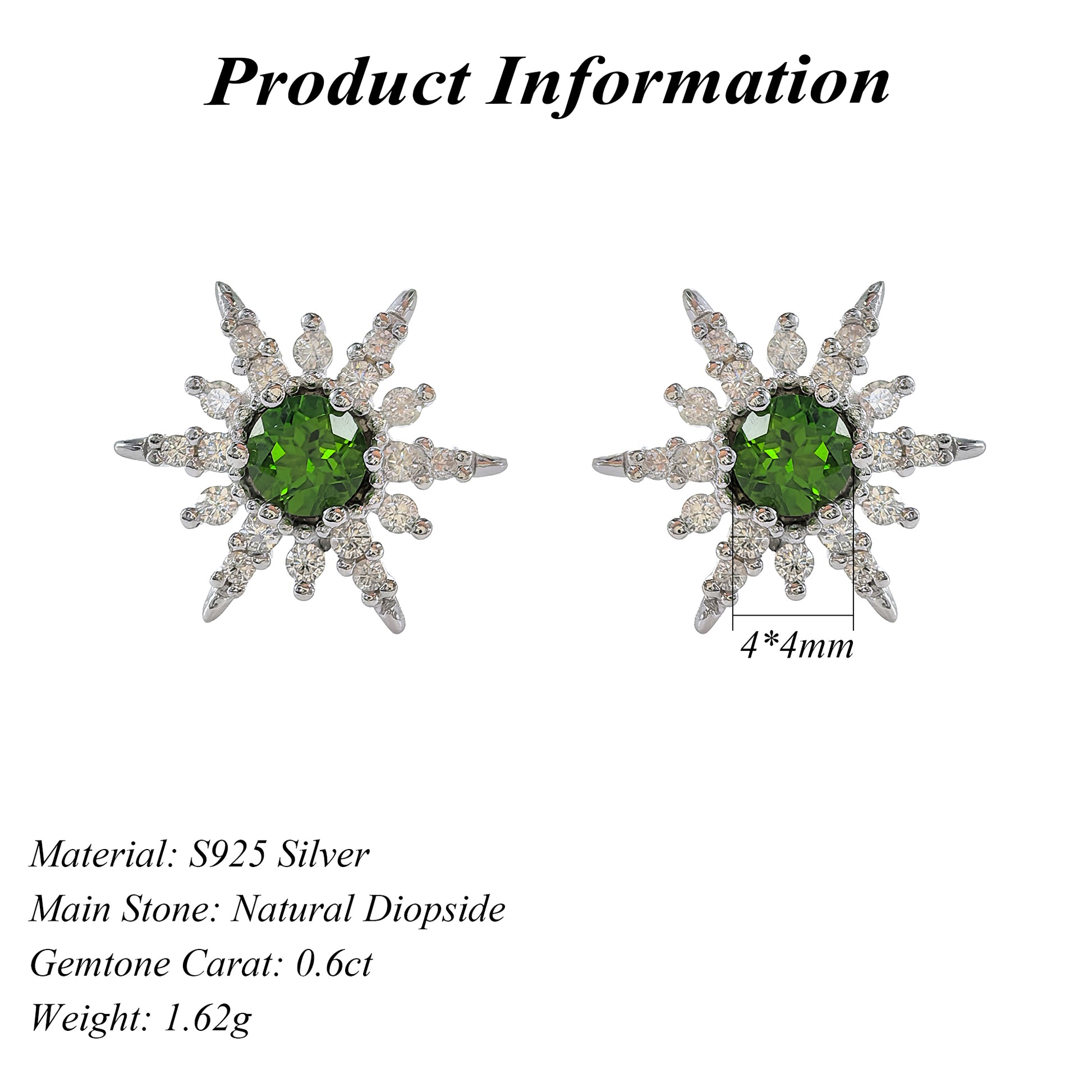 Elegant Green Natural Diopside Gemstone 925 Sterling Silver Stud Earrings