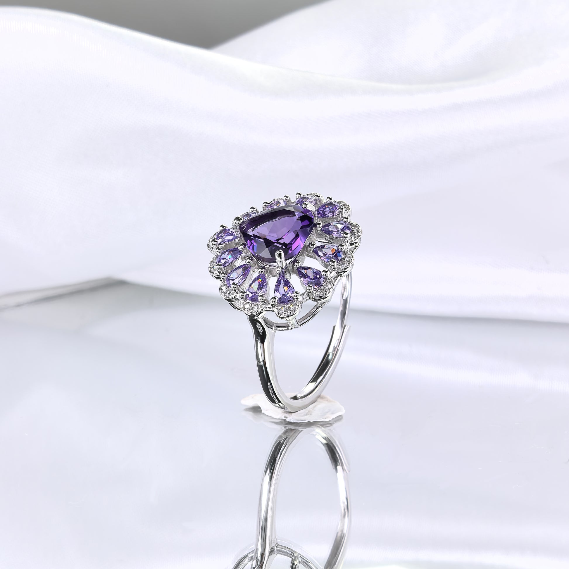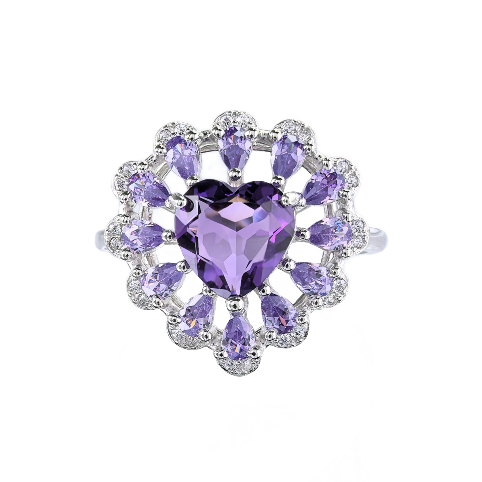 Elegant Rhodium Plated Plata 925 Jewelry Natural Amethyst Heart Ring