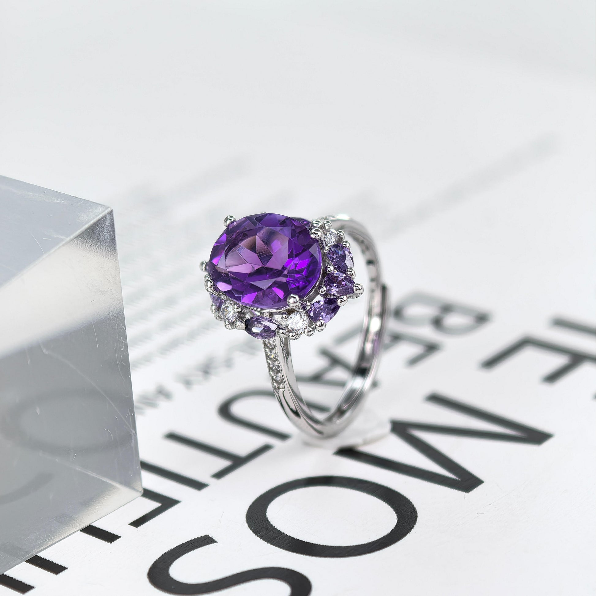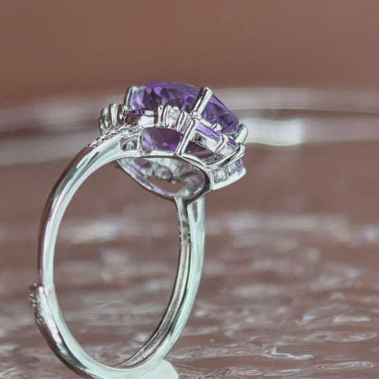 Elegant Rhodium Plated Silver 925 Oval Cut Natural Amethyst Gemstone Ring