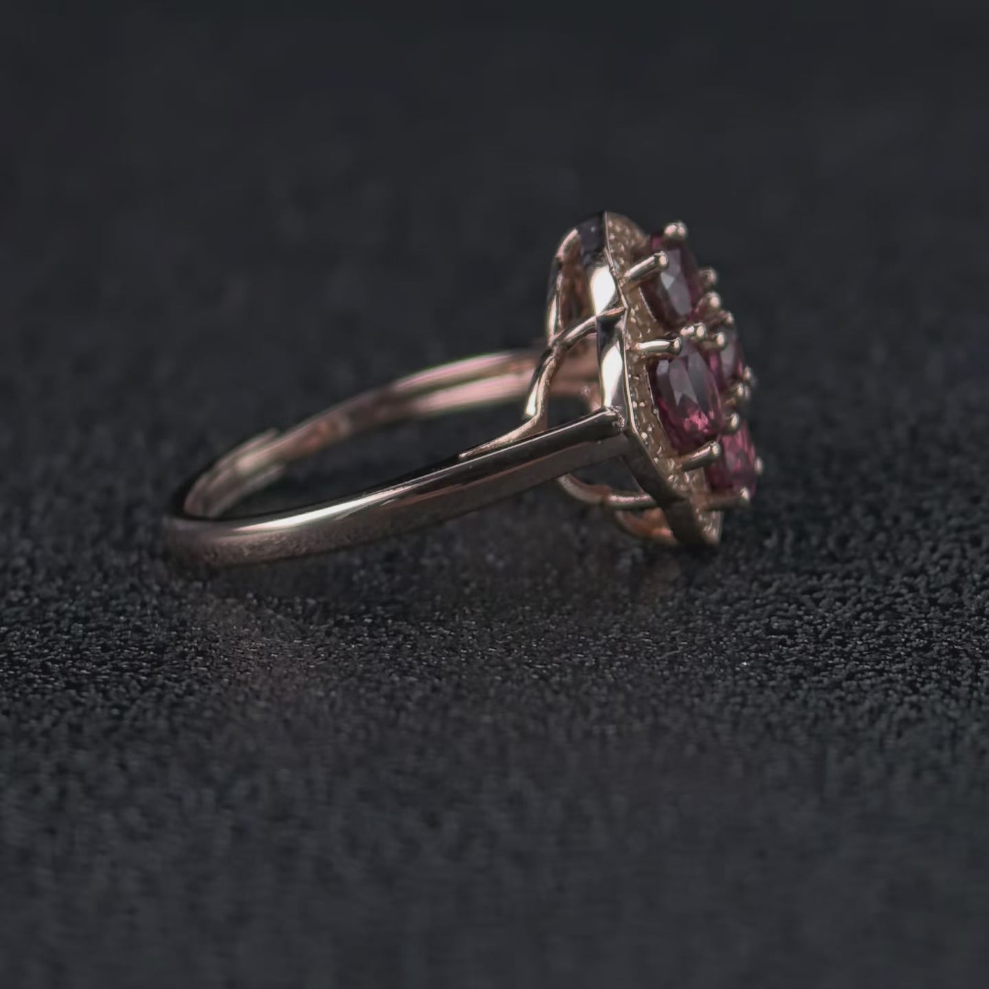Elegant Rose Gold Plated Silver 925 Jewelry Natural Pyrope Four Leaf Clover Ring