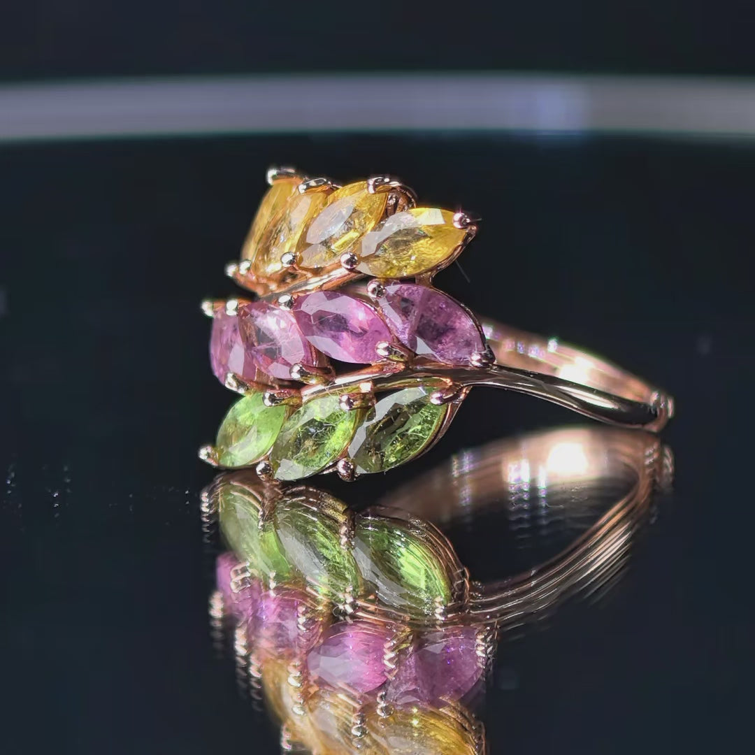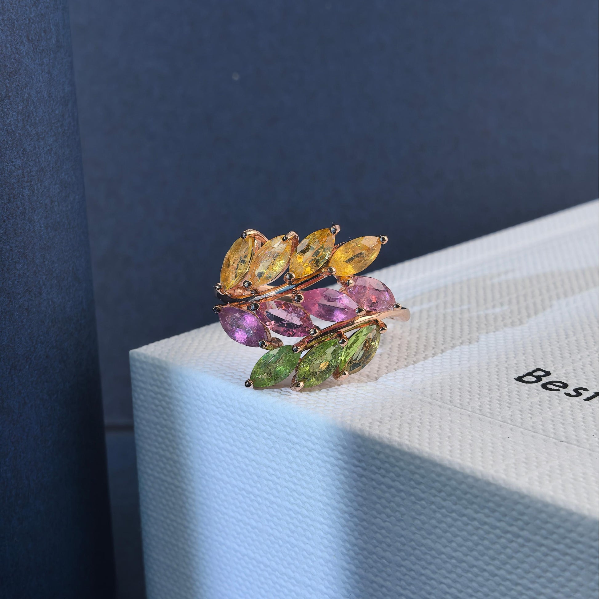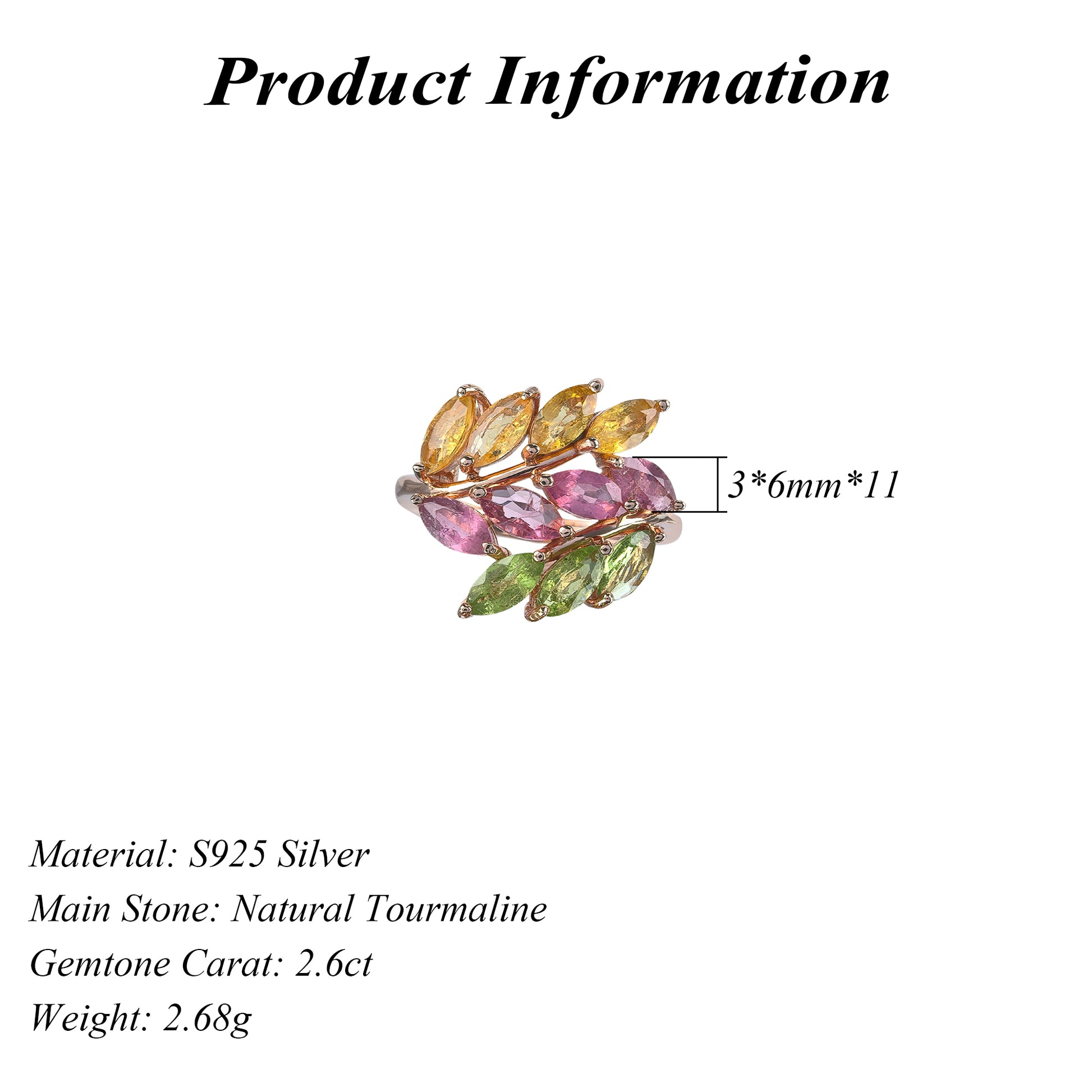 Elegant Rose Gold Plated Silver 925 Jewelry Natural Tourmaline Leaf Ring
