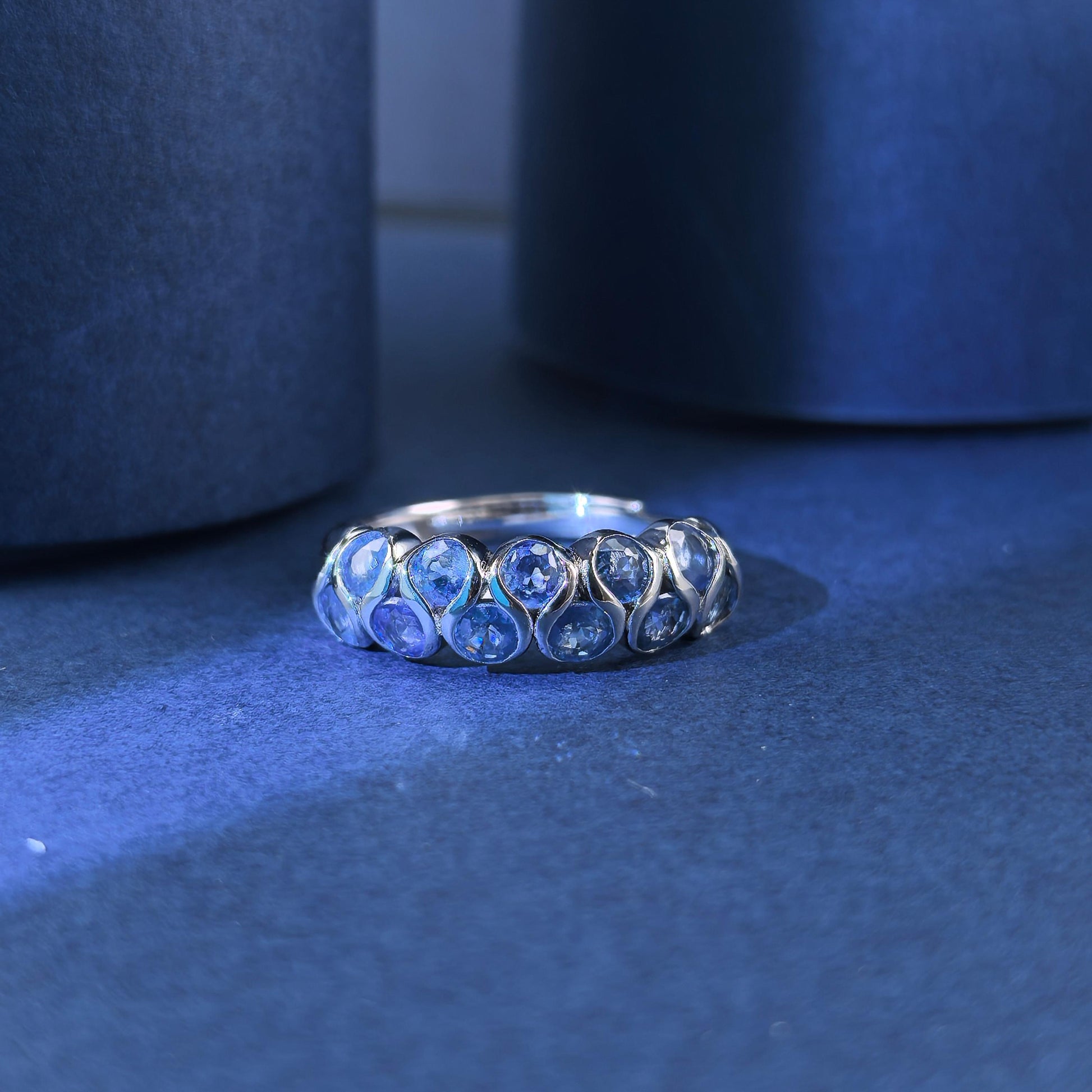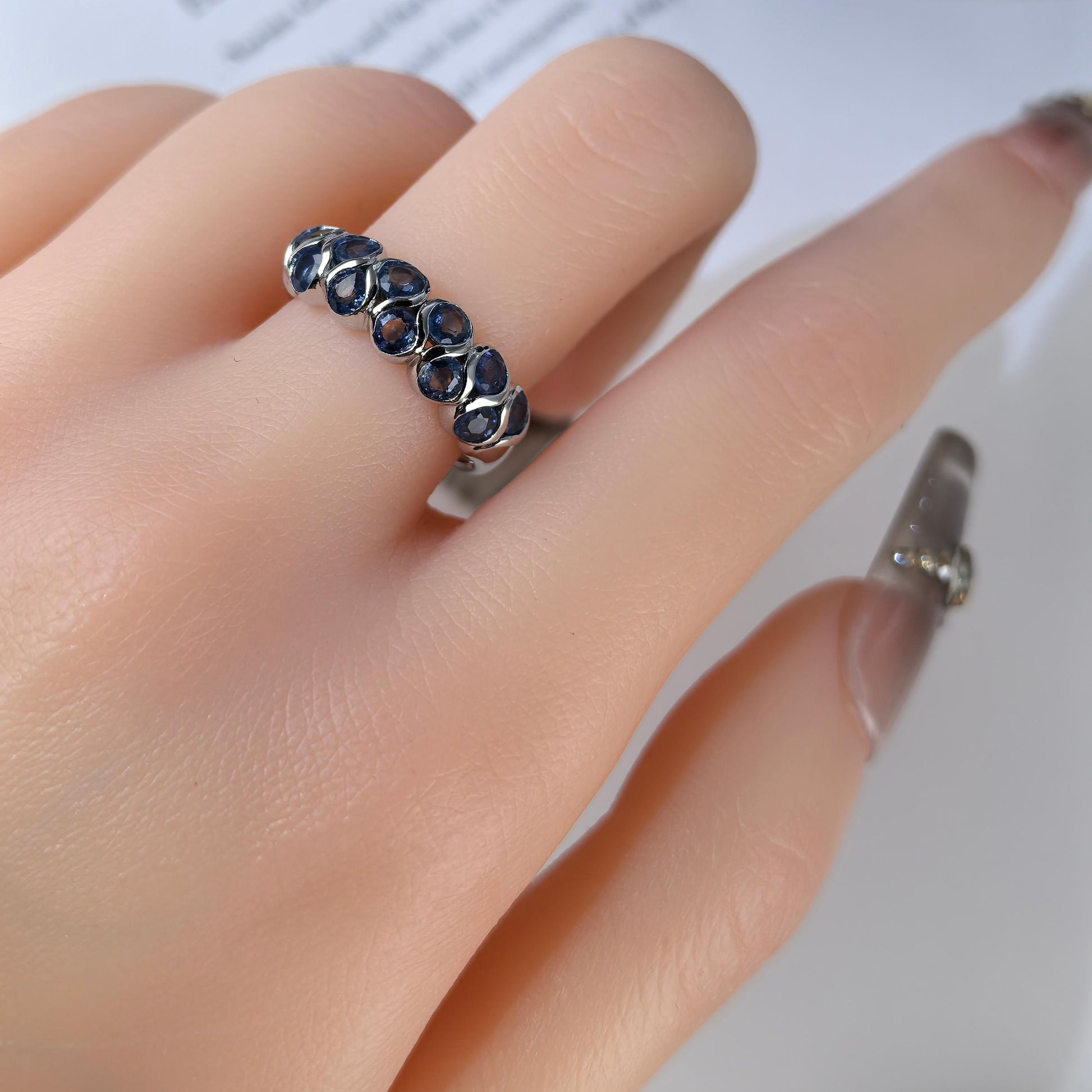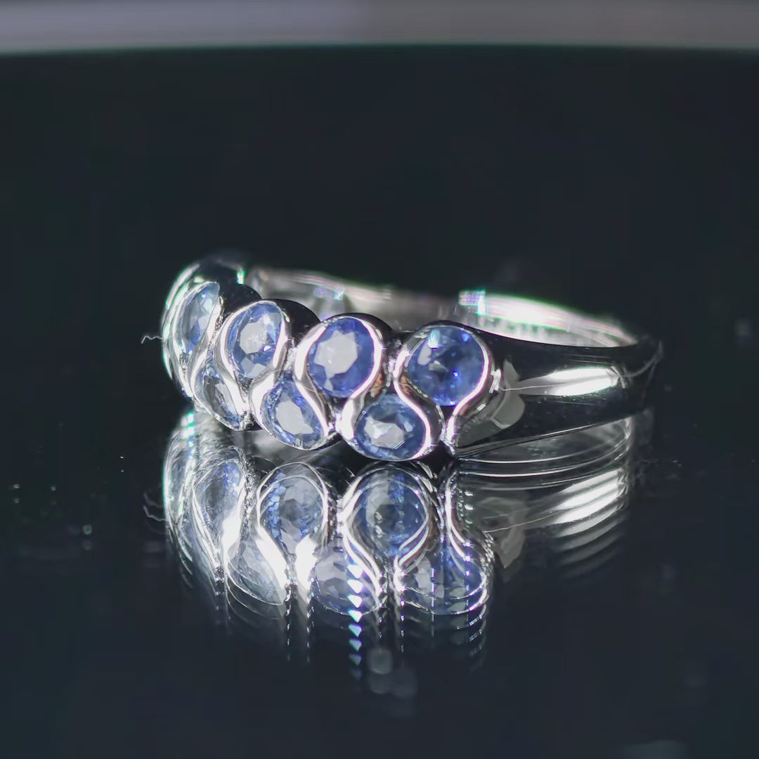 Elegant Vintage Silver 925 Ring Rhodium Plated Natural Sapphire Ring