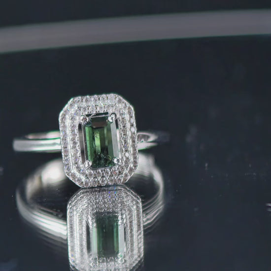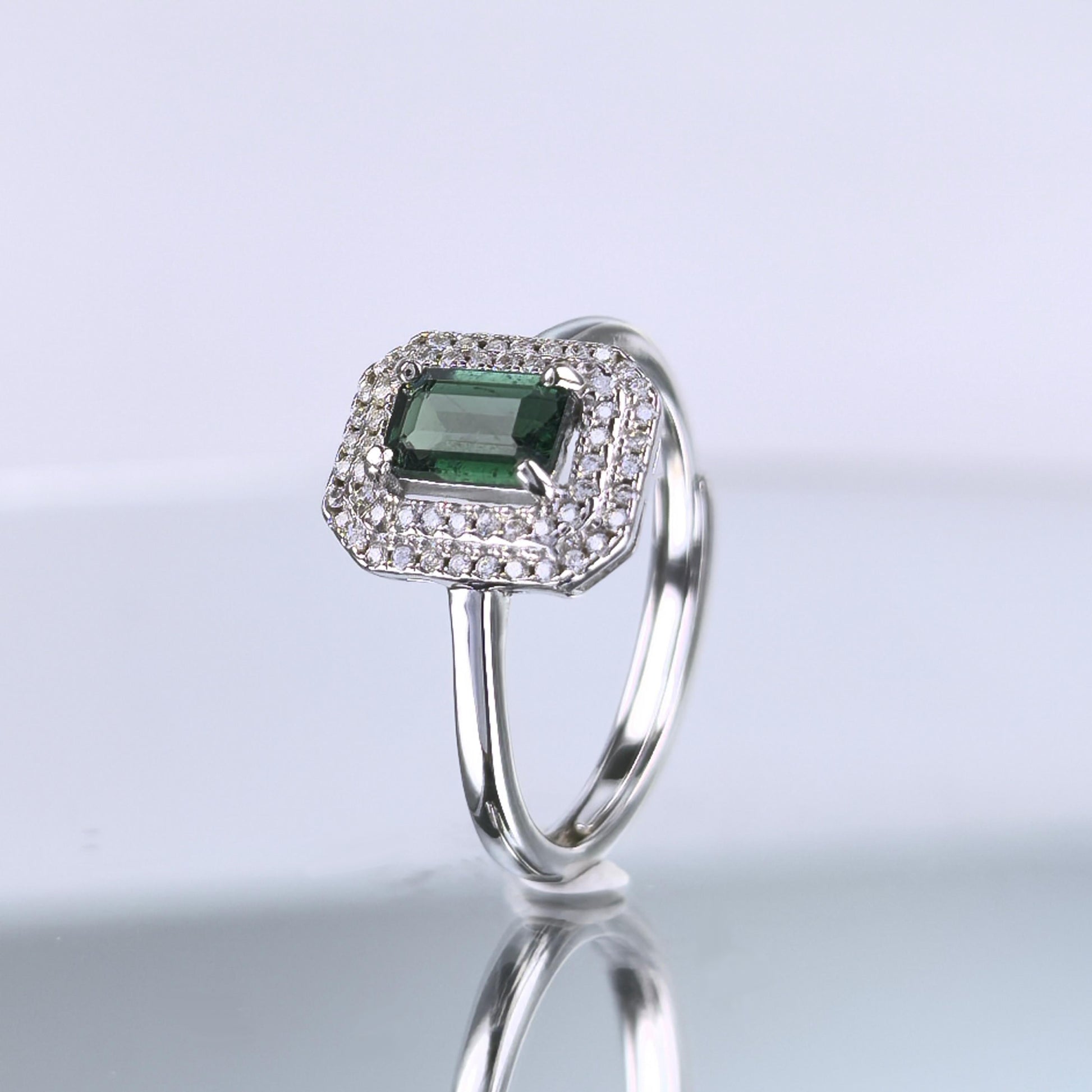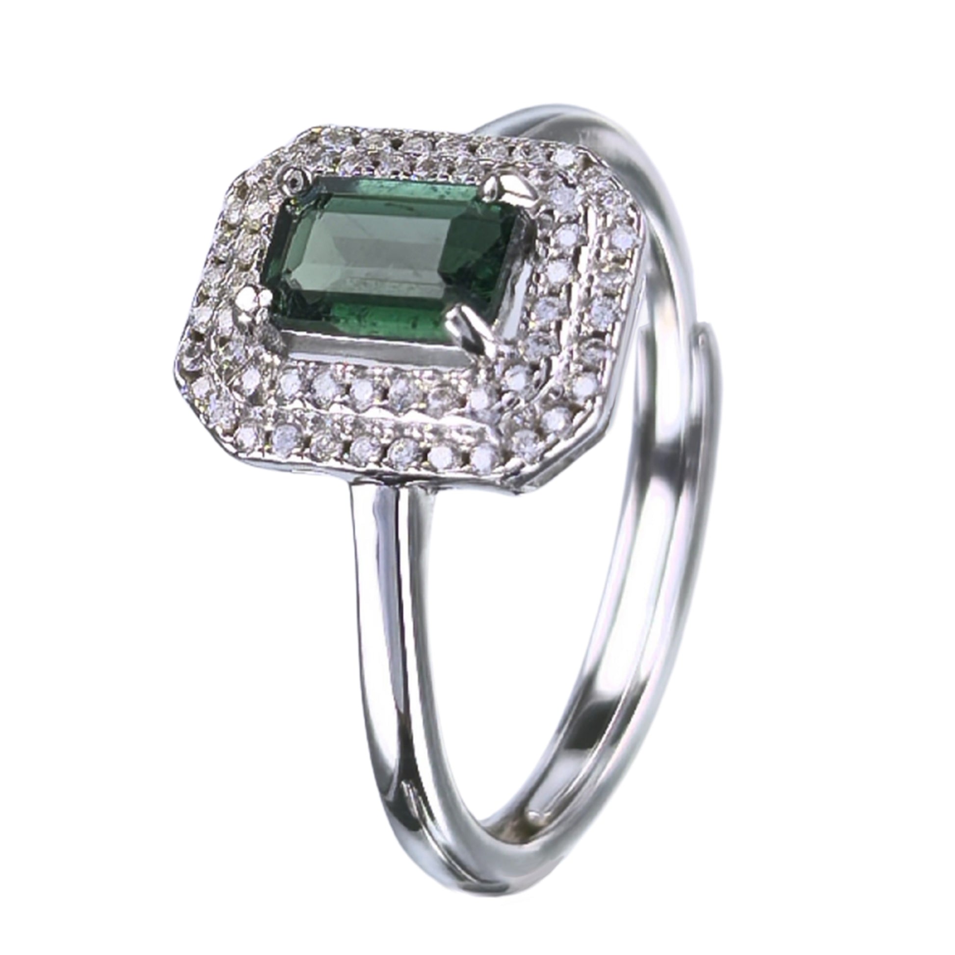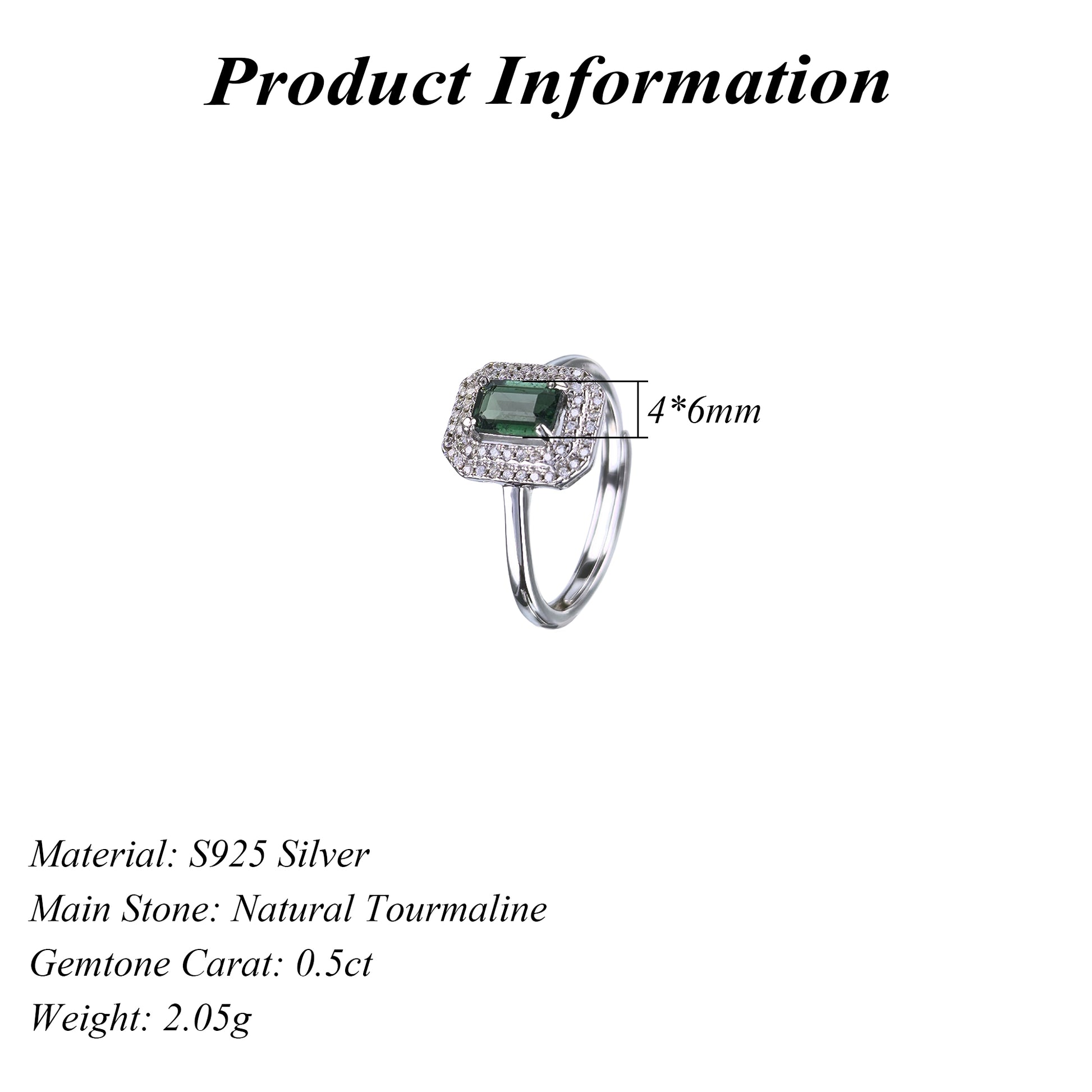 Exquisite 925 Silver Jewelry Ring Rhodium Plated with Natural Tourmaline