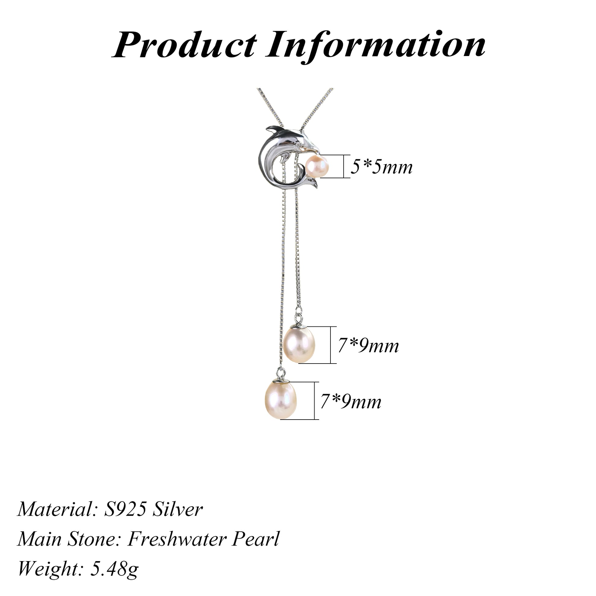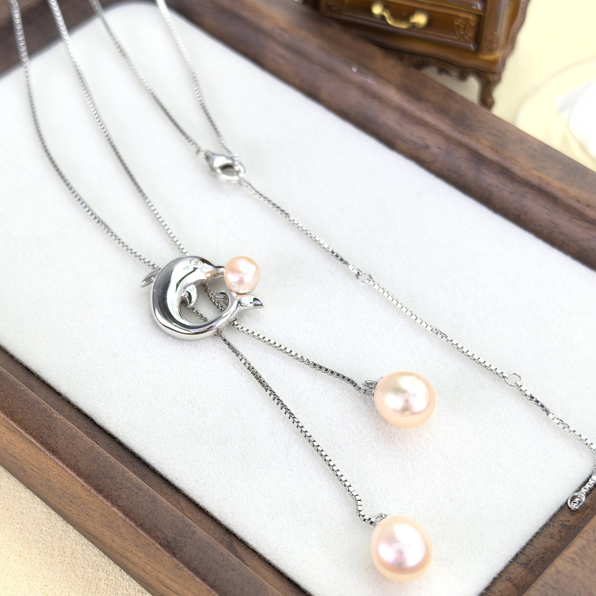 Exquisite Rhodium Plated 925 Silver Jewelry Freshwater Pearl Dolphin Necklace