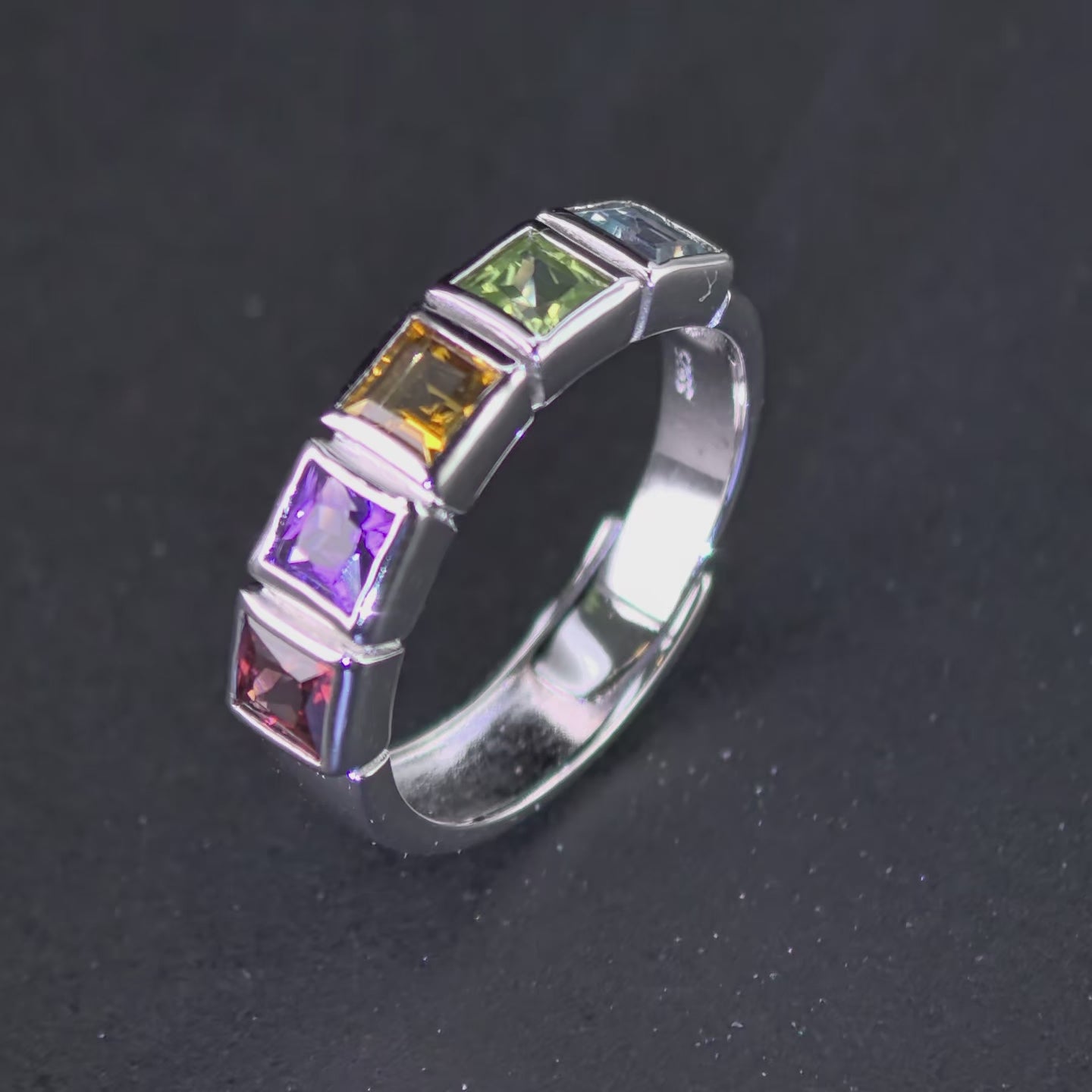 Exquisite Rhodium Plated 925 Silver Jewelry Multiple Natural Gemstone Ring