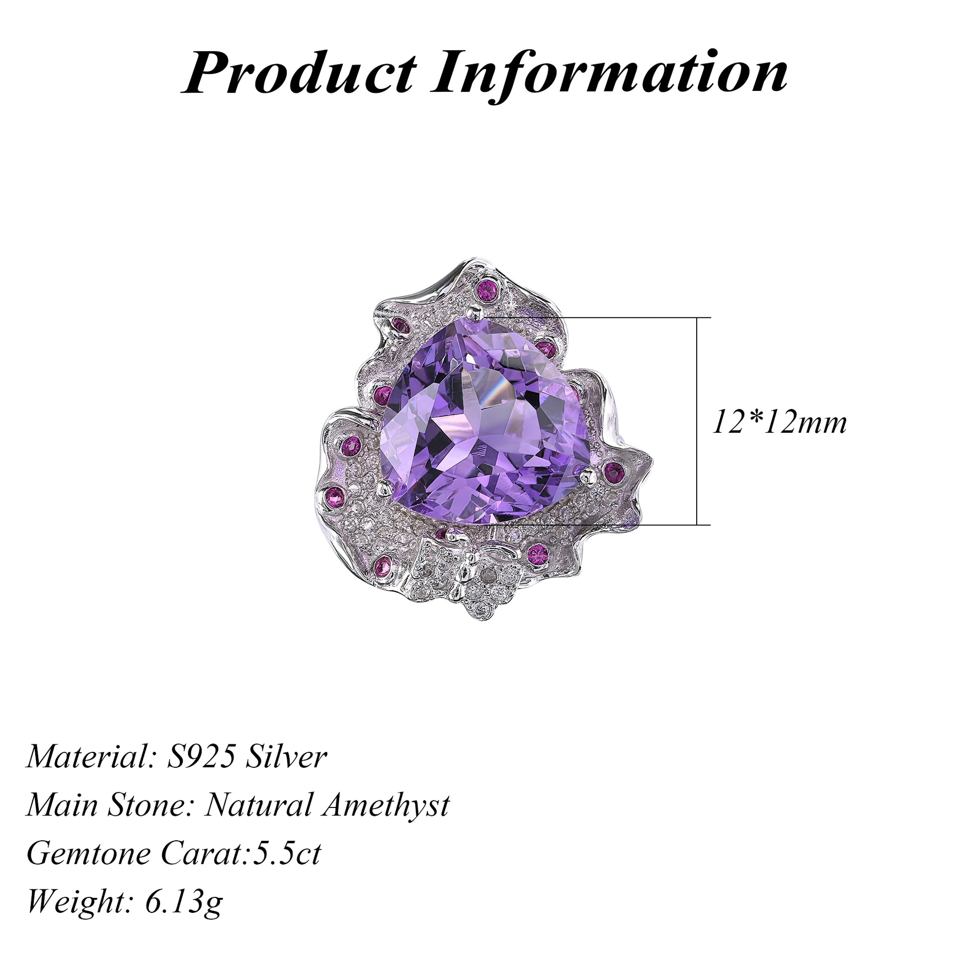 Exquisite Rhodium Plated 925 Silver Jewelry Natural Amethyst Flower Ring