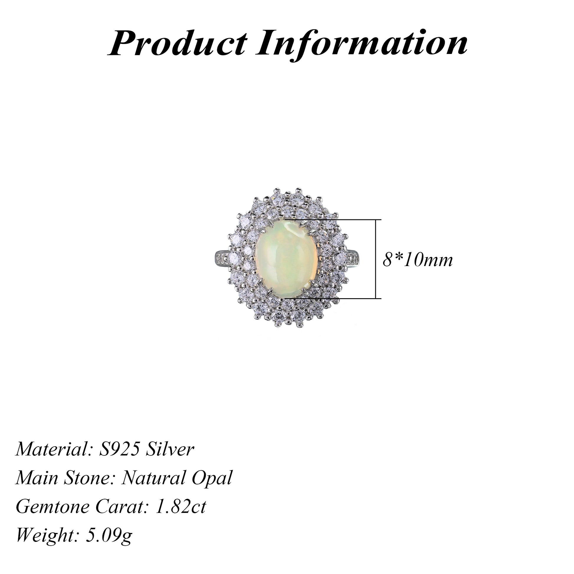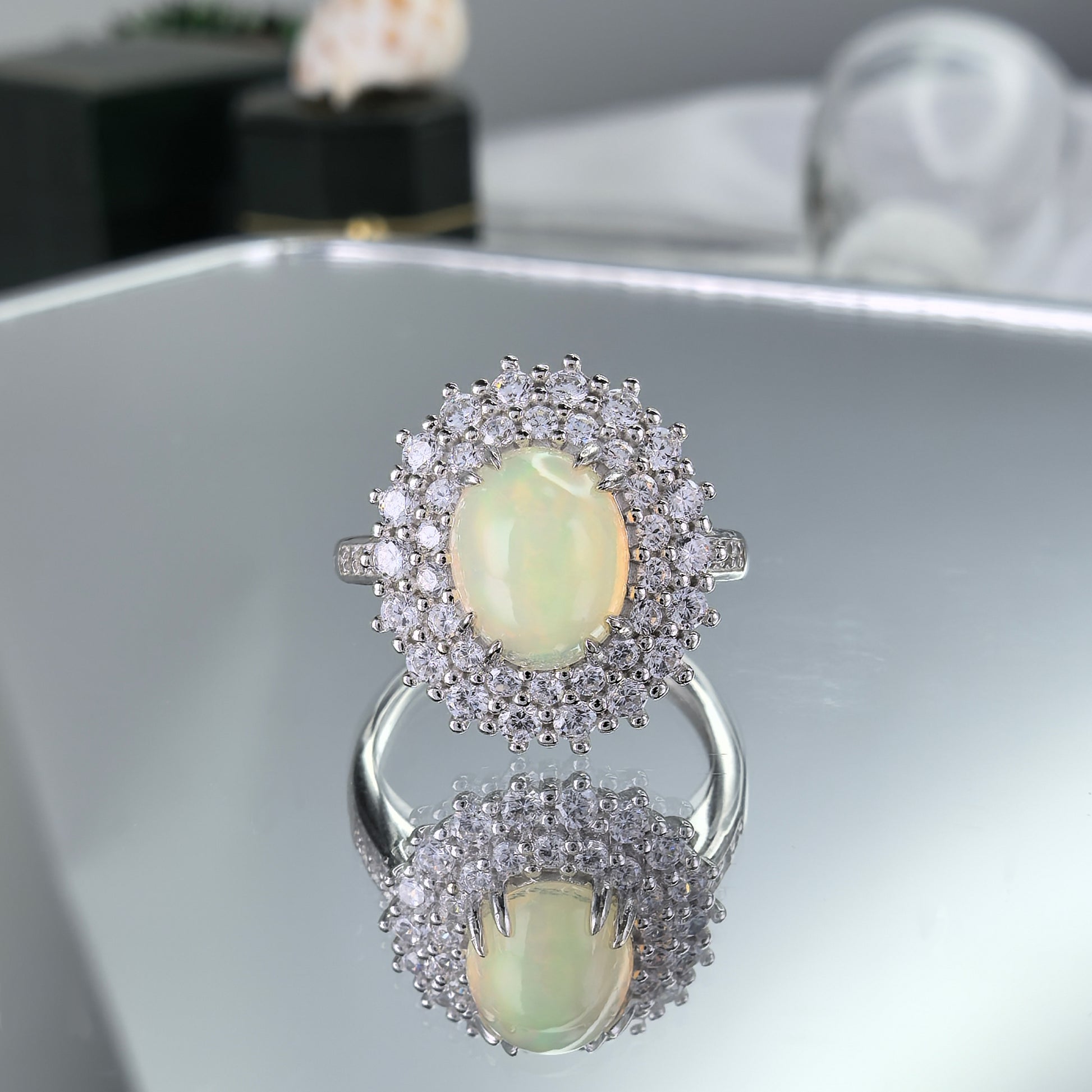 Exquisite Rhodium Plated Silver 925 Jewelry Natural Opal Ring