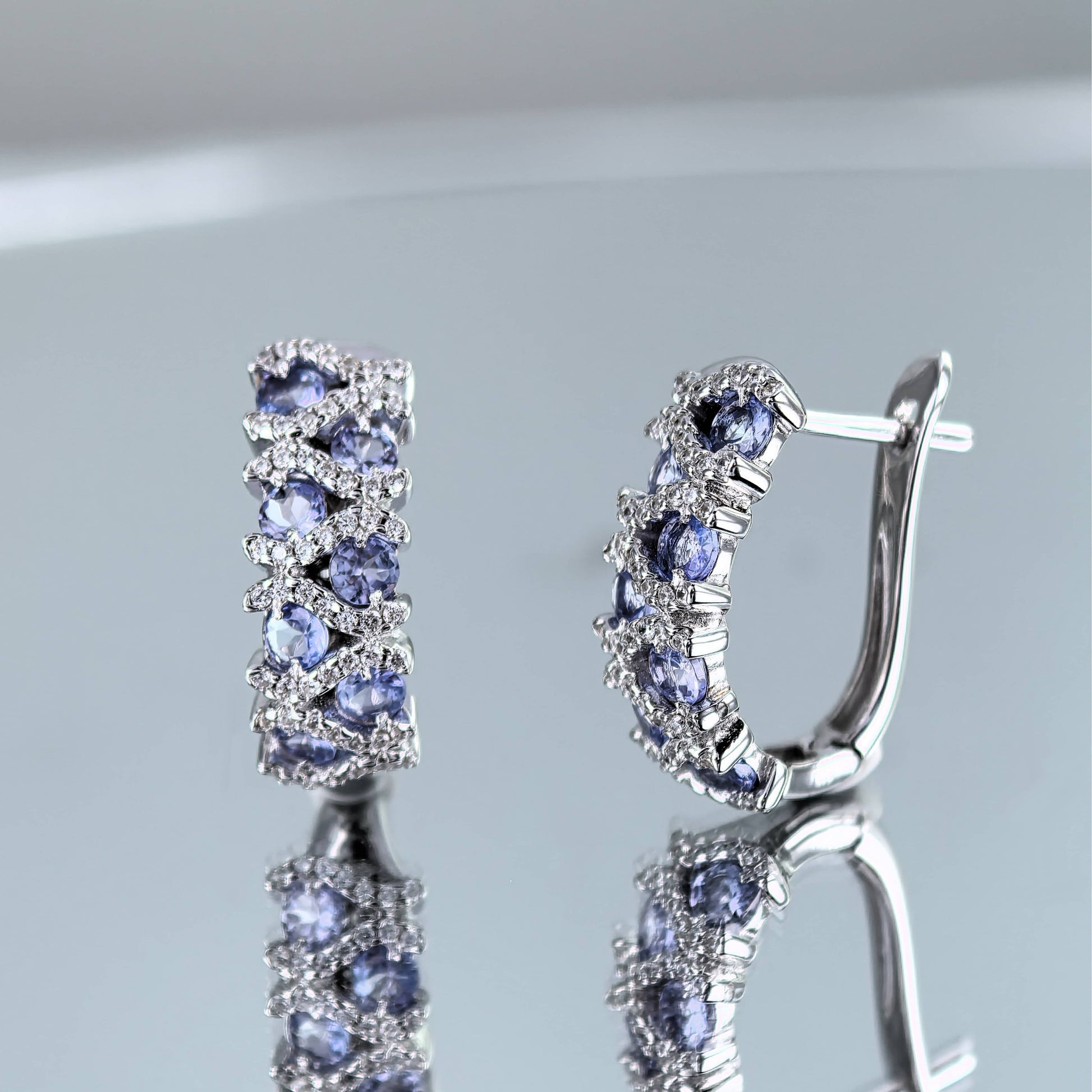 Exquisite Rhodium Plated Silver 925 Jewelry Natural Tanzanite Hoop Earrings