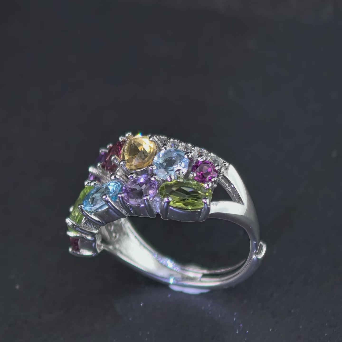 Gorgeous Rhodium Plated 925 Silver Jewelry Multiple Natural Gemstone Ring