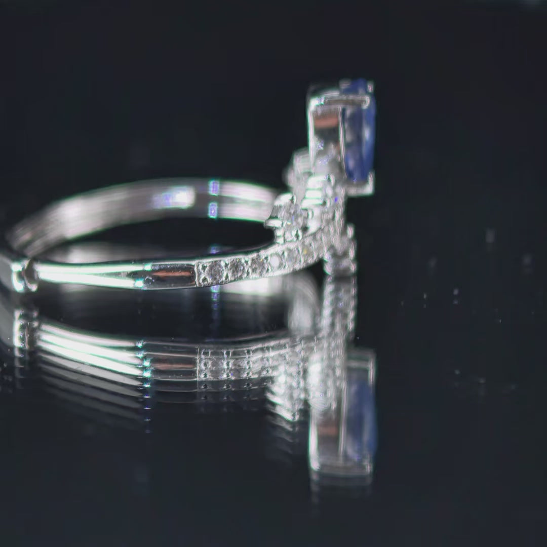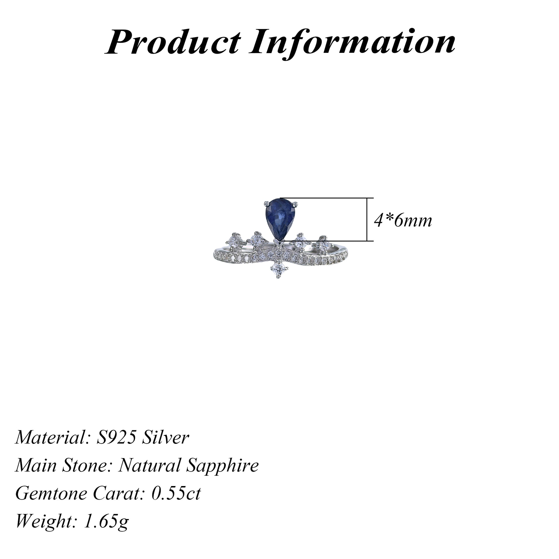 Gorgeous Rhodium Plated 925 Silver Jewelry Natural Sapphire Crown Ring