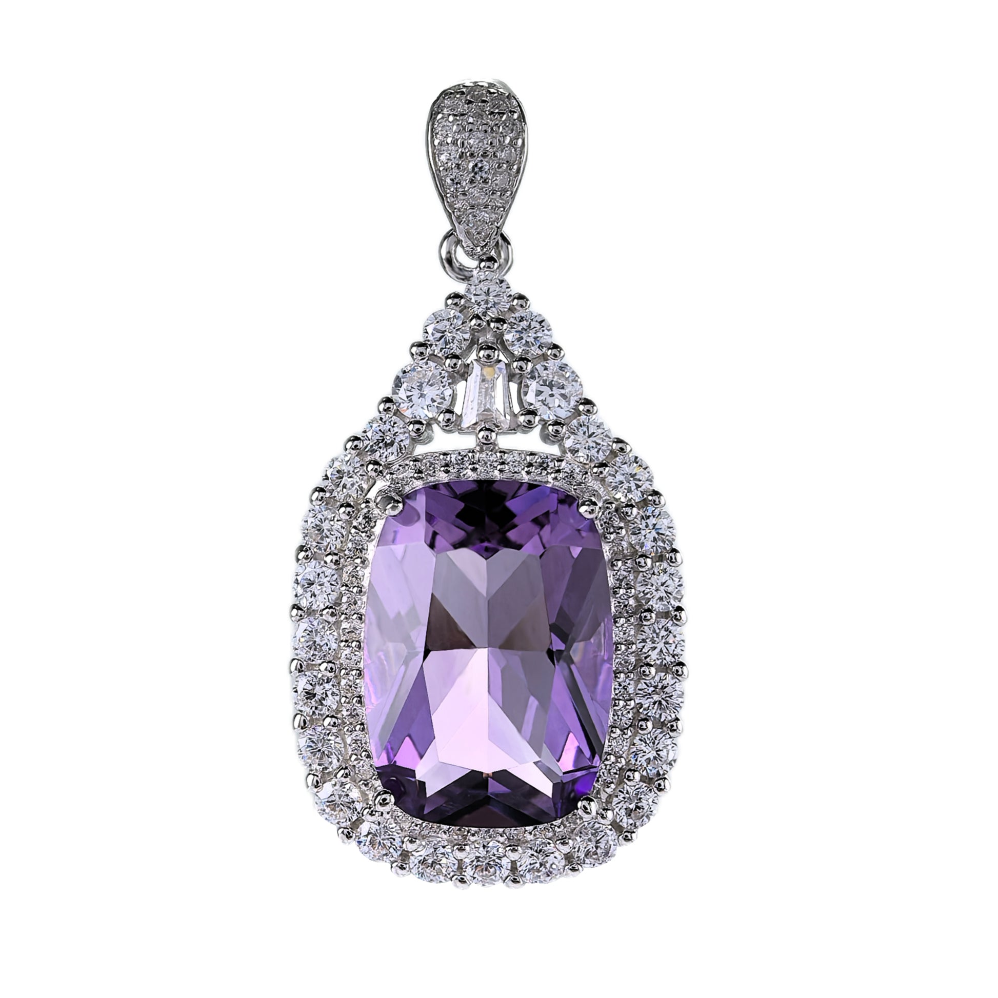 Gorgeous Rhodium Plated 925 Sterling Silver Natural Amethyst Pendant
