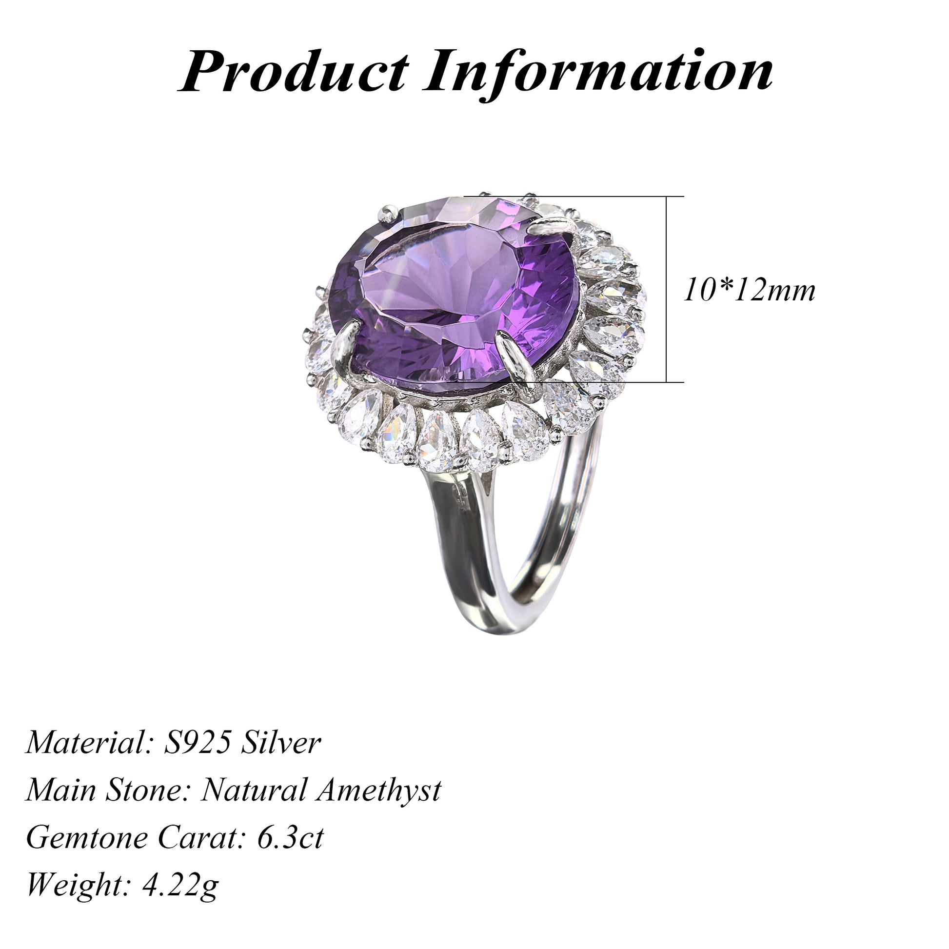 Gorgeous Rhodium Plated 925 Sterling Silver Natural Amethyst Ring