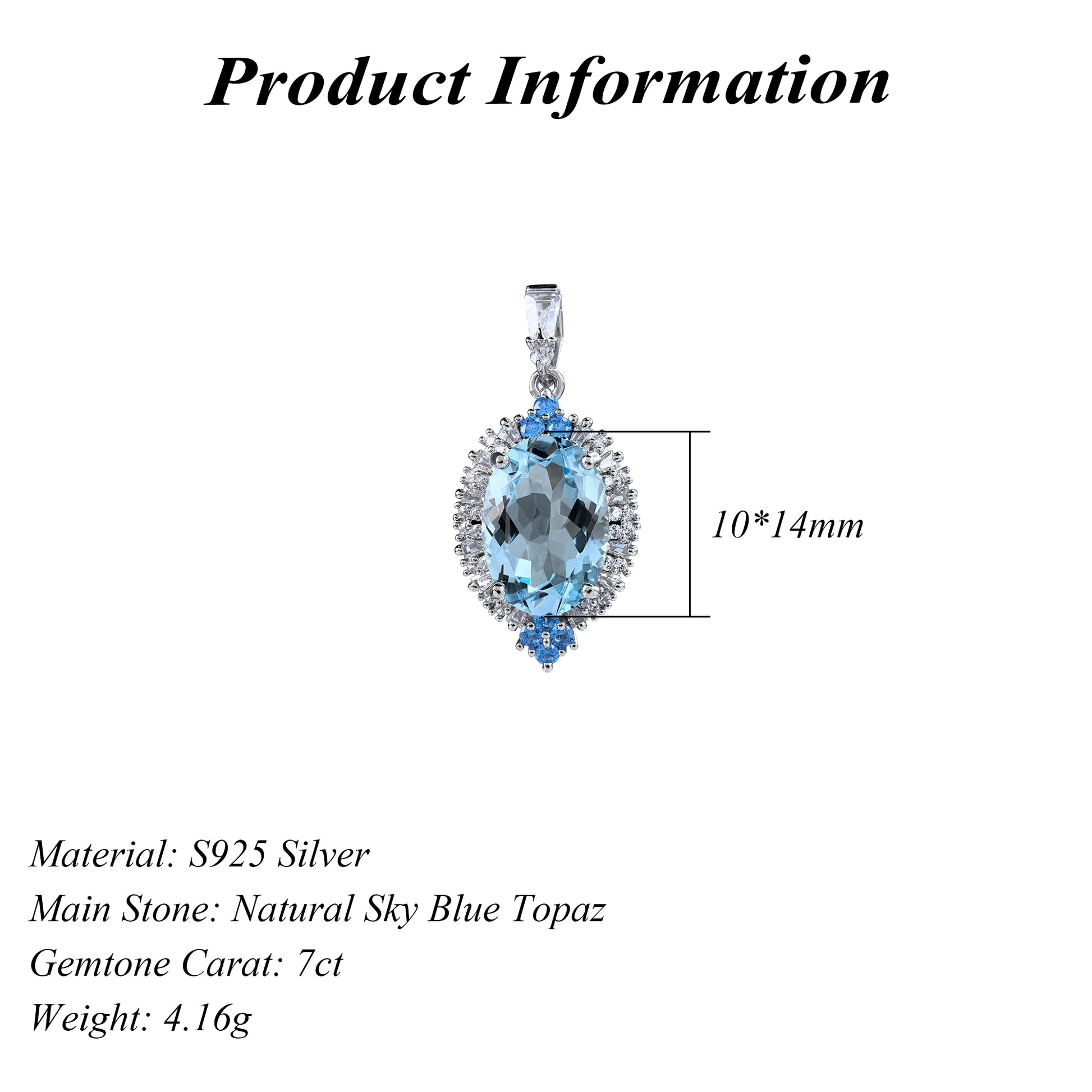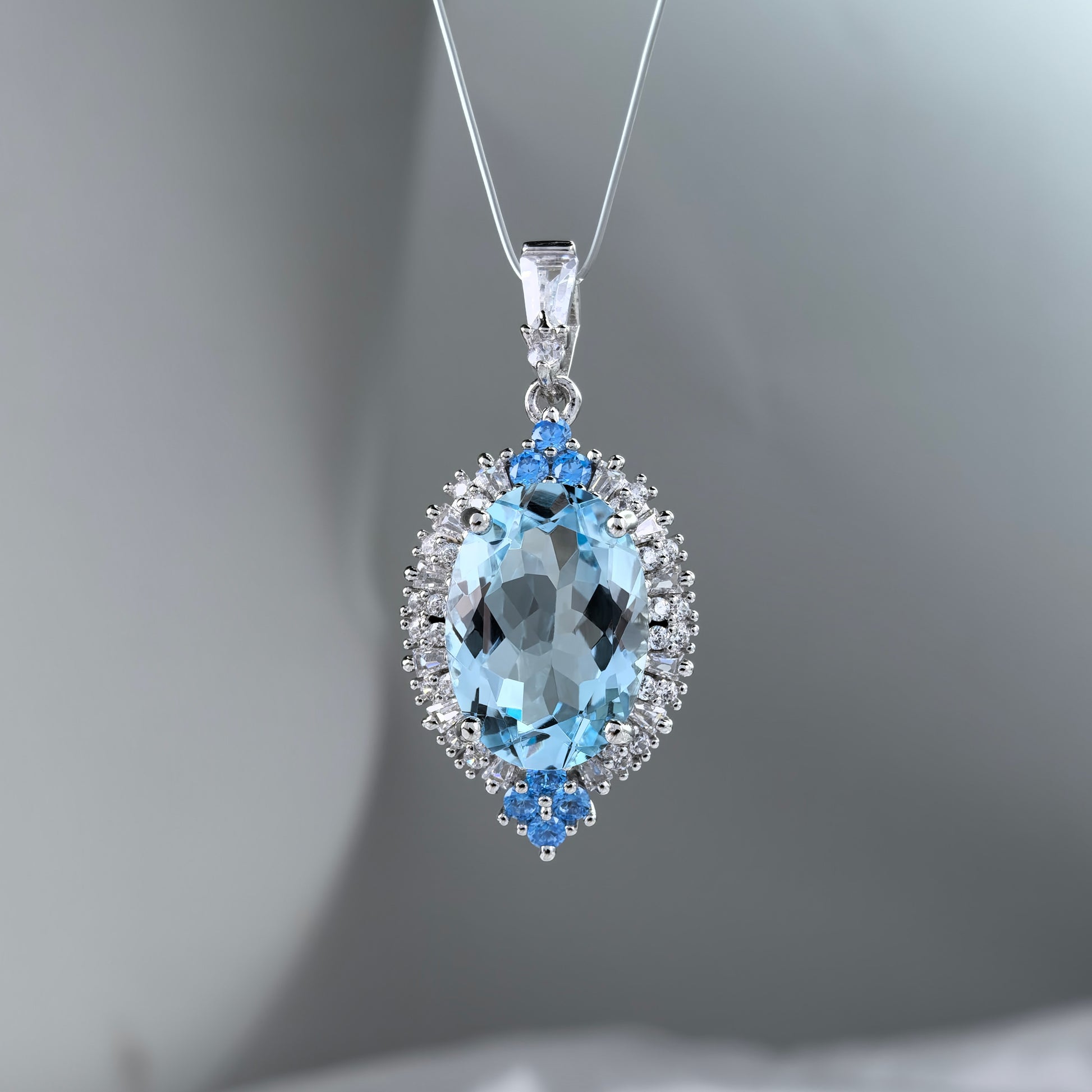 Gorgeous Rhodium Plated 925 Sterling Silver Natural Sky Blue Topaz Pendant