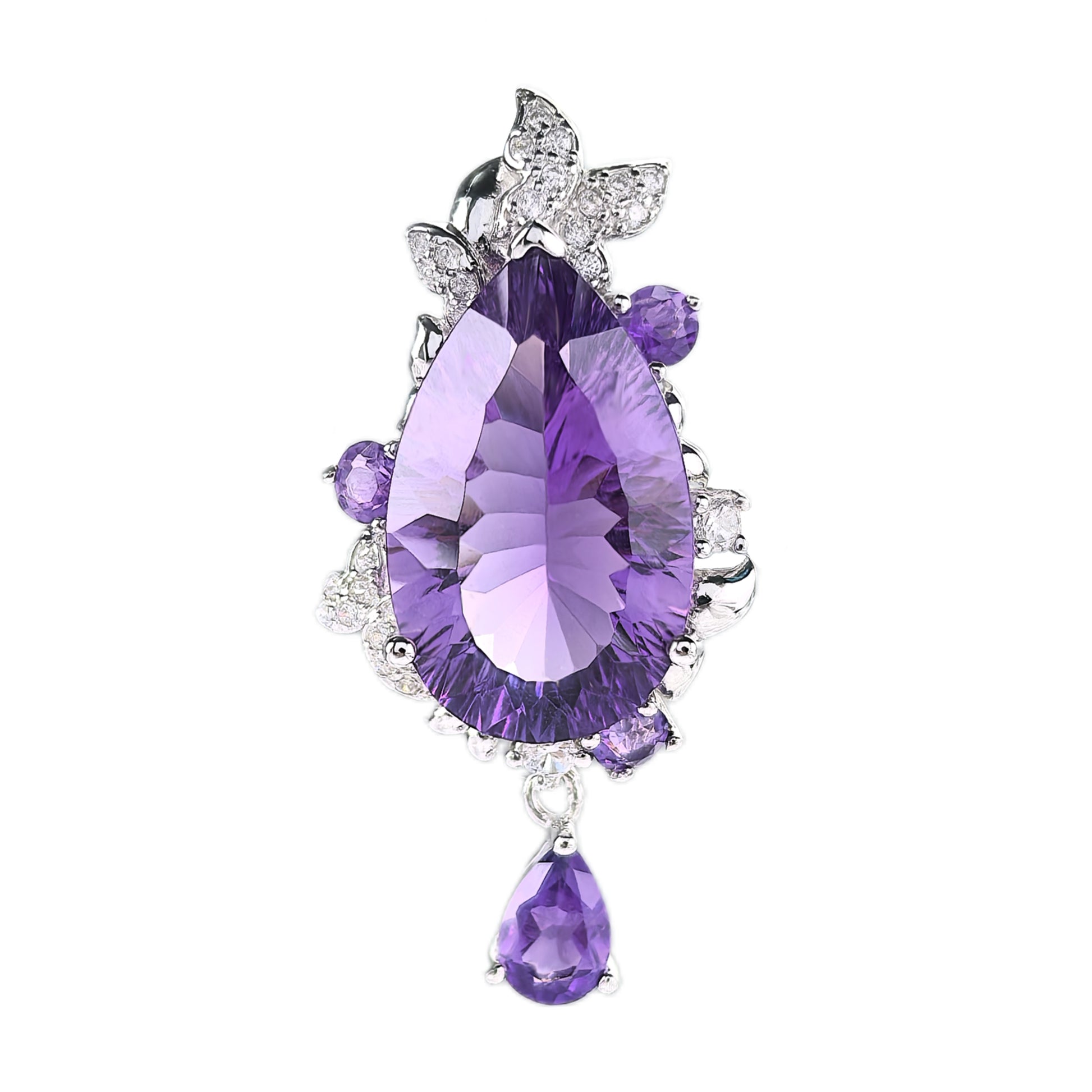Gorgeous Rhodium Plated Sterling Silver 925 Natural Amethyst Pendant