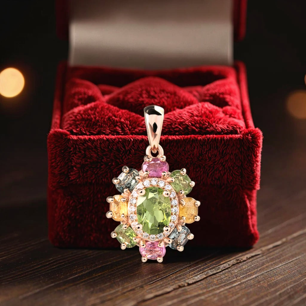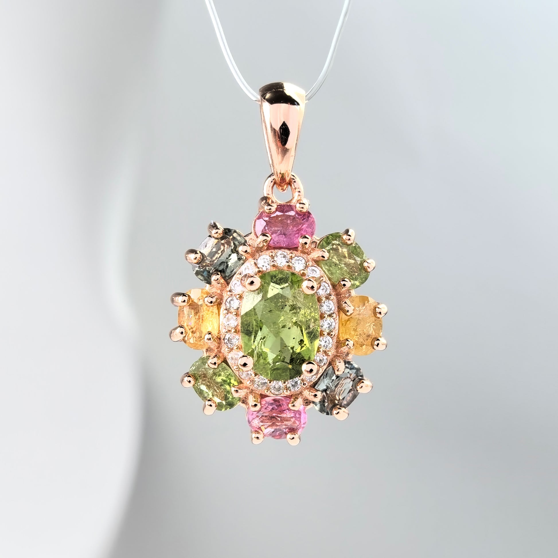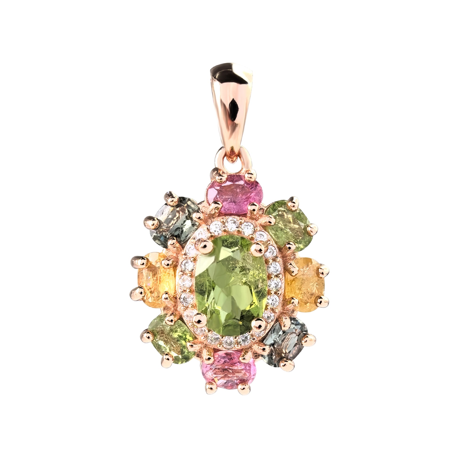 Gorgeous Rose Gold Plated 925 Sterling Silver Natural Tourmaline Flower Pendant