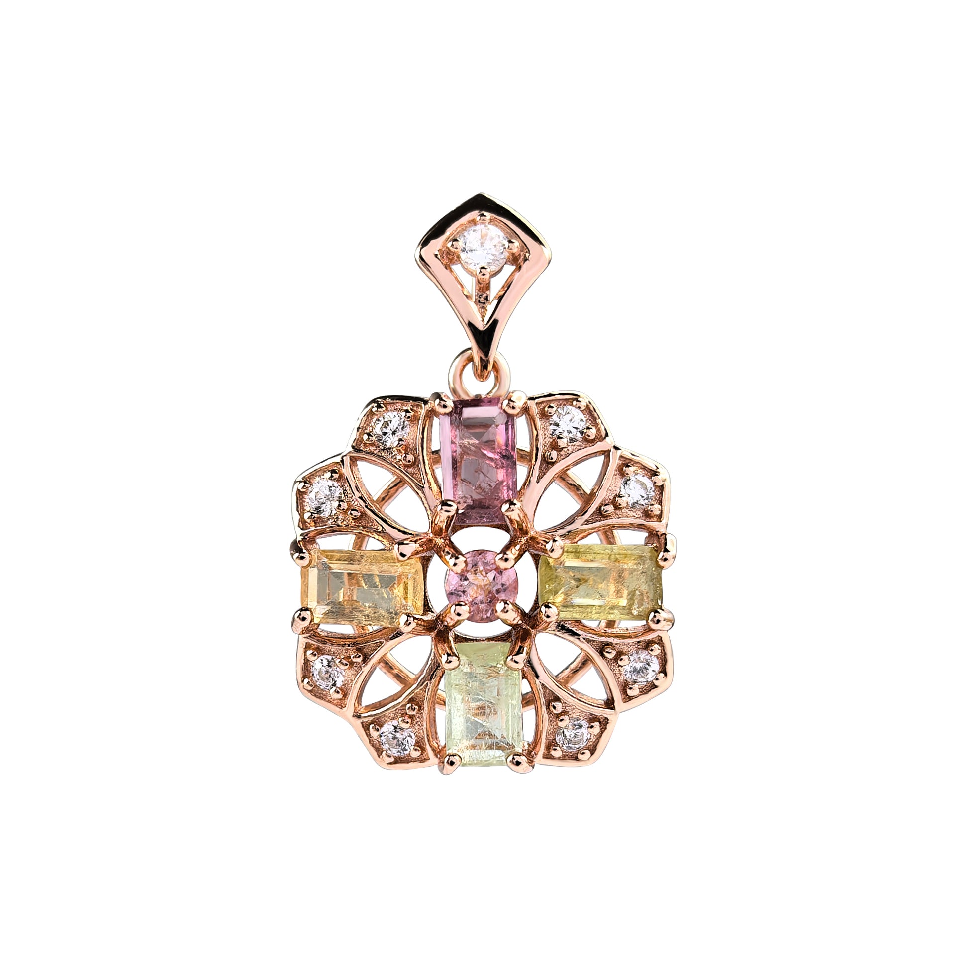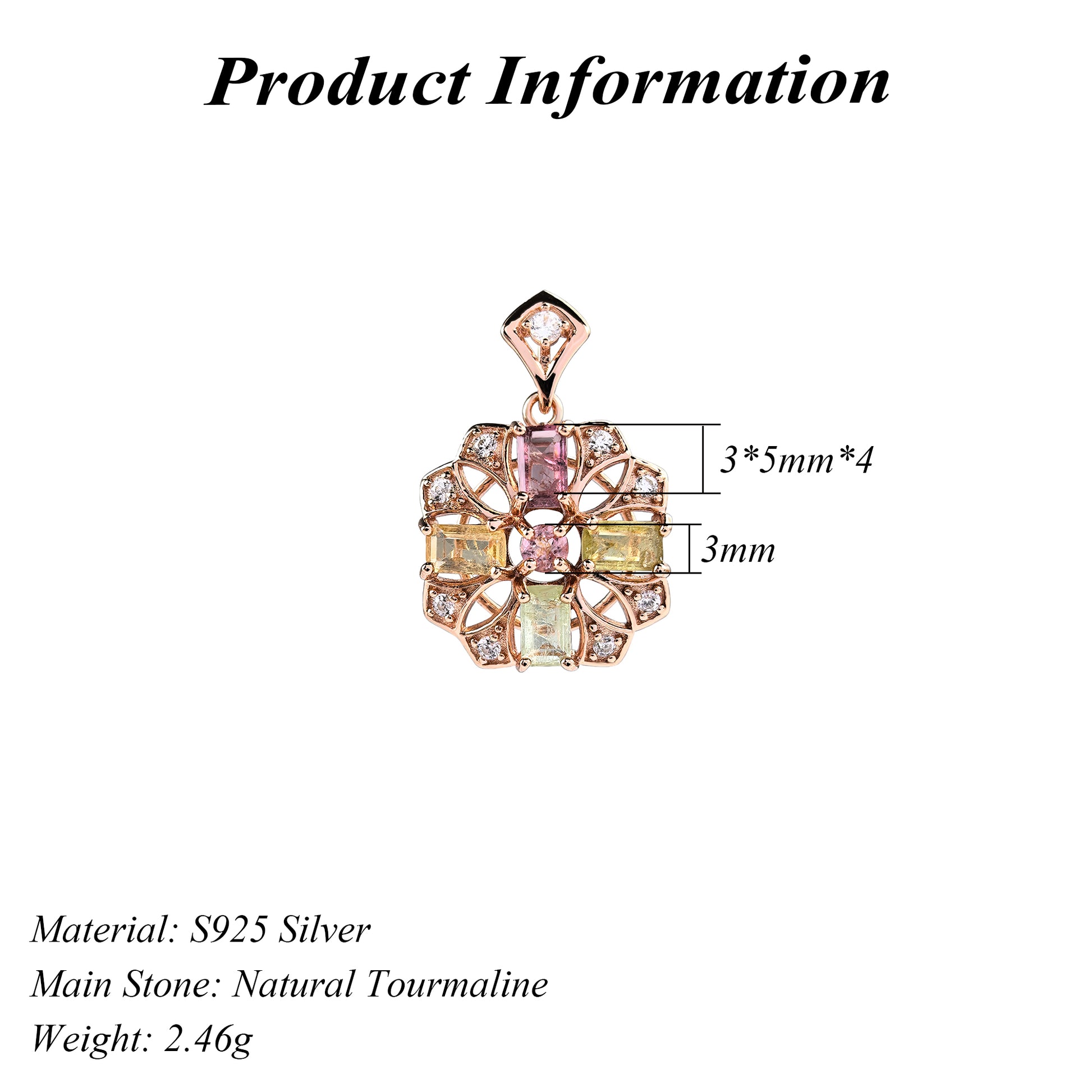 Gorgeous Rose Gold Plated Silver 925 Jewelry Natural Tourmaline Pendant