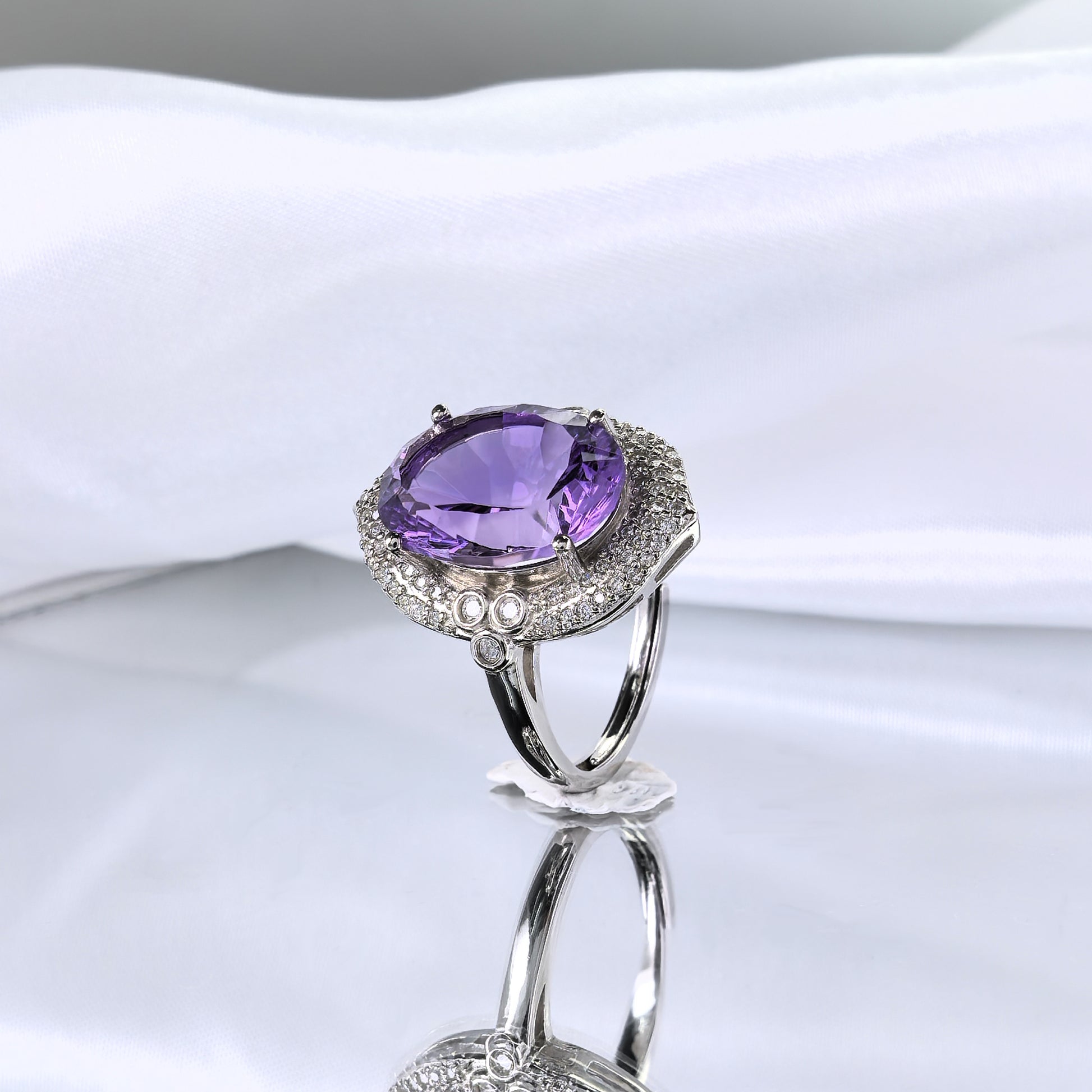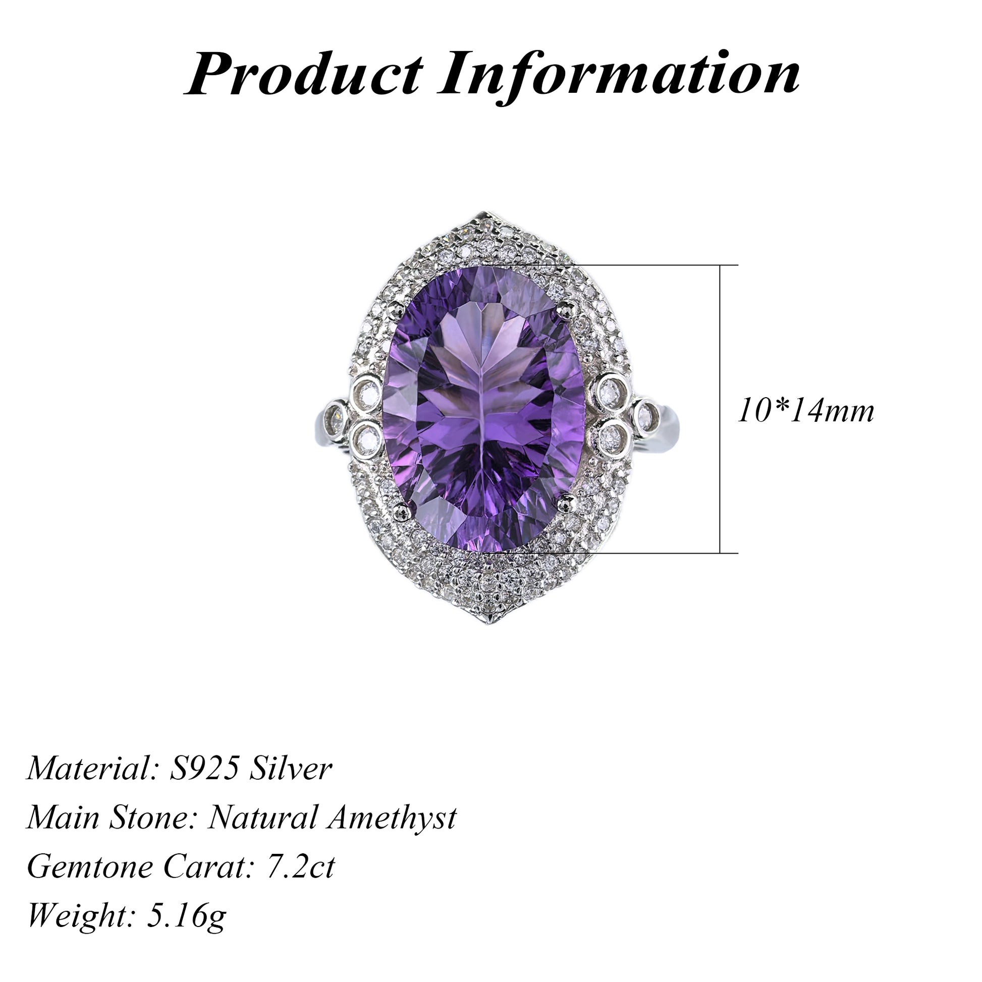 Gorgeous Vintage Style Silver 925 Rhodium-Plated Oval Cut Natural Amethyst Ring
