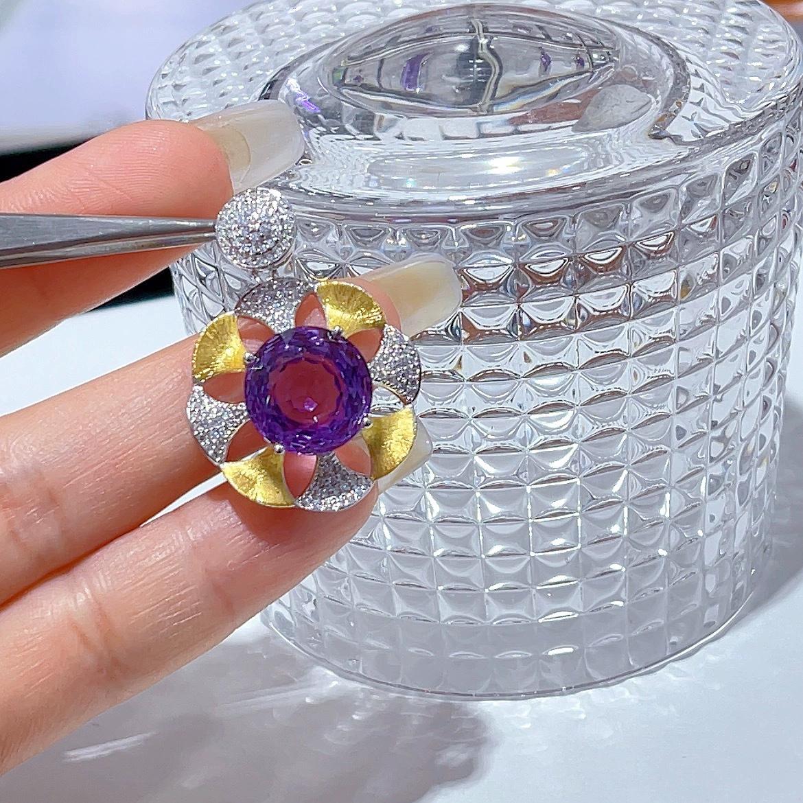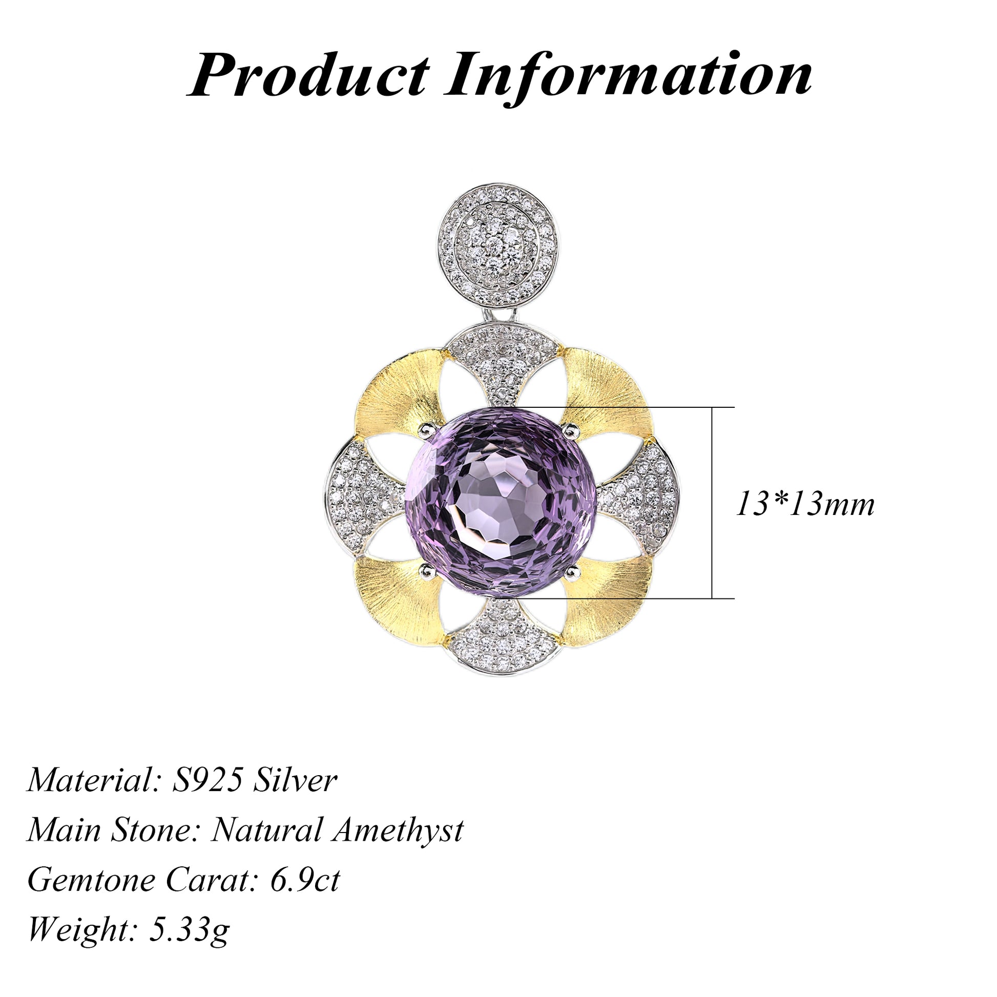 Graceful Dual Color Plated 925 Silver Jewelry Natural Amethyst Flower Pendant