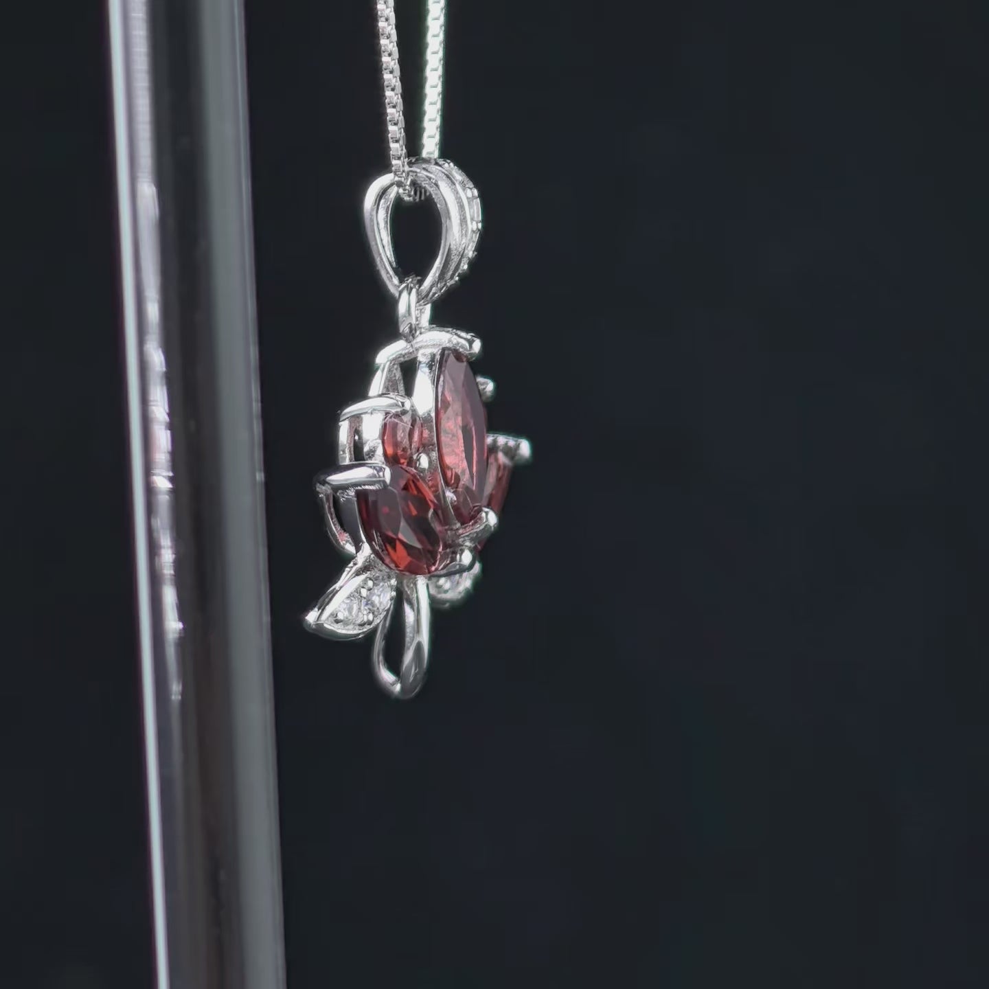 Graceful Rhodium Plated 925 Silver Jewelry Natural Garnet Maple Leaf Pendant
