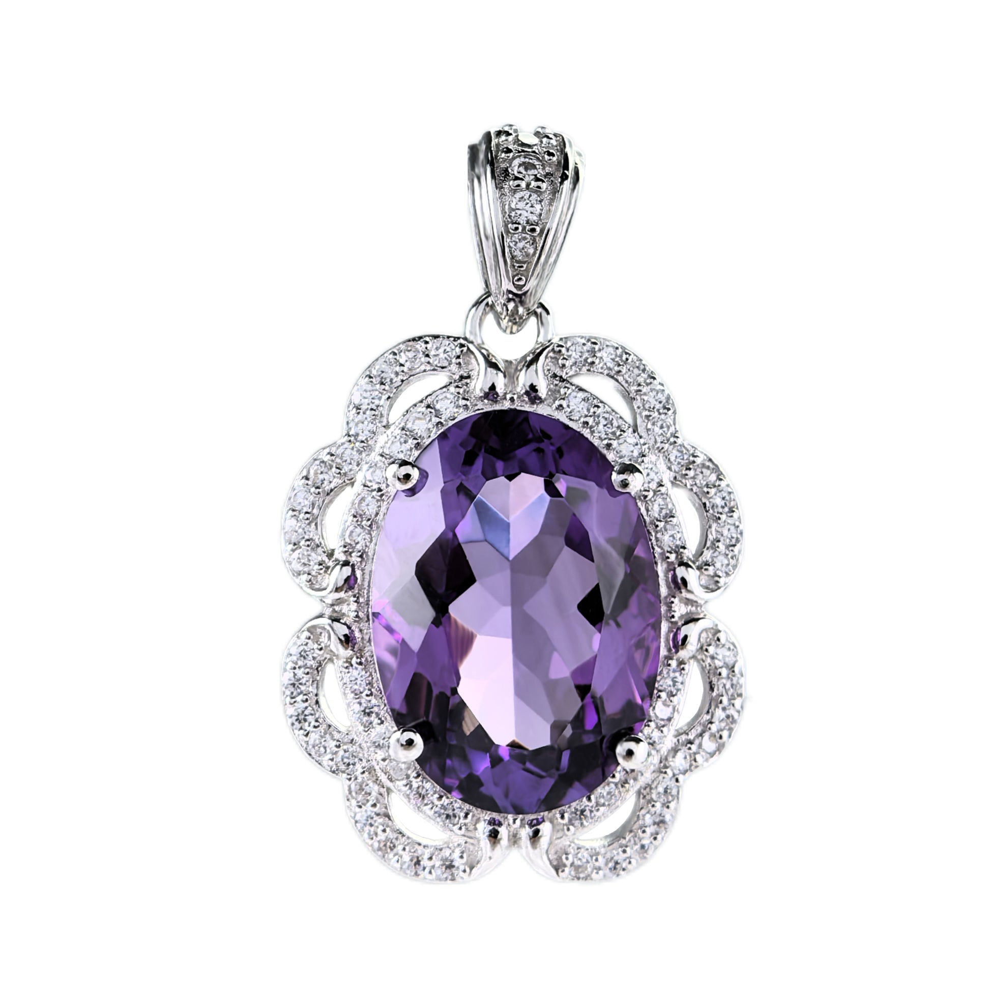 Graceful Rhodium Plated 925 Silver Natural Amethyst Pendant
