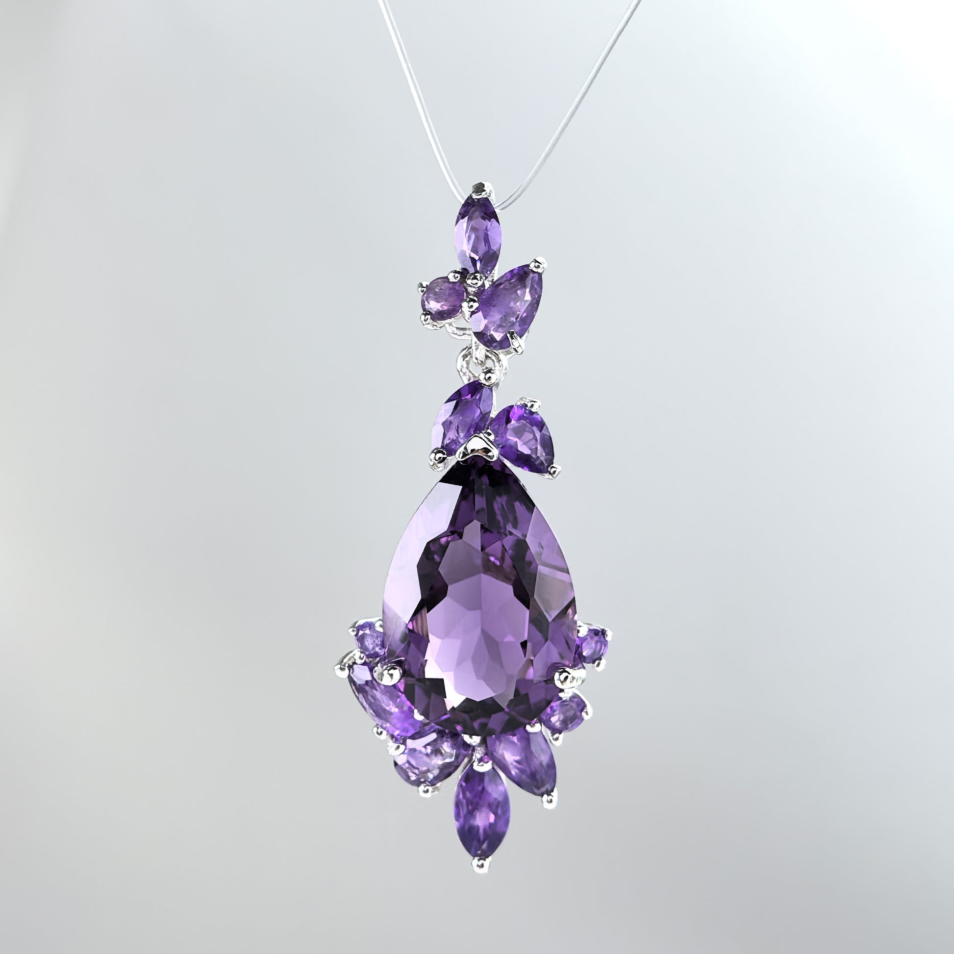 Graceful Rhodium Plated 925 Sterling Silver Natural Amethyst Pendant