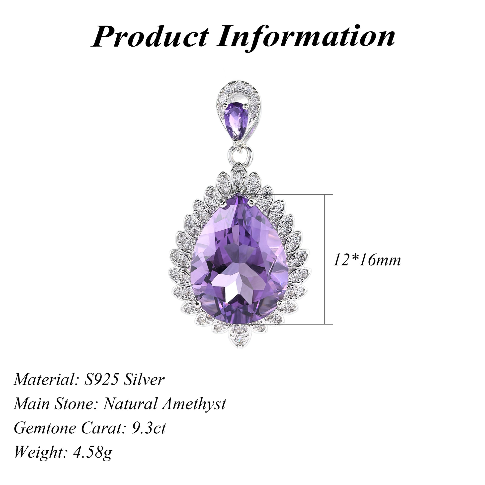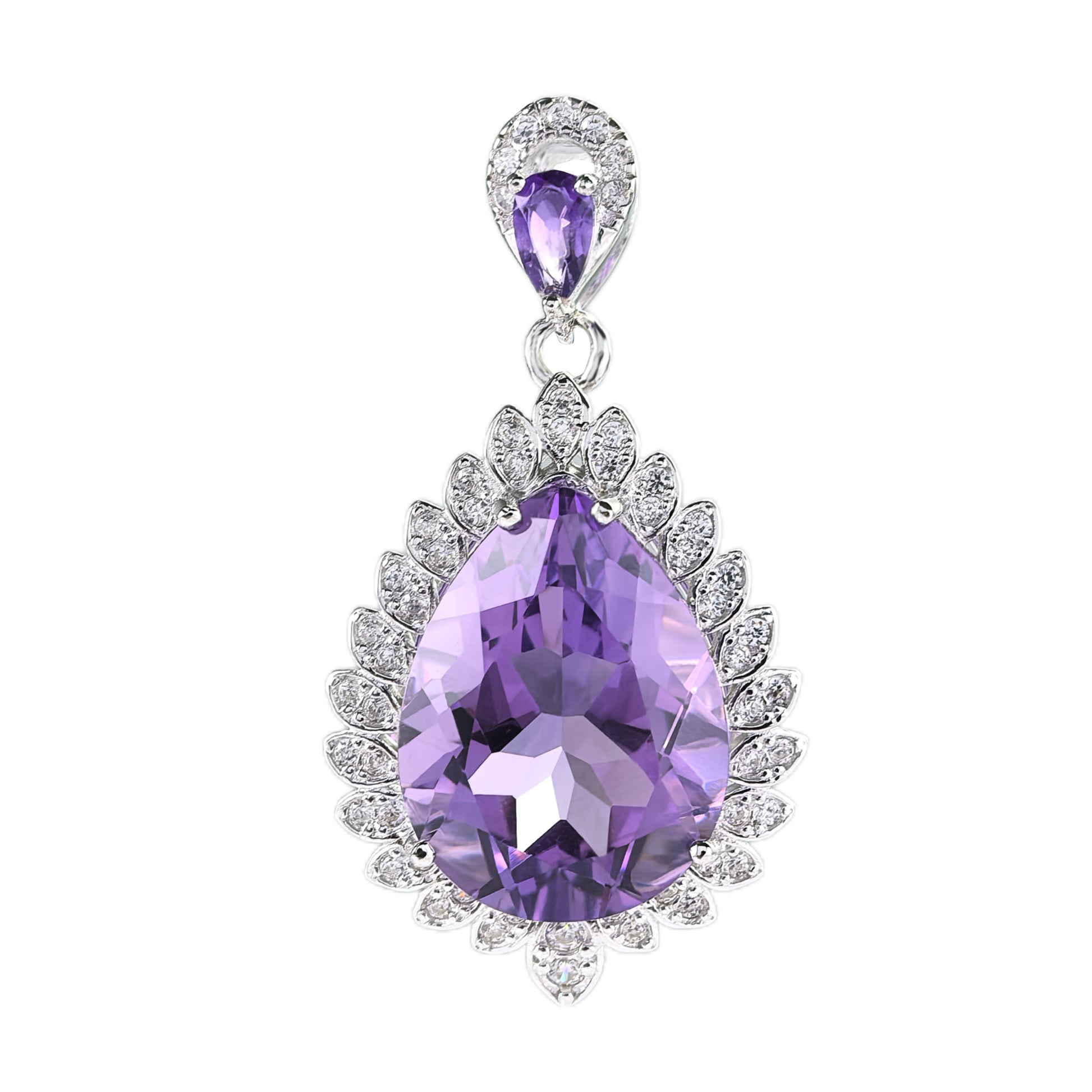 Graceful Rhodium Plated 925 Sterling Silver Natural Amethyst Pendant