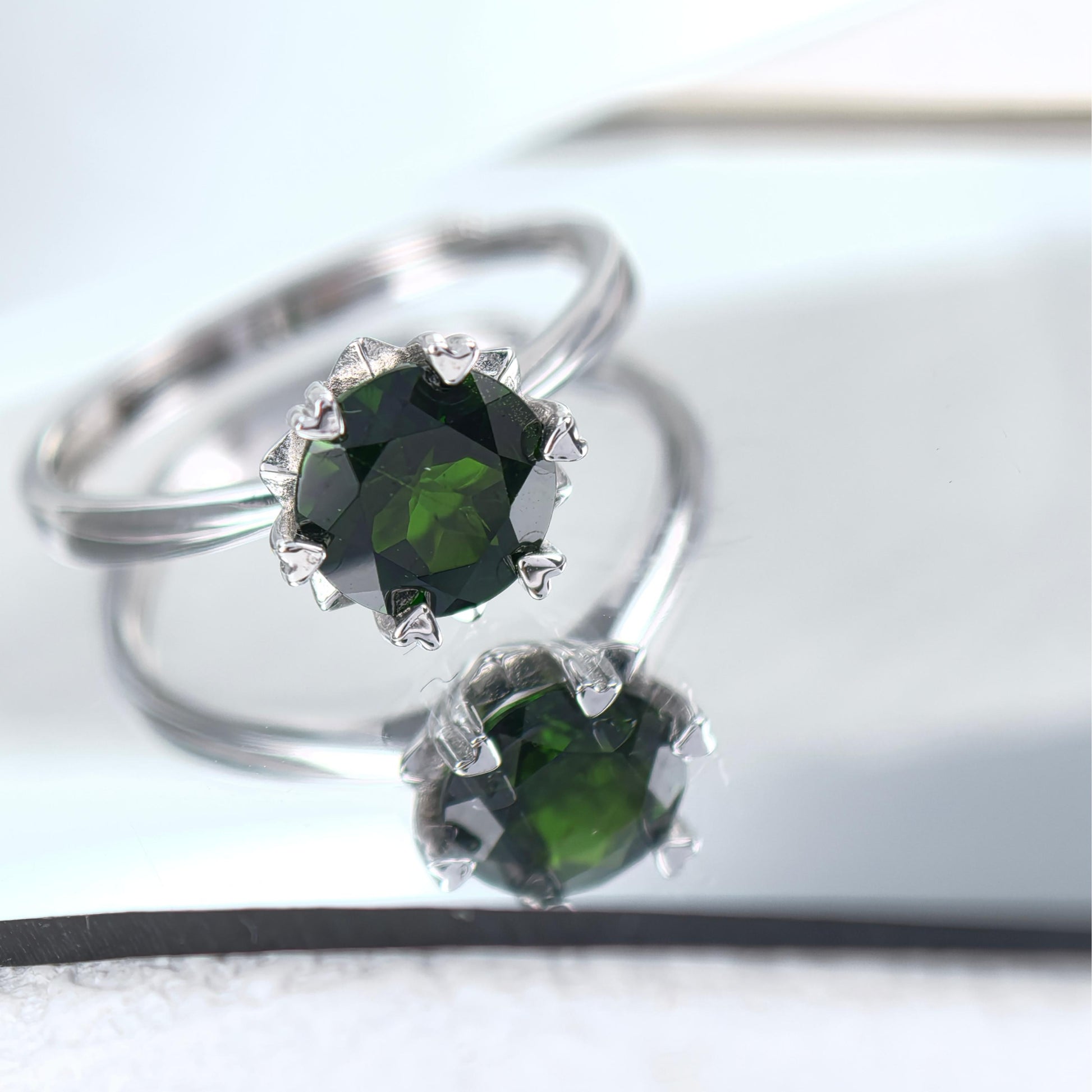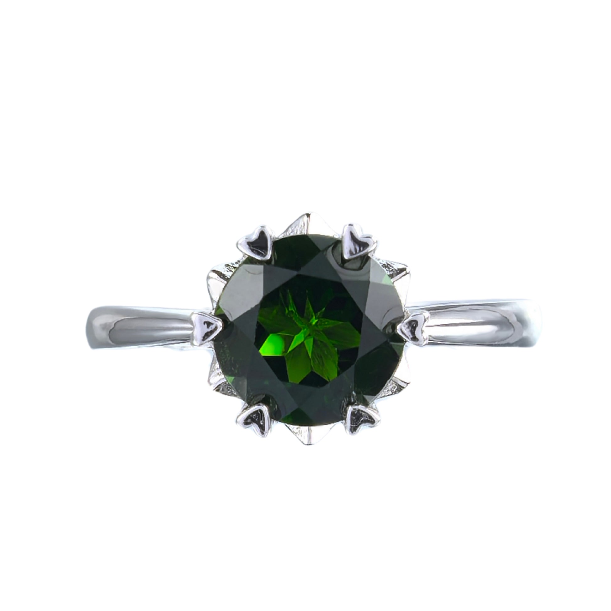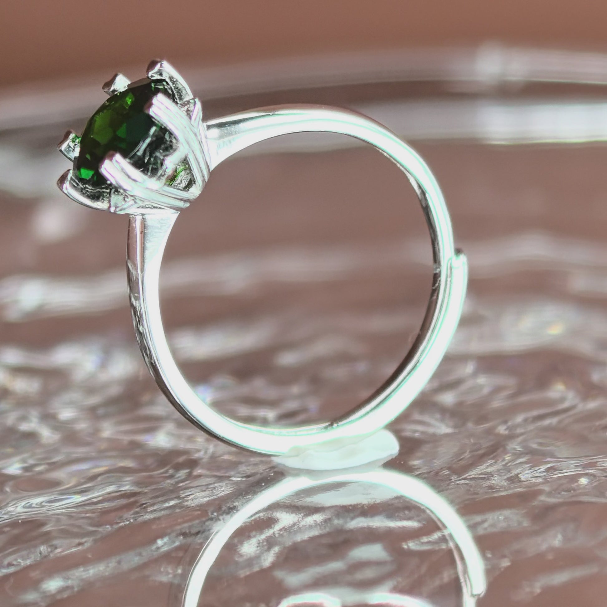 Graceful Rhodium Plated 925 Sterling Silver Natural Diopside Ring