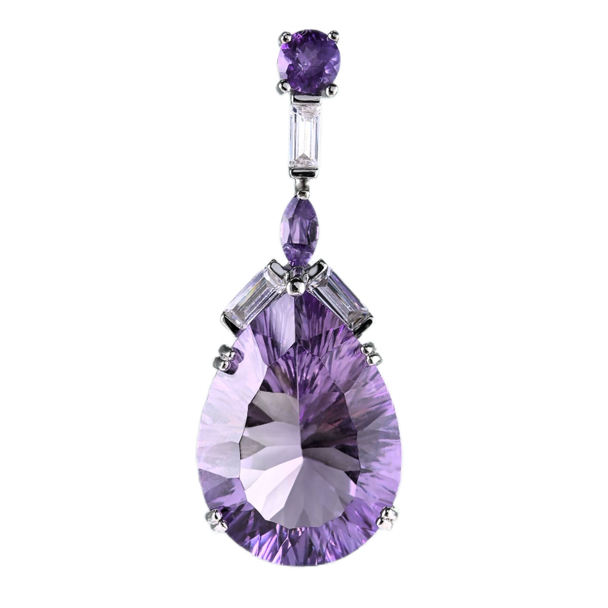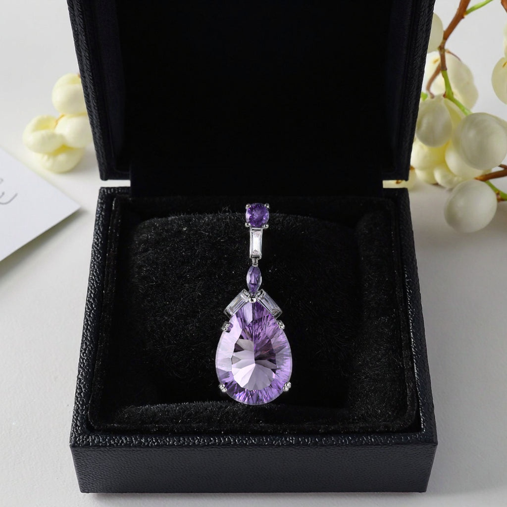 Graceful Rhodium Plated Plata 925 Pear Cut Natural Amethyst Pendant