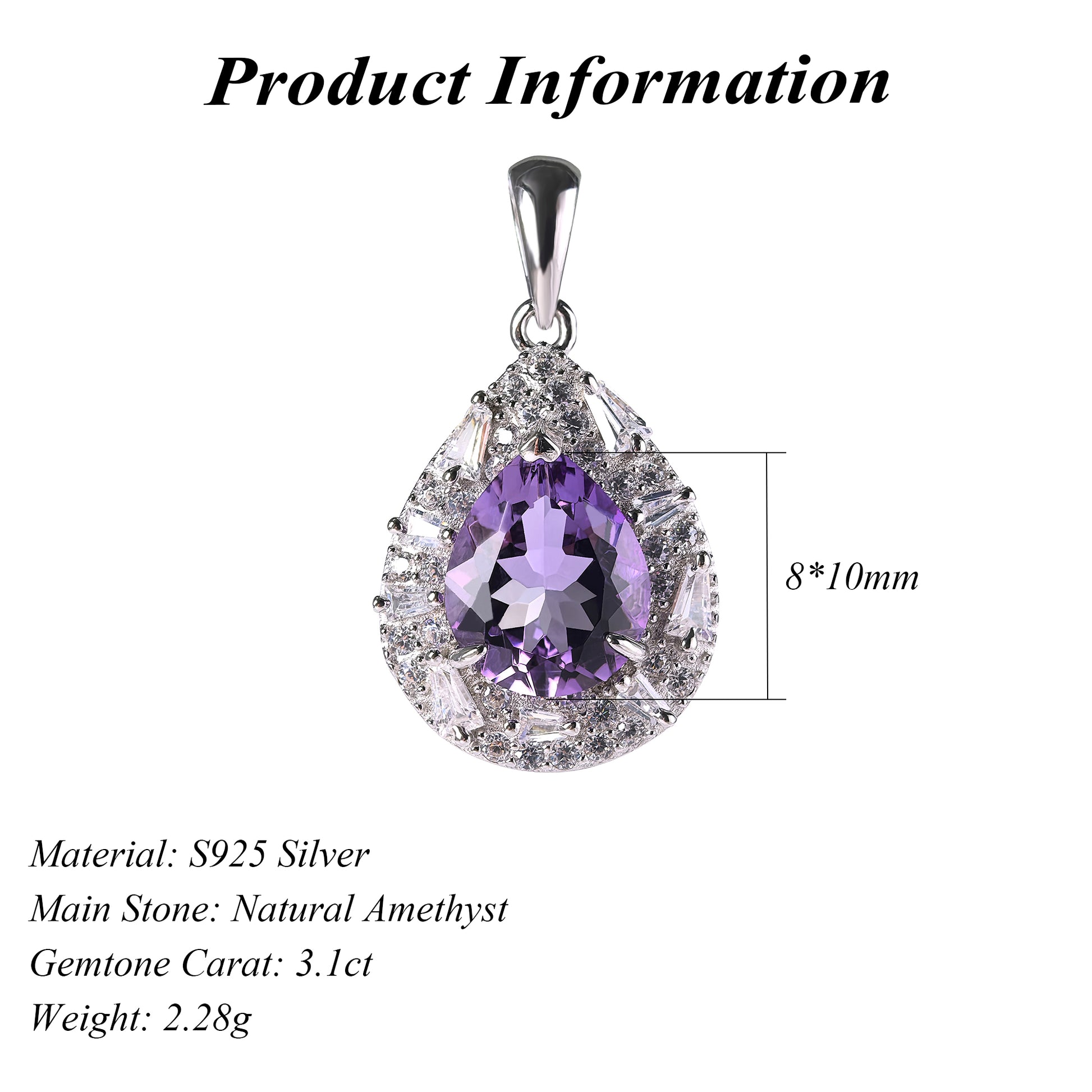 Graceful Rhodium Plated Silber 925 Schmuck Natural Amethyst Stone Pendant
