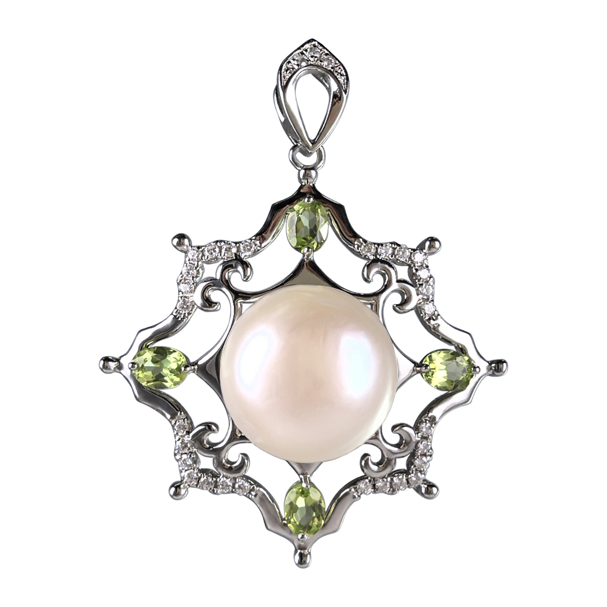 Graceful Rhodium Plated Silver 925 Jewelry Freshwater Pearl Pendant