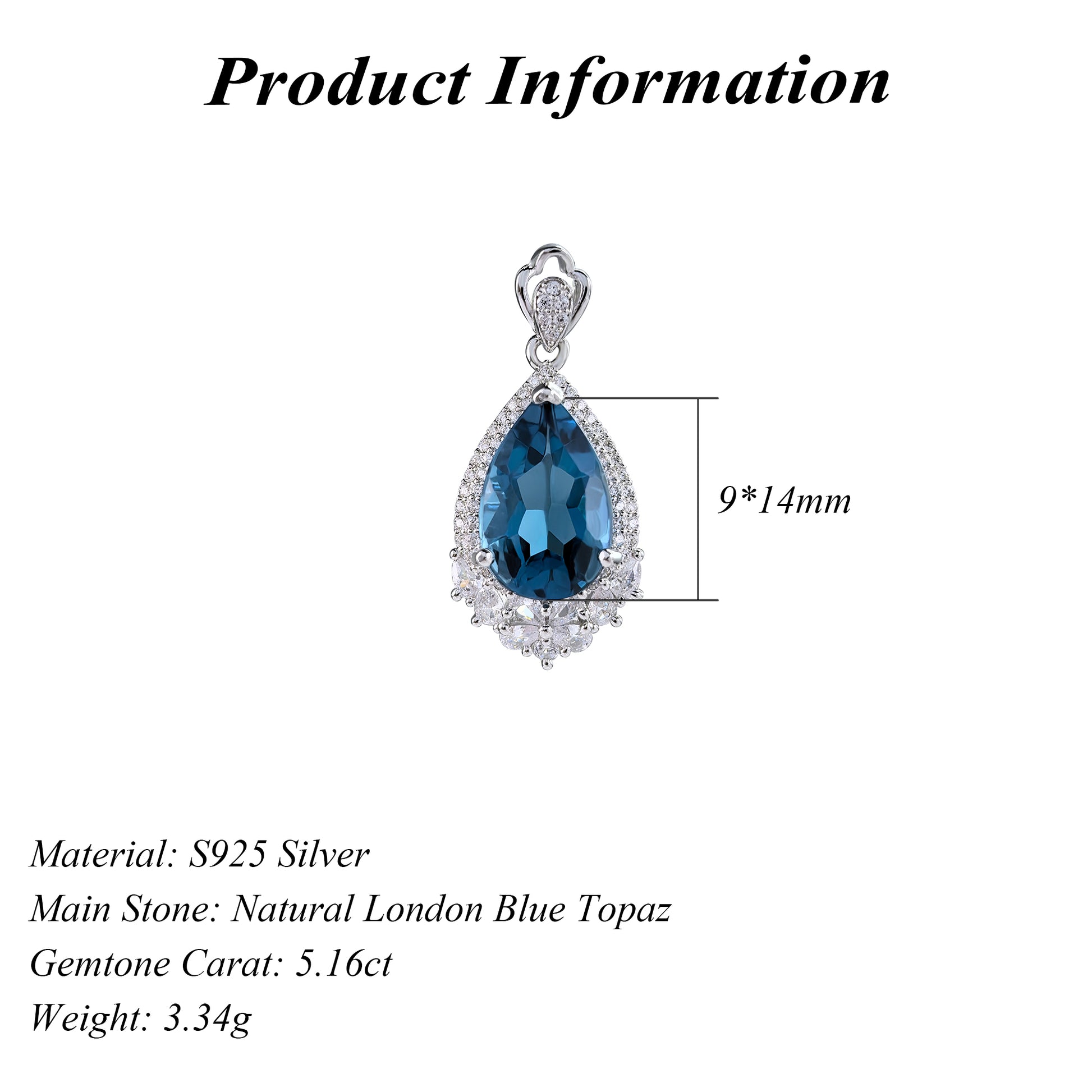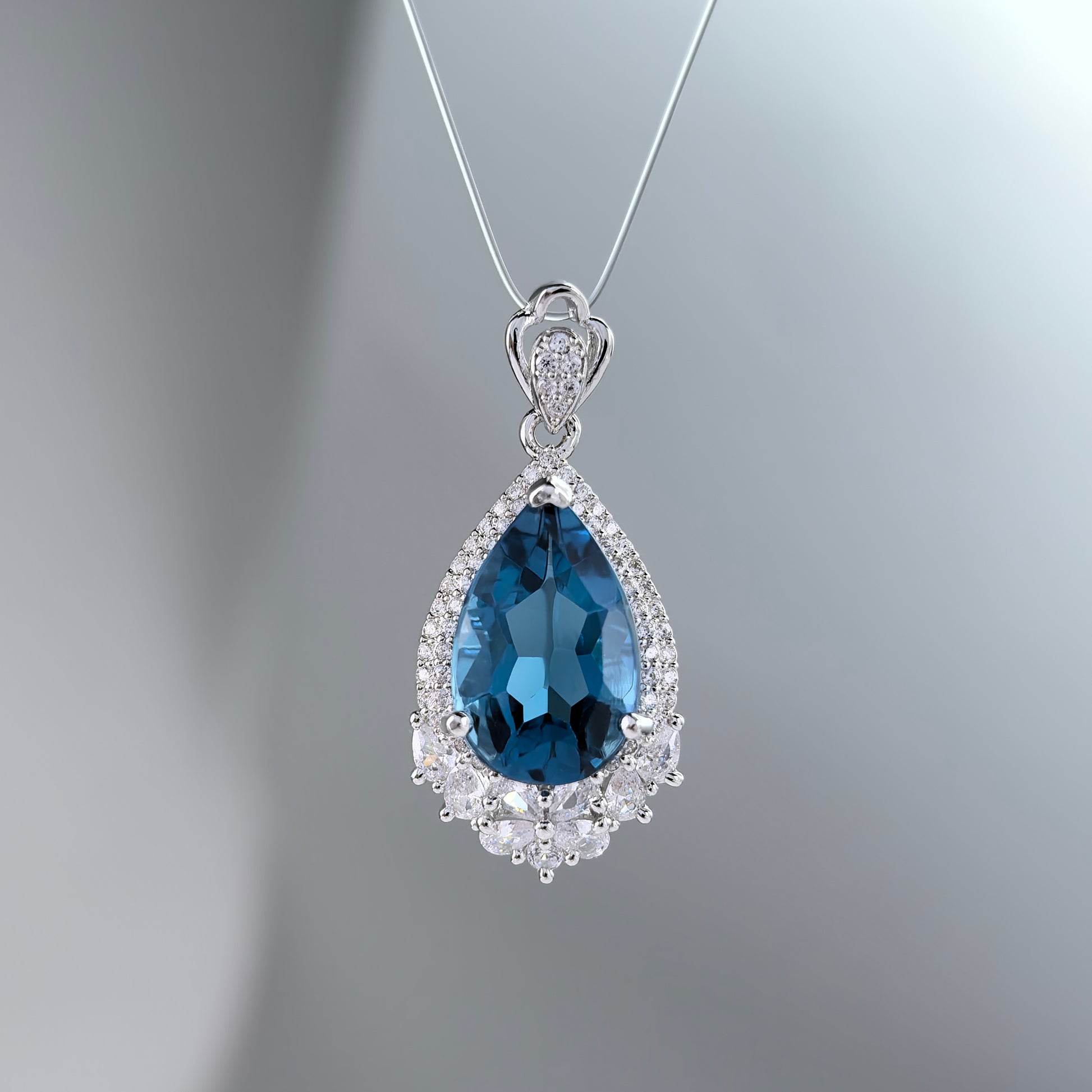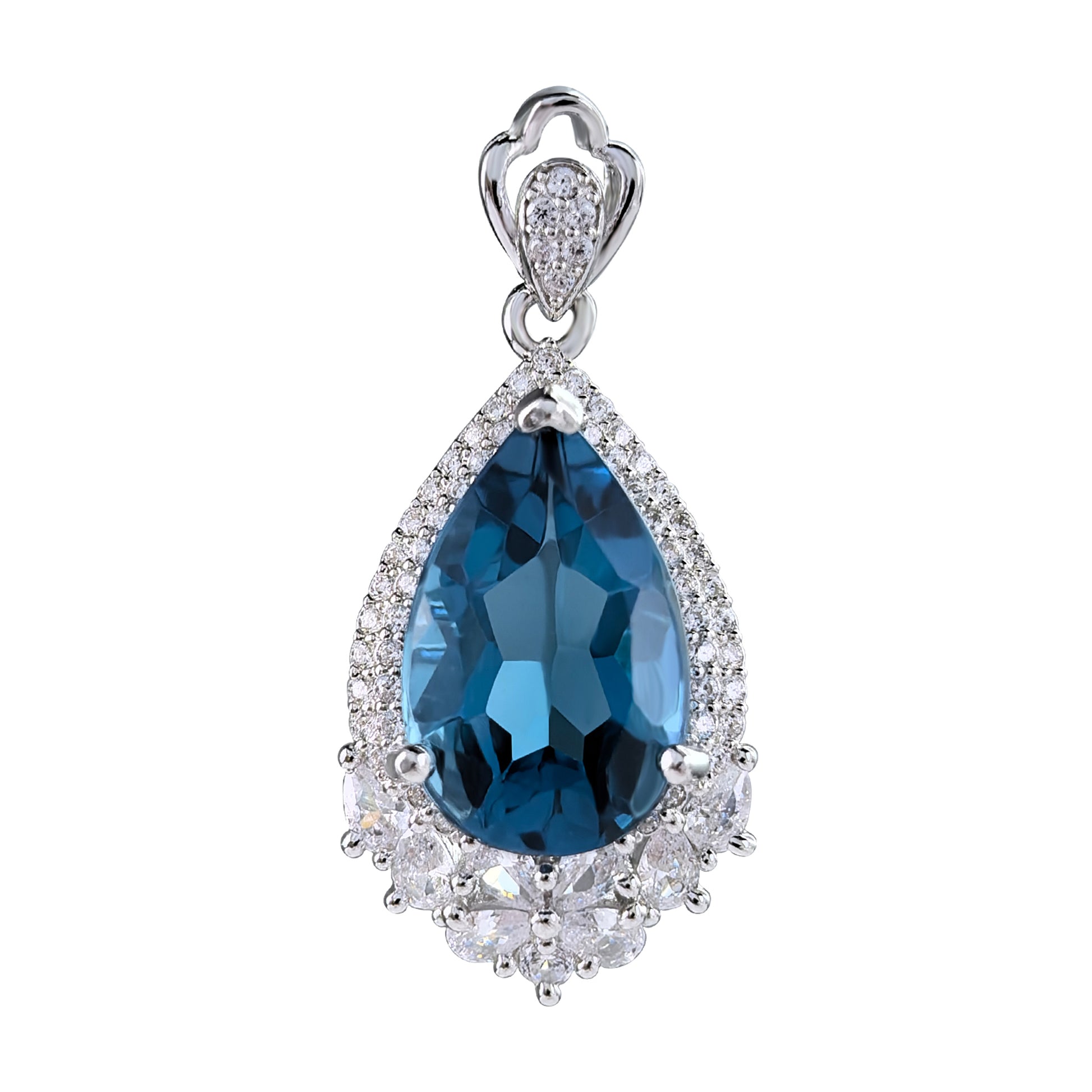 Graceful Rhodium Plated Silver 925 Jewelry Natural London Blue Topaz Pendant