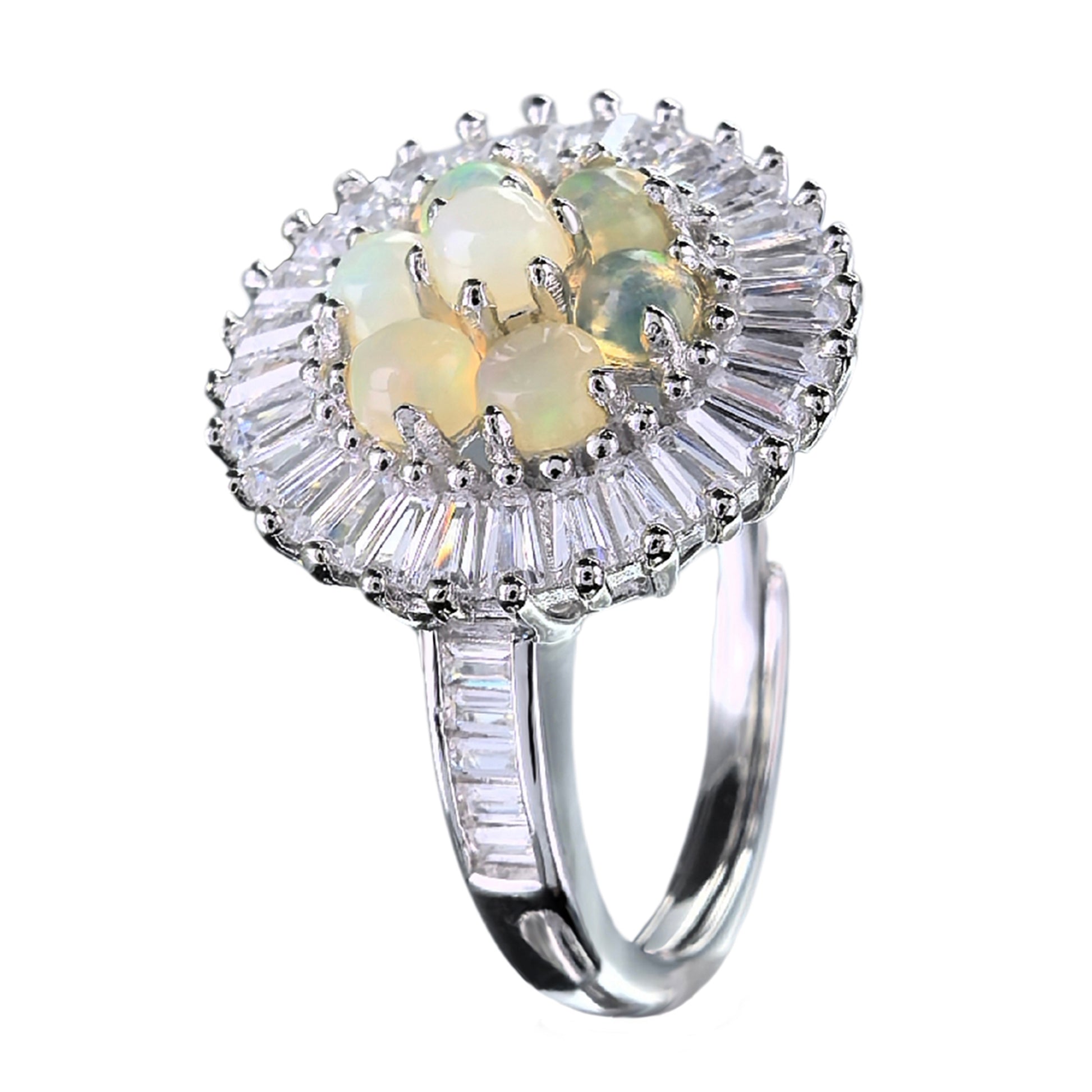 Graceful Rhodium Plated Silver 925 Jewelry Natural Opal Ring