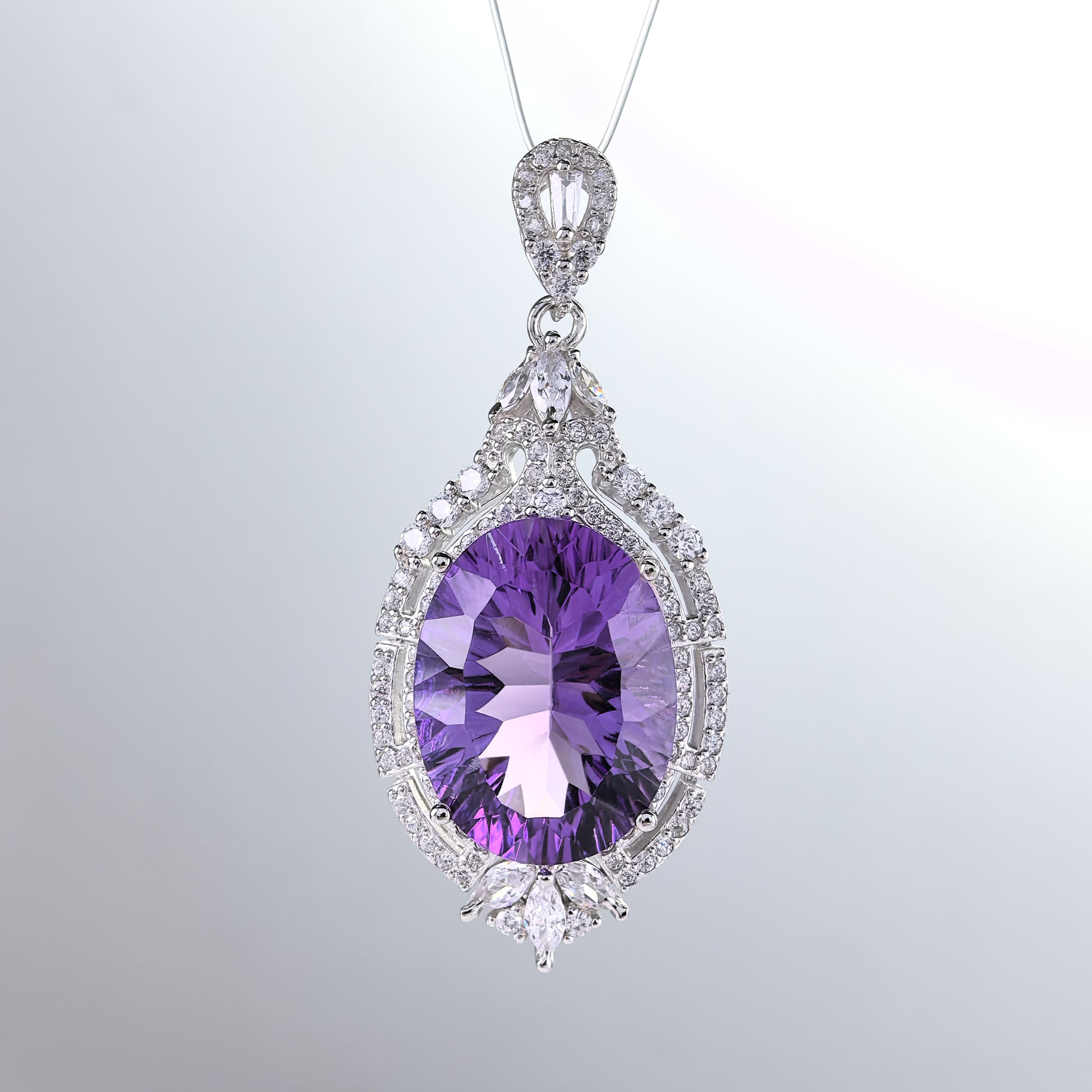 Graceful Rhodium Plated Sterling Silver 925 Natural Amethyst Pendant