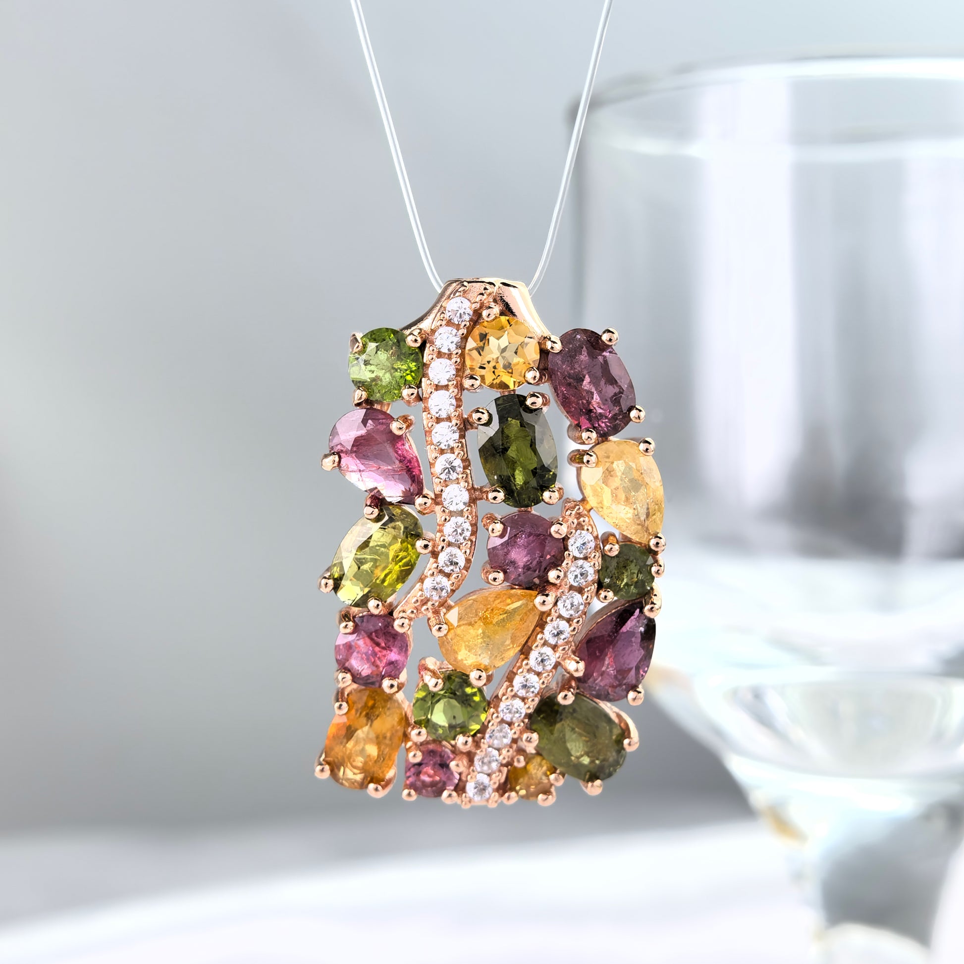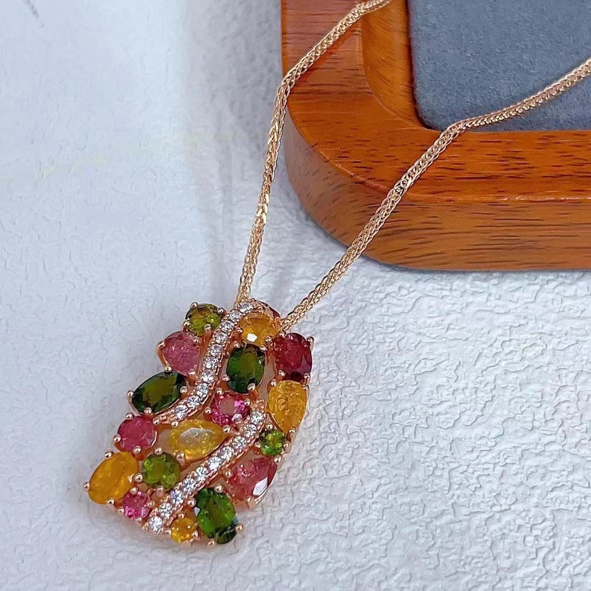 Graceful Rose Gold Plated 925 Sterling Silver Natural Tourmaline Pendant