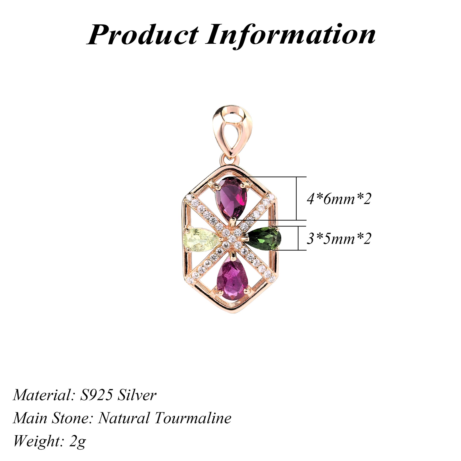 Graceful Rose Gold Plated 925 Sterling Silver Natural Tourmaline Pendant