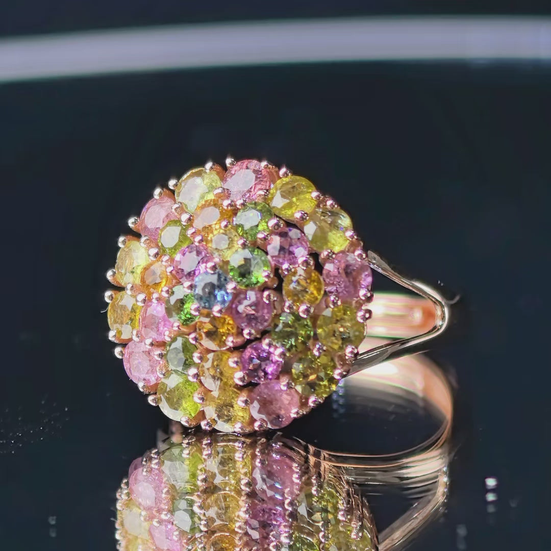 Graceful Rose Gold & Silver 925 Jewelry Natural Tourmaline Gemstone Ring